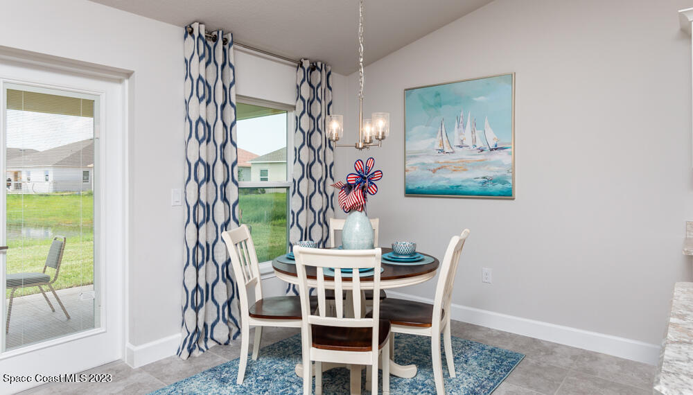 $1,000 deposit and save more than $6,000 in closing costs with approved lender. NO CDD FEE. Nestled in the new gated community of The Courtyards at Waterstone. Just off the new I-95 exit at Heritage Parkway, this community offers pool, cabana, playground and double sidewalks. Lovely tile throughout except for bedrooms which has carpet. Fourth Bedroom could be office or den. Owners Suite has ceiling fan and two large walk-in closets. The bath has double with separate shower and soaking tub. Lovely 36''cabinets w/ silver pulls & stainless-steel appliances, breakfast nook and pantry in the kitchen. Off the kitchen is a separate dining room. Recessed lighting, chandeliers, 5 1/4 '' baseboards, stone accent, sprinklers, and paver driveways are standard. Builders Warranty included.