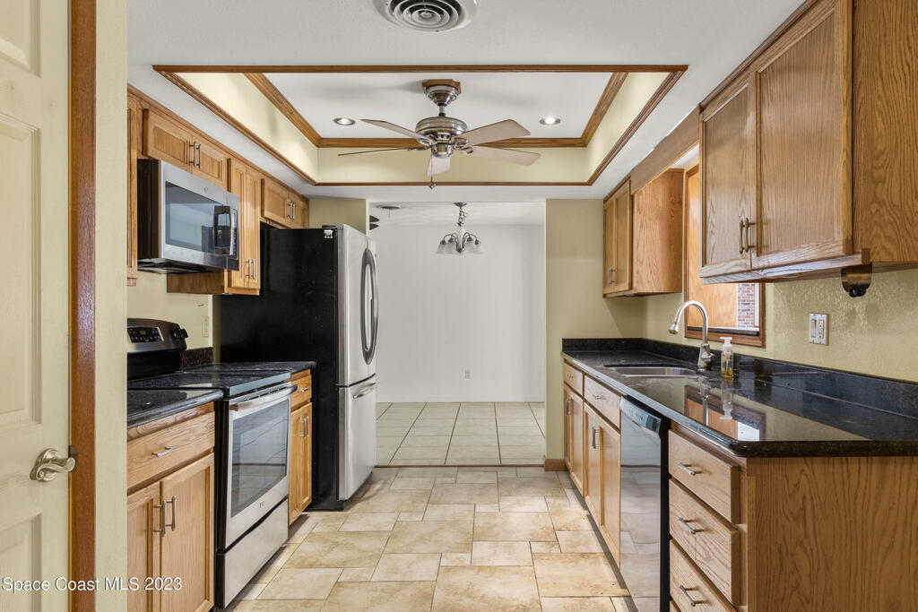 Welcome home! One of the best established communities in Melbourne. 3 bedroom, 2 bath home ready for a family. Let's start on the inside... Over 1900 sq feet, all tile floors so NO CARPET, updated kitchen with granite counter tops and all newer appliances. Big Indoor laundry with washer and dryer included. Both bathrooms are updated. Family room and dining room and an absolutely huge Florida room with tons of windows and a floor to ceiling brick fireplace to chill by. Now for the outside... one of the best neighborhoods in the area. Home is located at the end of the road so no through traffic. Home has a front porch to relax and enjoy the day. 3 sides of the yard have a fence so all you need are 2 small sides and you'll have a fully fenced yard & sidewalks too! Come check it out today.