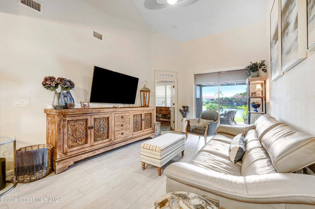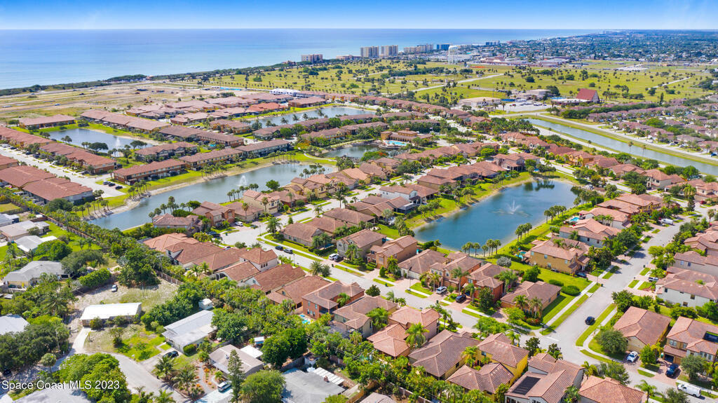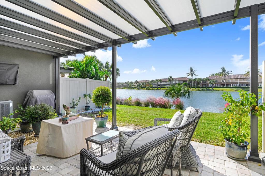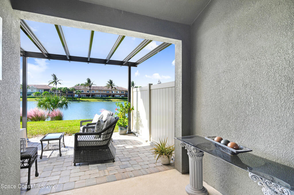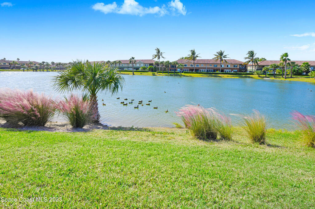 ****FANTASTIC OPPORTUNITY TO OWN LAKEFRONT IN THE HIGHLY SOUGHT AFTER MONTECITO COMMUNITY! ENJOY LOTS of UPGRADES-beautiful patio pavers, covered lanai, upgraded faucets & light fixtures, beautiful impact glass front door, built-in bar, plantation shutters & roll down shade, Samsung refrigerator/stove, lifetime guarantee window tint & gorgeous plank tile floors & more!JUST 2 BLOCKS FROM THE BEACH! Wait until you see the GORGEOUS INTERIOR of this spacious waterfront townhome which has 2172 liv sq ft w/3 bedrooms & 2.5 baths. This home features an open floorplan w/ground floor primary bedroom/bath, kitchen, LR & half bath, garage & laundry. Second floor has open den/office area along w/2 guest bedrooms & full bath plus lots of storage too! Furniture negotiable.