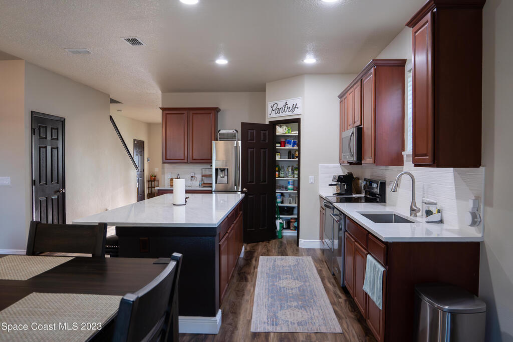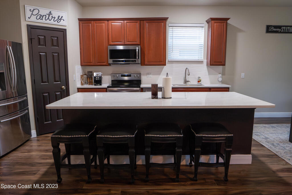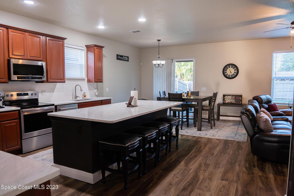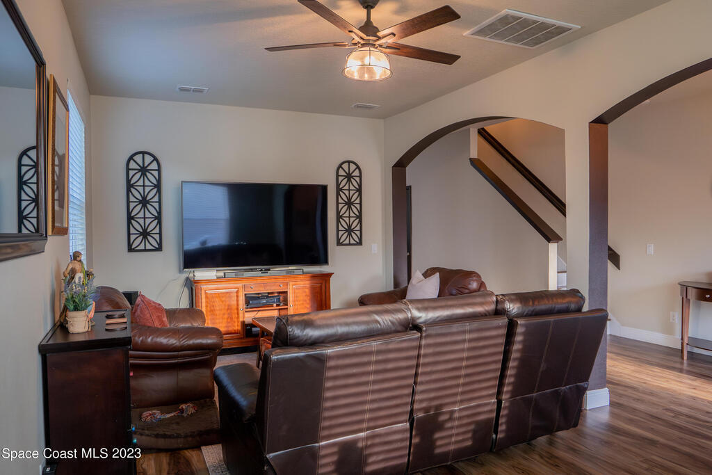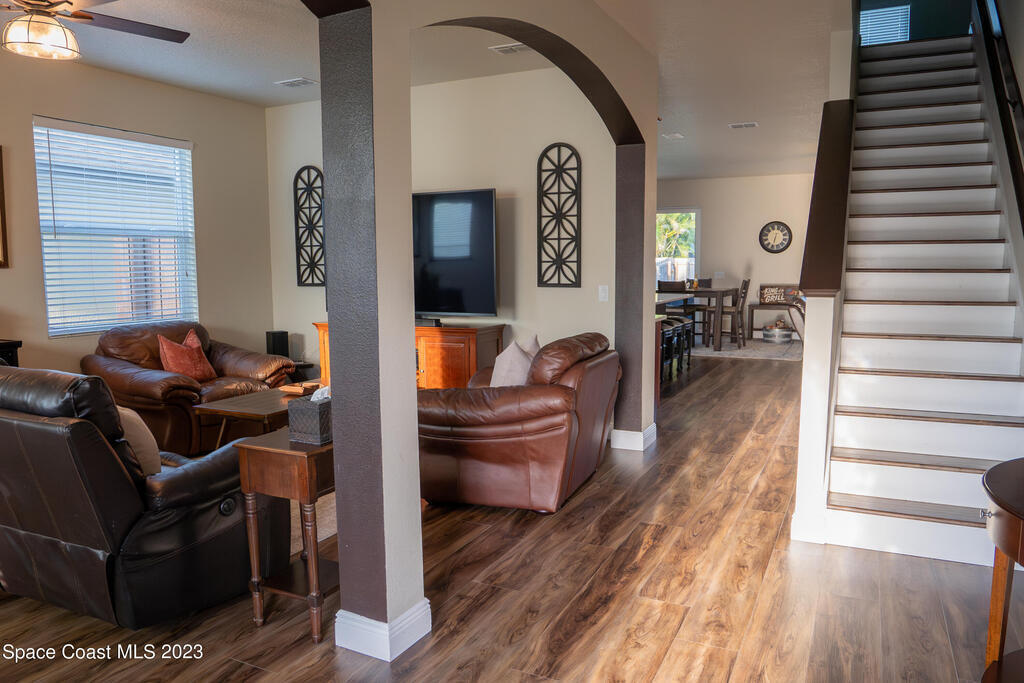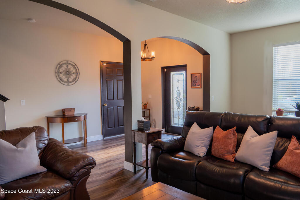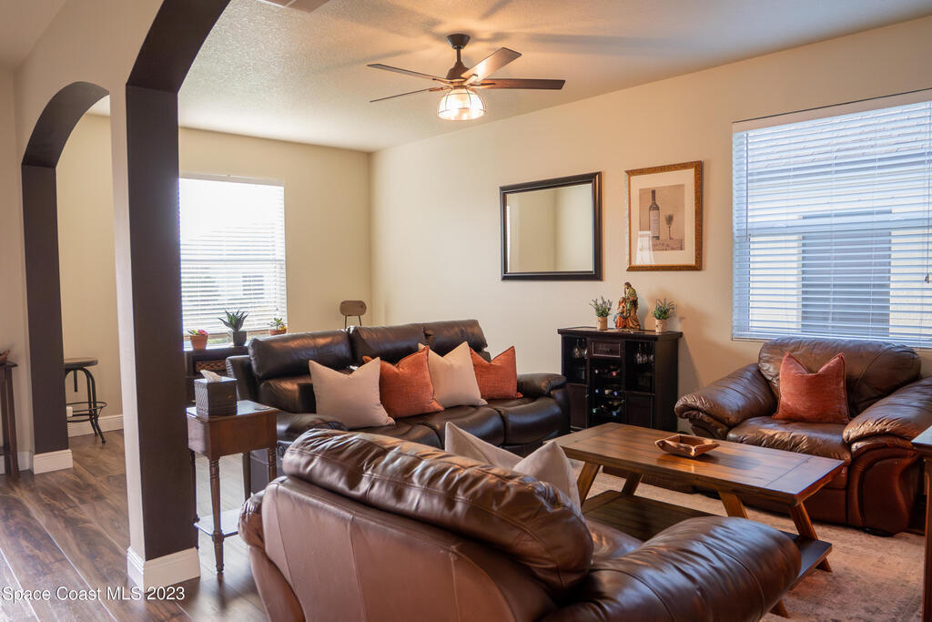 Beautifully remodeled 6 bedroom (plus bonus room!) 3,492 sq ft home in the coveted Fern Meadows community. Brand new triple-pane hurricane impact and energy efficient windows and slider. Brand new beautiful LVP flooring throughout, including the entire second floor! Gorgeous new quartz countertops in the kitchen and bathrooms. Huge kitchen island! Newly painted inside and out, including the ceilings! Front-loading washer and dryer included! Screened-in back porch and fully-fenced backyard. Community has tennis court, basketball court, playground, nature preserve, walking/jogging paths. Excellent centralized location. Close to Viera, the beach, Kennedy Space Center, close to Orlando attractions.