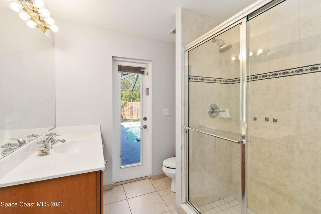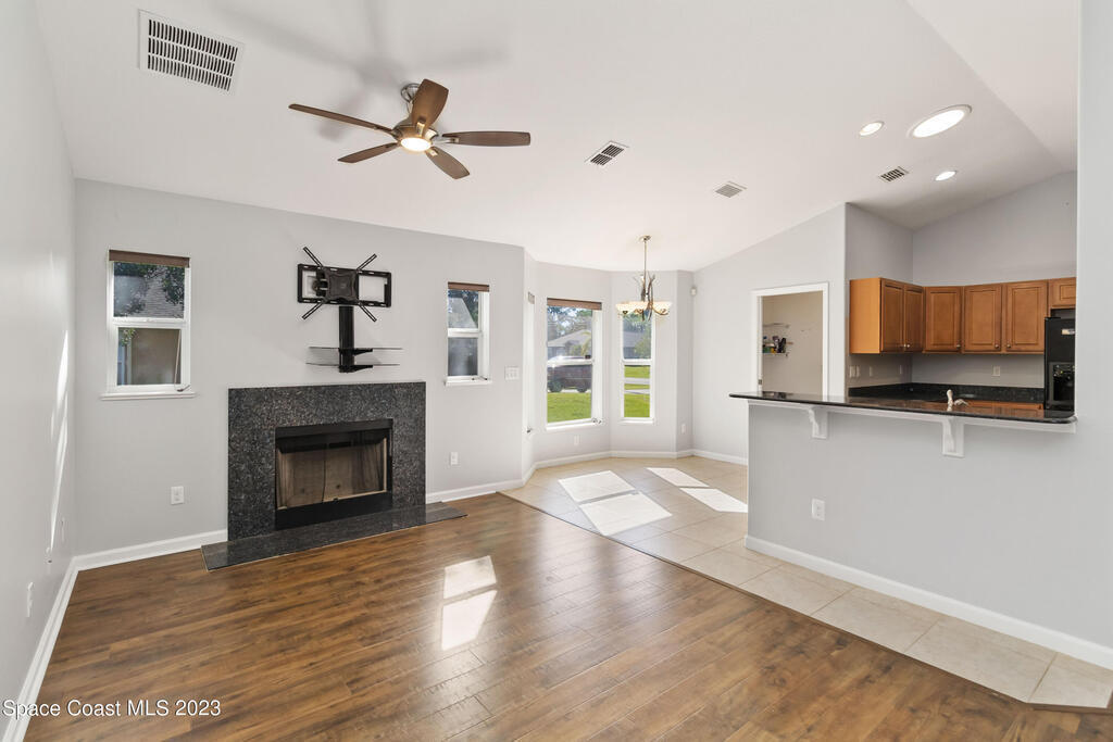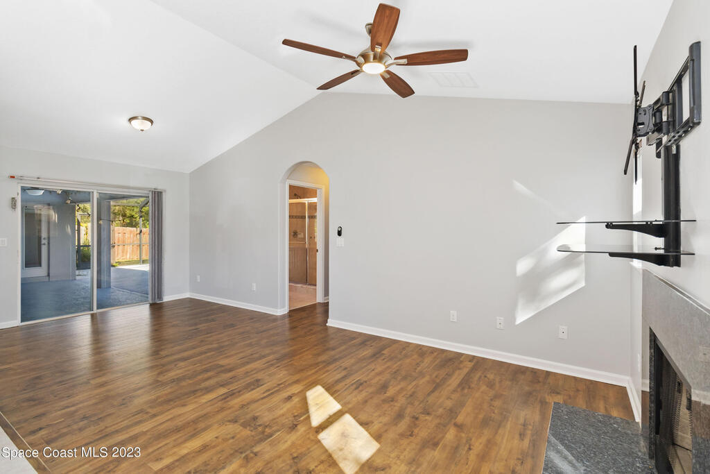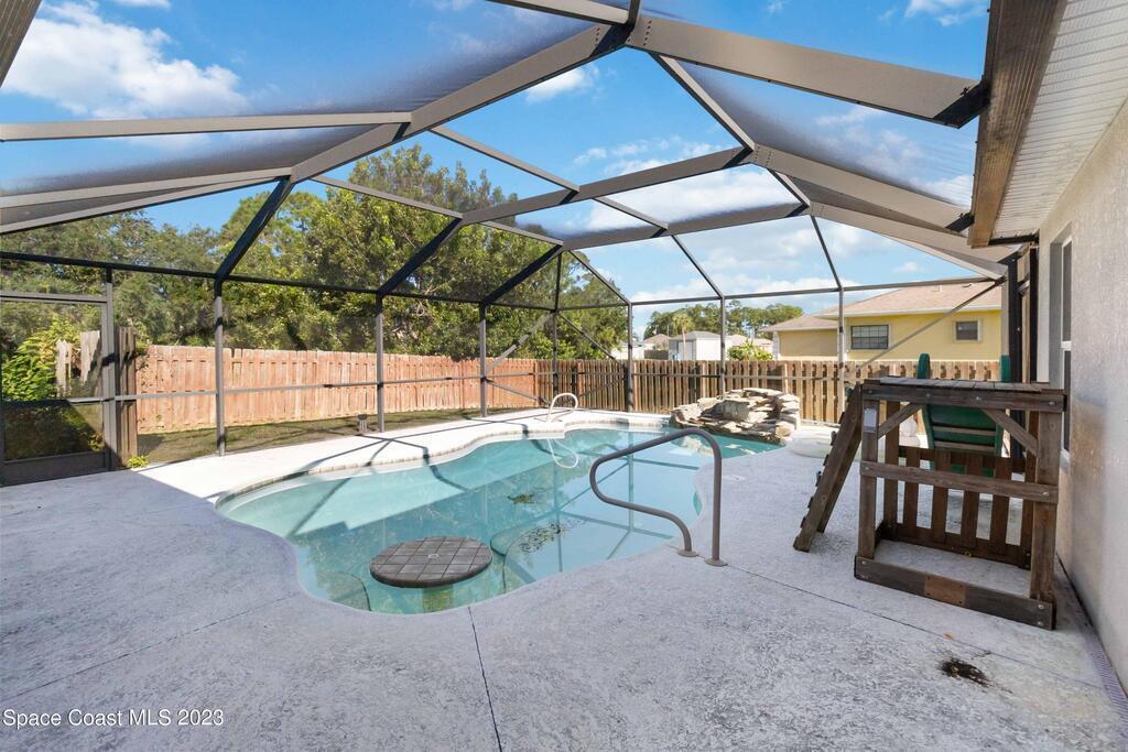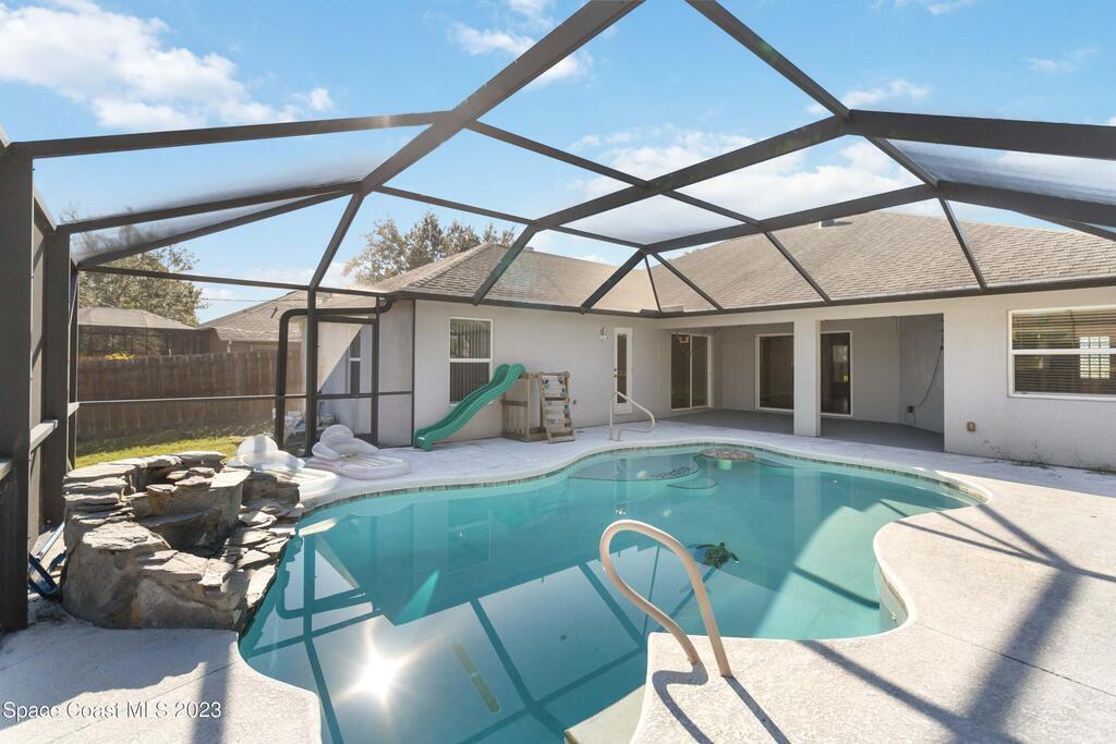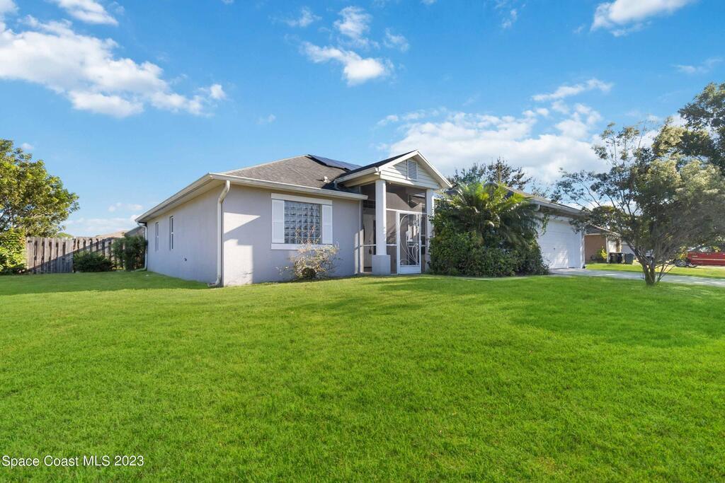 Welcome Home! Situated on a corner lot, this move-in ready POOL home w/SOLAR panels (2018) offers a bright, split bedroom floorplan w/vaulted ceilings & NEW interior paint. The kitchen presents a functional layout w/granite countertops, wood cabinets, breakfast bar & dinette. Spacious family room w/wood burning fireplace is off the kitchen, perfect for entertaining. Owner's suite boasts tray ceiling, walk-in closet, door to the pool & private bath w/spa tub, tiled shower & double vanity. Wood plank (2019) & tile floors throughout. Bedrooms 2 & 3 have walk-in closets. Fenced yard offers privacy to relax & enjoy the large POOL that is complete w/waterfall & sitting area. Smart switches in kitchen, living room & garage. AC (2022). Close to I-95, shopping & dining, 30 min to beaches!