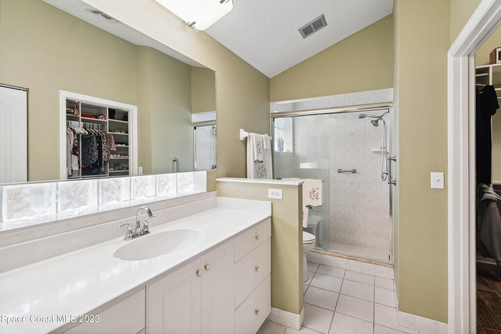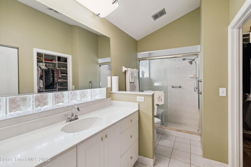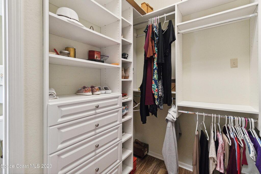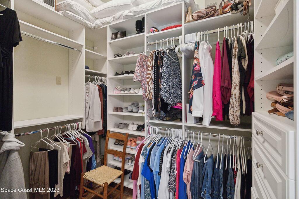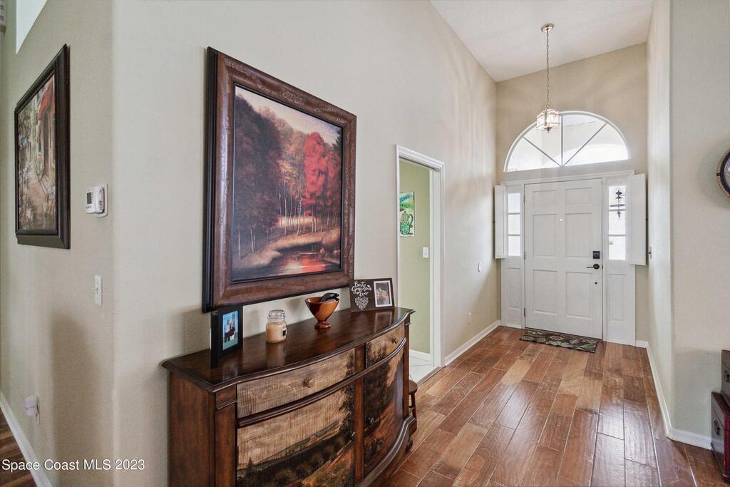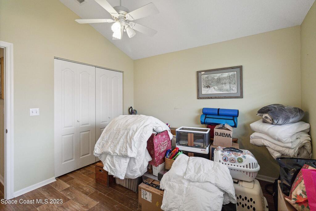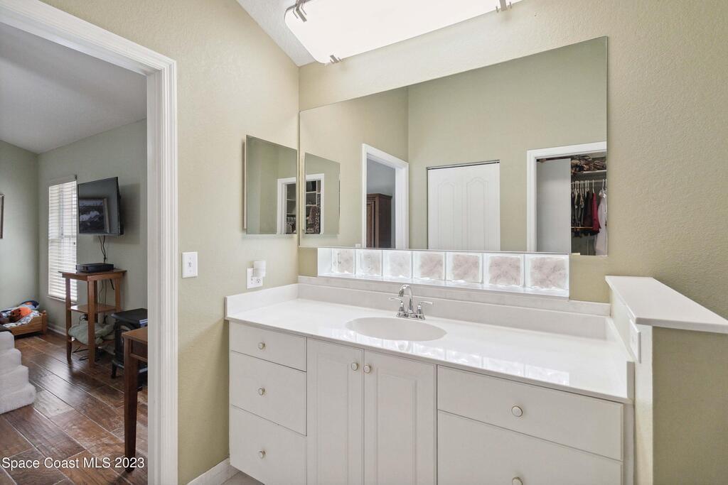 Welcome to Titusville. Tucked away in the back of Titusvillage. This Bob Donaldson home has 3 bedroom two bath, vaulted ceilings, ceramic and wood look flooring in addition to a Ceramic tile roof. The chef friendly kitchen has plenty of open space as well as counter space, cabinets and modern appliances. The owner suites has a custom walk in closet with floor to ceiling shelving, racks and storage. The back yard is fenced in for privacy and pets. It's great for entertaining too. It has enough room for you to add a pool. ADT security system is monitored and able to be transferred to new owner. Most furniture is available for purchase. HOA is paid quarterly and includes lawn service.