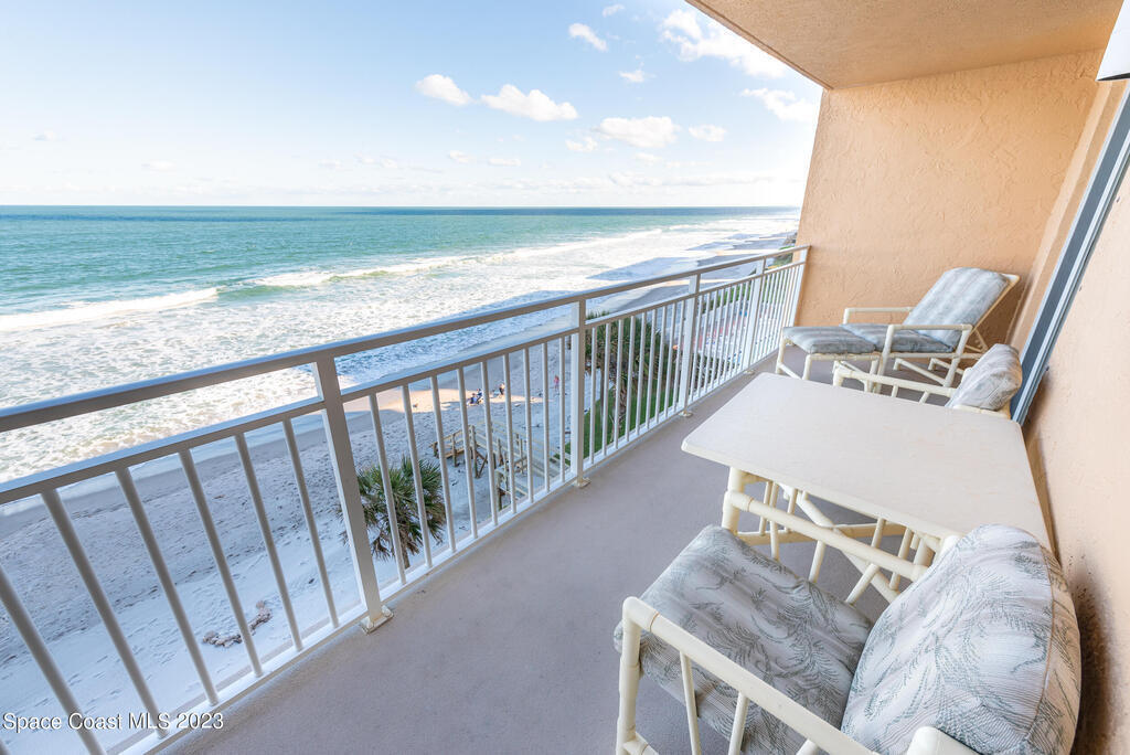 Discover an exceptional ocean front investment opportunity with this 2-bed, 2-bath oceanfront condo on the fifth floor in Indian Harbour Beach, Florida.. Wake up to breathtaking ocean views, enjoy coastal breezes from your private balcony, and capitalize on the lucrative potential of this sought-after location. Heated pool, shuffle board, grilling area, spacious bedrooms, and direct access to the beach, this condo is the perfect addition to your investment portfolio. Don't miss your chance to own a piece of oceanfront paradise that's primed for financial growth! Concrete restoration will be completed 7/8-12/20/24. Sliding glass doors will be replaced with high wind impact sgd. Assessments have been paid.