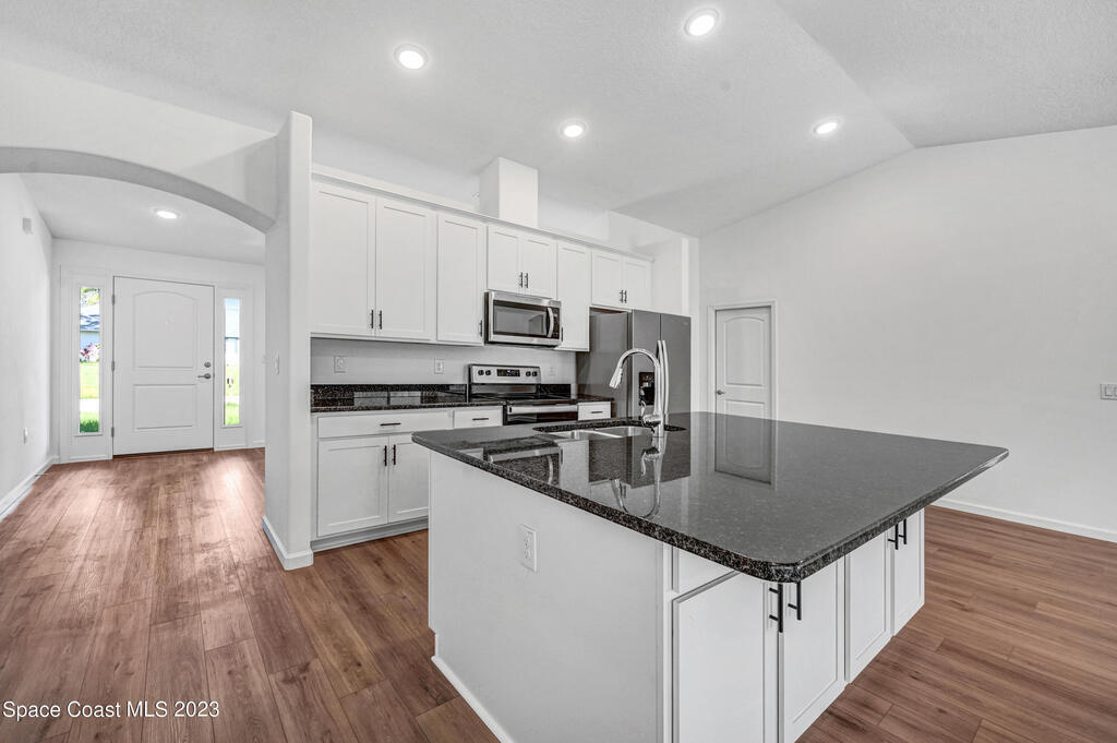 Brand New Beauty, READY NOW 4bed2 bath + 20 x12 trussed screened porch with City Water & Sewer! Shaw Level 2 luxury vinyl plank floors greet you & flow throughout the family room, dining, kitchen & wet areas with carpet in bedrooms. The white eat-in kitchen offers granite countertops, upper cabinets w/crown molding, Whirlpool stainless appliance package with 25 cu ft side by side refrigerator + a walk-in pantry, & connect to the family room by the island. A tray ceiling adds drama in the primary suite with huge walk-in closet & optional bath with double sink/vanity & 5' shower & glass enclosure rain head + dual controls. Also: inside laundry room, WiFi garage door opener, 1yr builder/10-yr warranty. For a limited time: 10K closing cost or low fixed rate with preferred lender if qualified