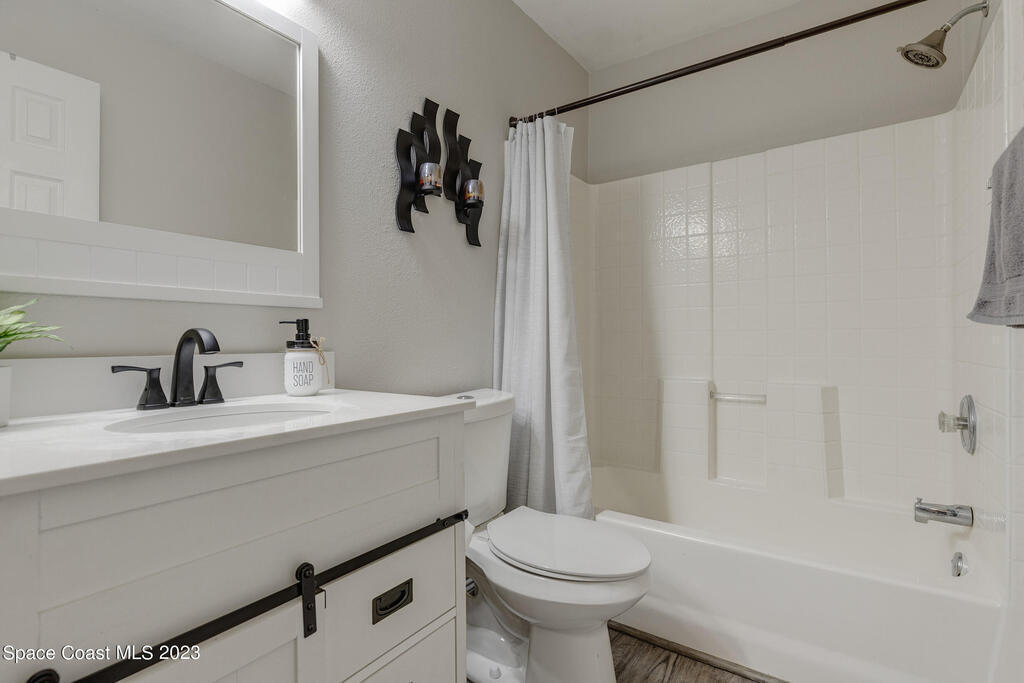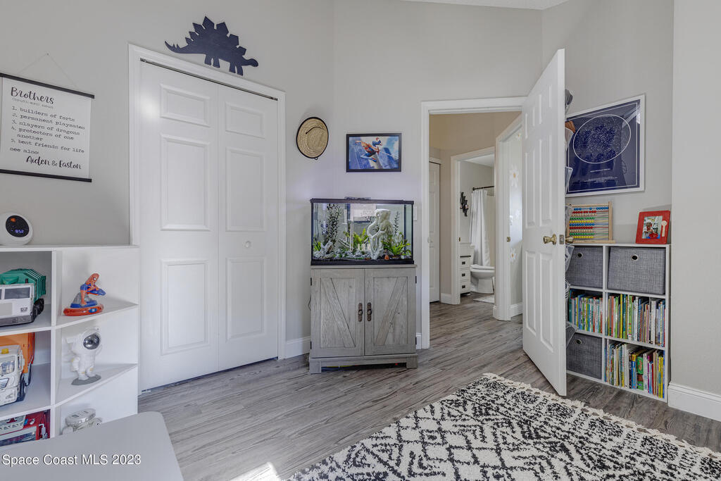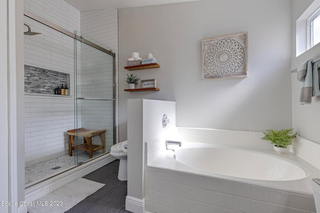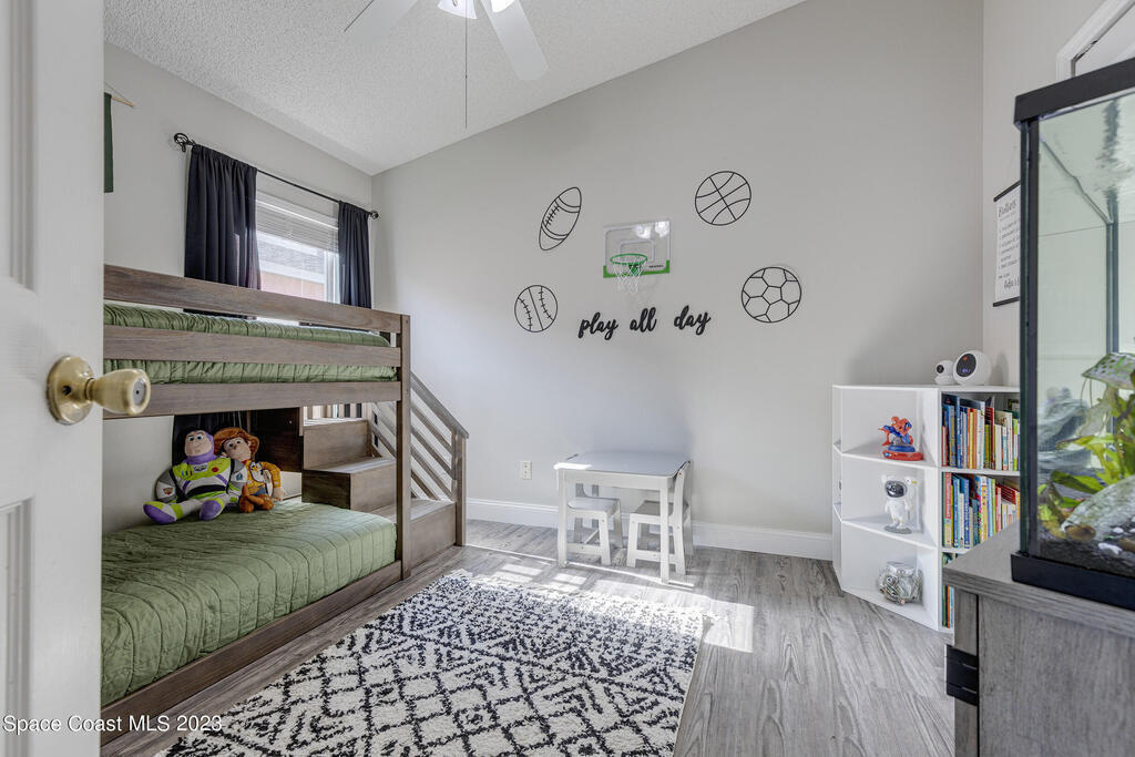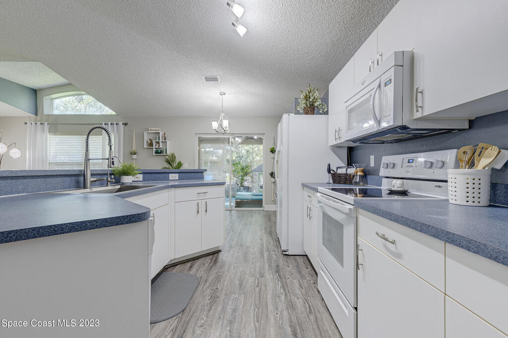Nestled in the Viera East community, Bayhill, this well-kept 3-bedroom, 2-bathroom residence offers a blend of modern comfort and natural serenity. Featuring a split bedroom plan, an open, entertaining-friendly layout, and an lush outdoor space, this home is designed for relaxation and good times. When entering, you'll be greeted by a spacious, light-filled living area with easy-to-maintain luxury vinyl flooring that creates a warm and inviting atmosphere. The open layout provides an ideal setting for gatherings and quality time with family and friends. The master suite features a beautifully updated bathroom with tile floors, a double vanity, a comfortable soaking tub, and a separate shower. The true magic of this home is found outside. Step onto the screened-in porch through the