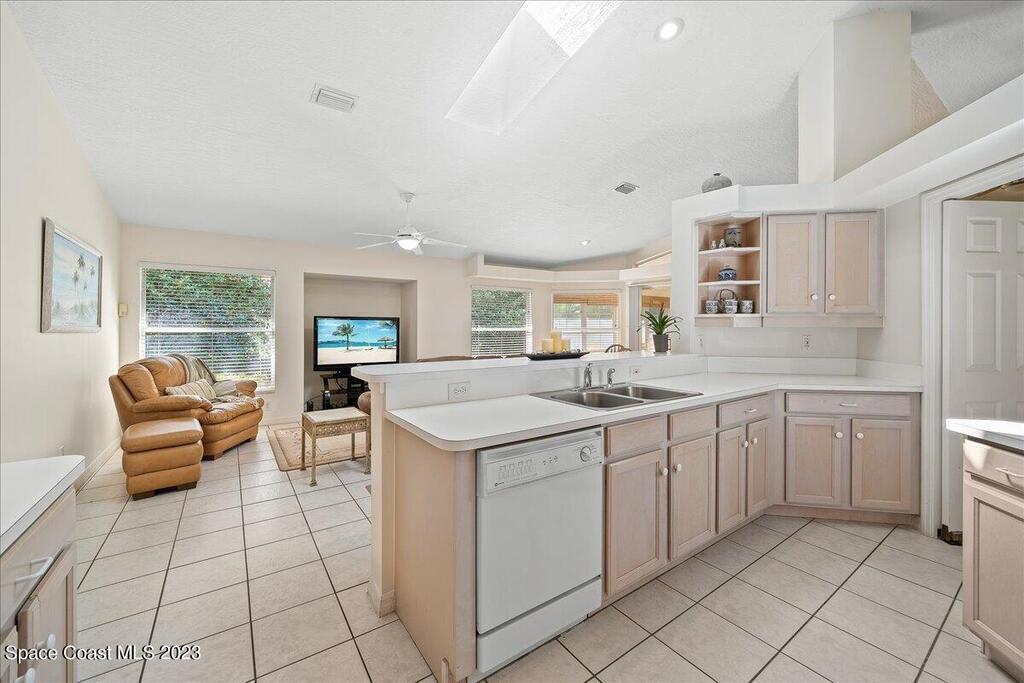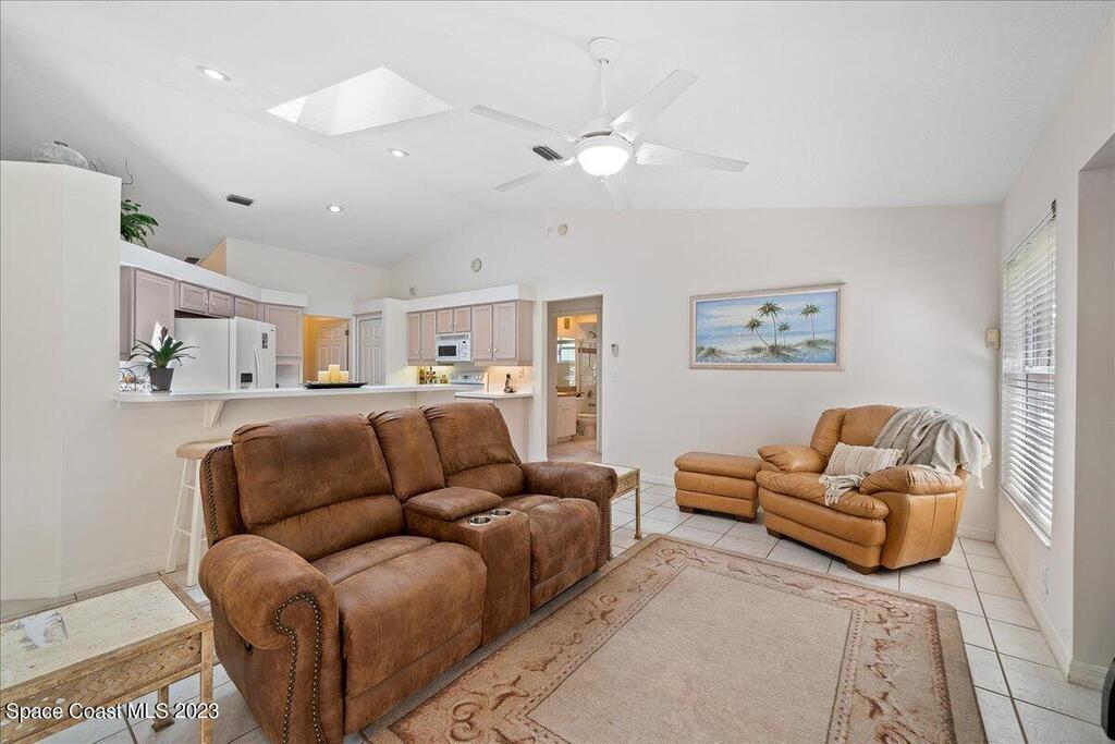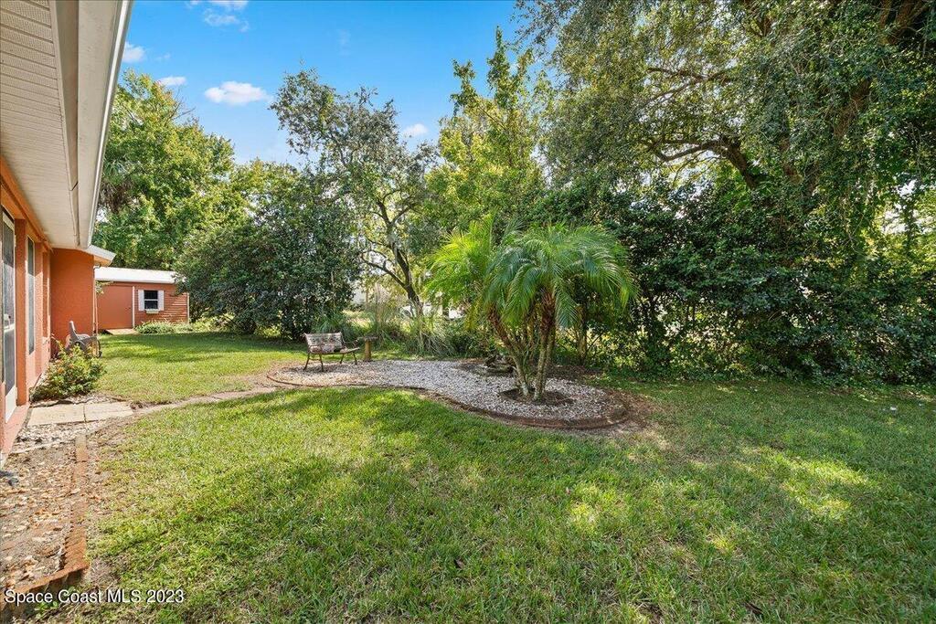 This charming 3 bedroom,2 bath split floor plan home is an excellent opportunity for those looking for a place to call home. Its vaulted ceilings and skylight give the home a bright and airy feel. With 2 living spaces, you'll have plenty of room to make memories with loved ones. The formal dining room is perfect for hosting dinner parties,while the breakfast bar is a great spot to enjoy your morning cup of joe. The spacious Florida room is a real highlight of this property & opens up to a tranquil backyard surrounded by lush trees, providing a peaceful retreat after a long day. The well-maintained backyard offers ample space for a garden & has a shed to store additional items. It's just a short ride from Orlando, Kennedy Space Center, & the beaches. This home has been lovingly cared for