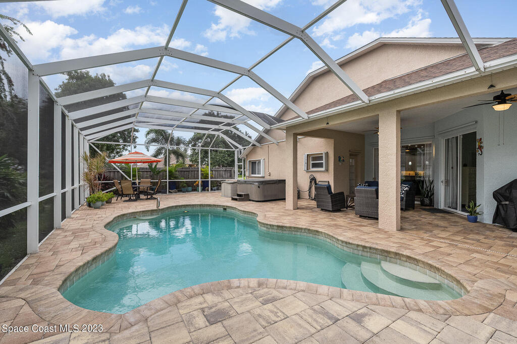4/2, Lakeview, 3 car garage, pool on .35 acre!! Truly model perfect. Impeccable upgrades and improvements. Porcelain wood tile throughout, ceramic tile in both baths. Plantation shutters on all windows except secondary bedrooms and master bath. Totally redesigned kitchen, all new cabinets + additional cabinets, and new quartzite counters, under cabinet lighting, all done in 2021. Accordion shutters, completely redone front landscaping and pavers, exterior painted 10/2022 and Hot Springs hot tub included. Expansive brick paved patio accommodates outdoor living area, surrounded by beautiful tropical landscaping. Roof and gutters apx 8/2023. There is even a secret garden! Close to elementary and middle schools, library, houses of worship, shopping restaurants and more! Don't miss it!