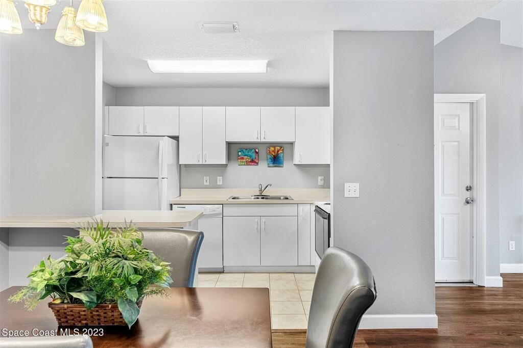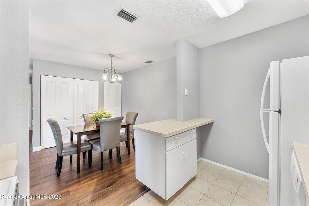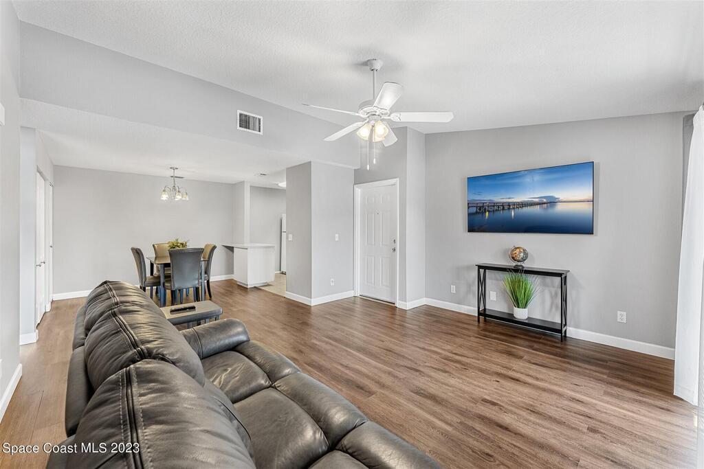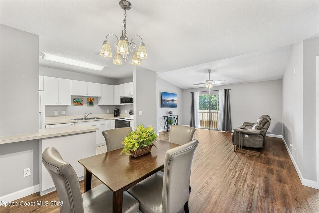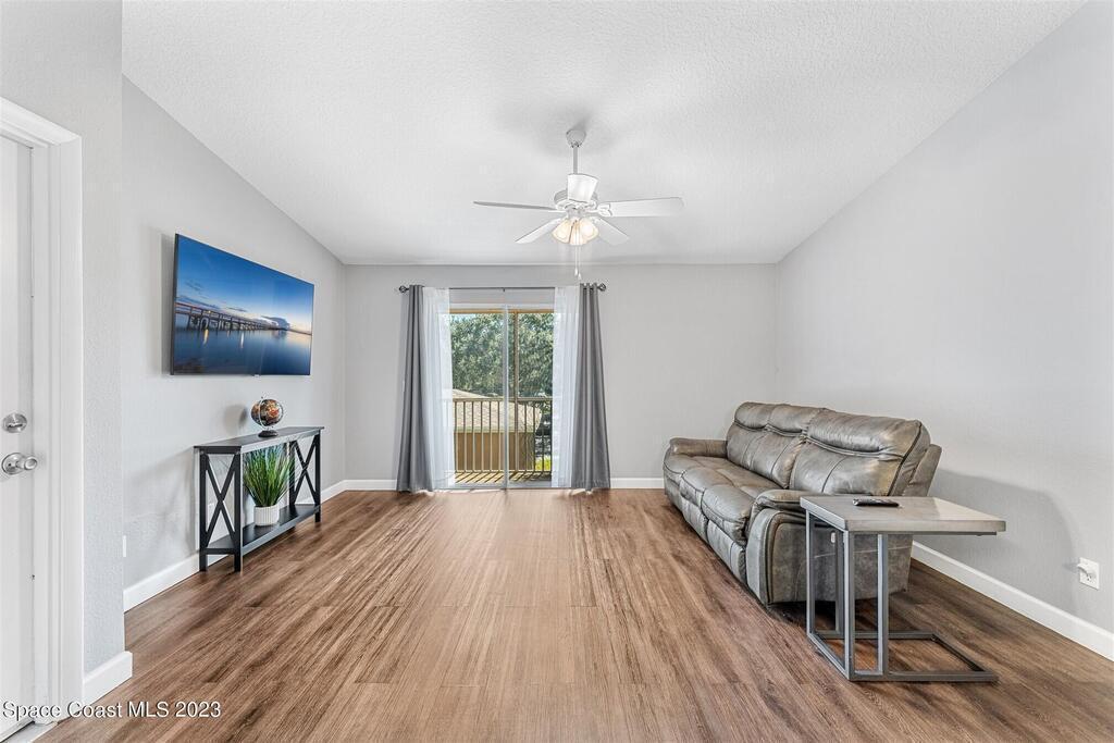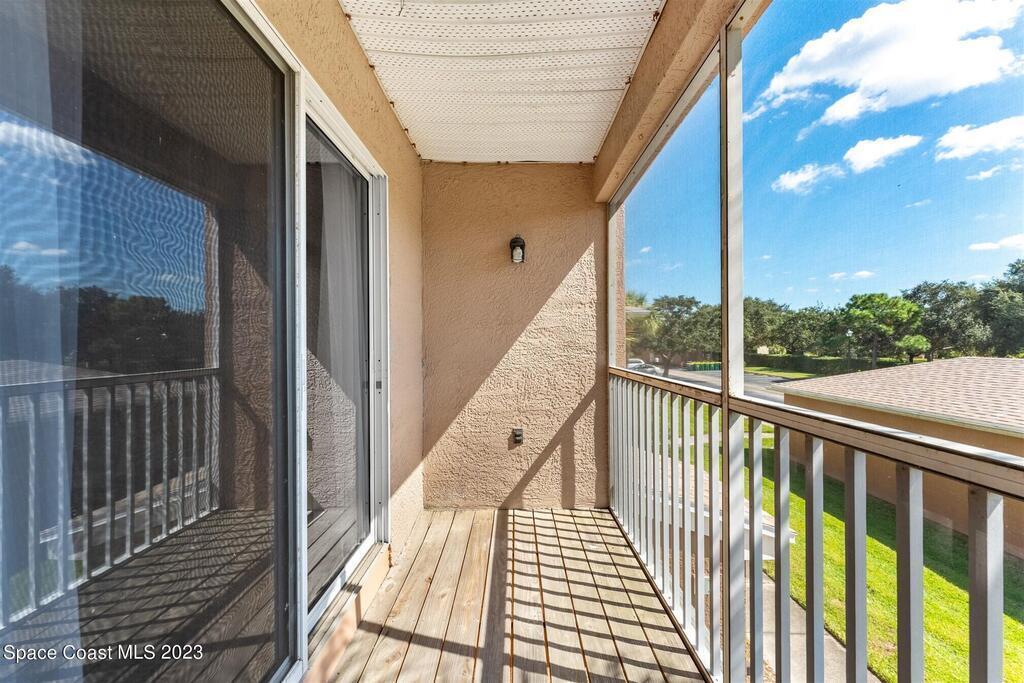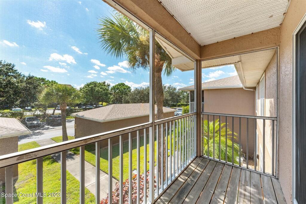 Welcome to this charming 2-bedroom, 2-bath condo in Viera East. Positioned on the second floor, this cozy unit offers an excellent opportunity for those looking to create their ideal living space. With 1,078 square feet to work with, the potential is boundless. The main living areas feature updated laminate flooring, adding a touch of contemporary flair to your home. Meanwhile, carpet in the bedrooms and tile in the kitchen and baths create a comfortable and practical living environment. One of the highlights of this condo is the screened-in balcony, accessible from the family room. This outdoor space is perfect for enjoying Florida's pleasant weather, providing a peaceful retreat for relaxation and entertainment. The primary bedroom features a generously-sized walk-in closet,
