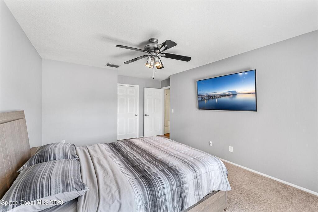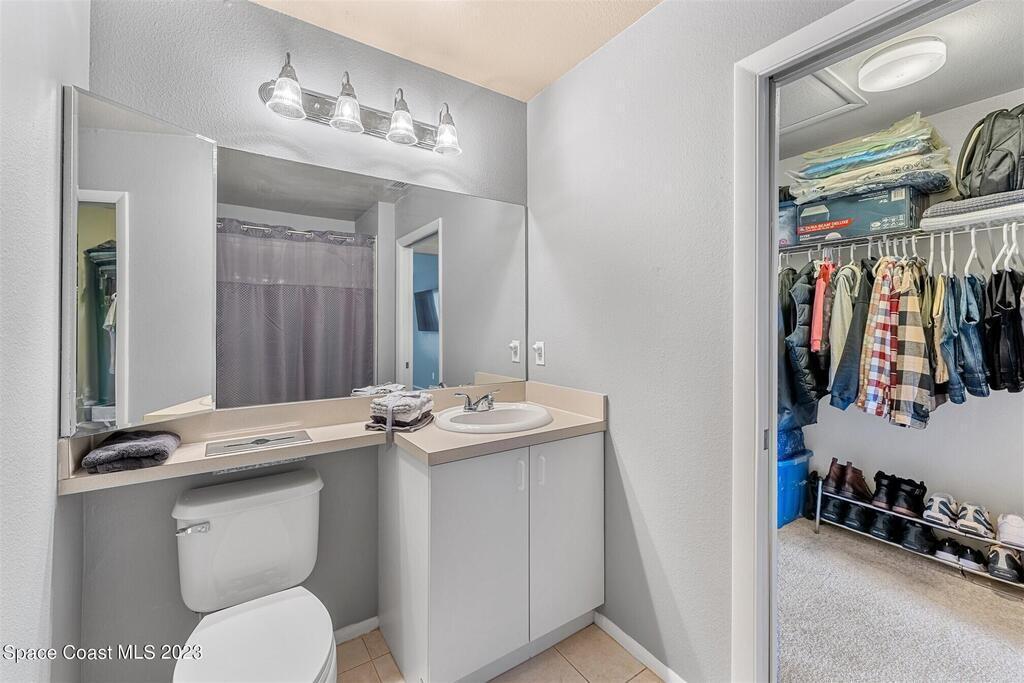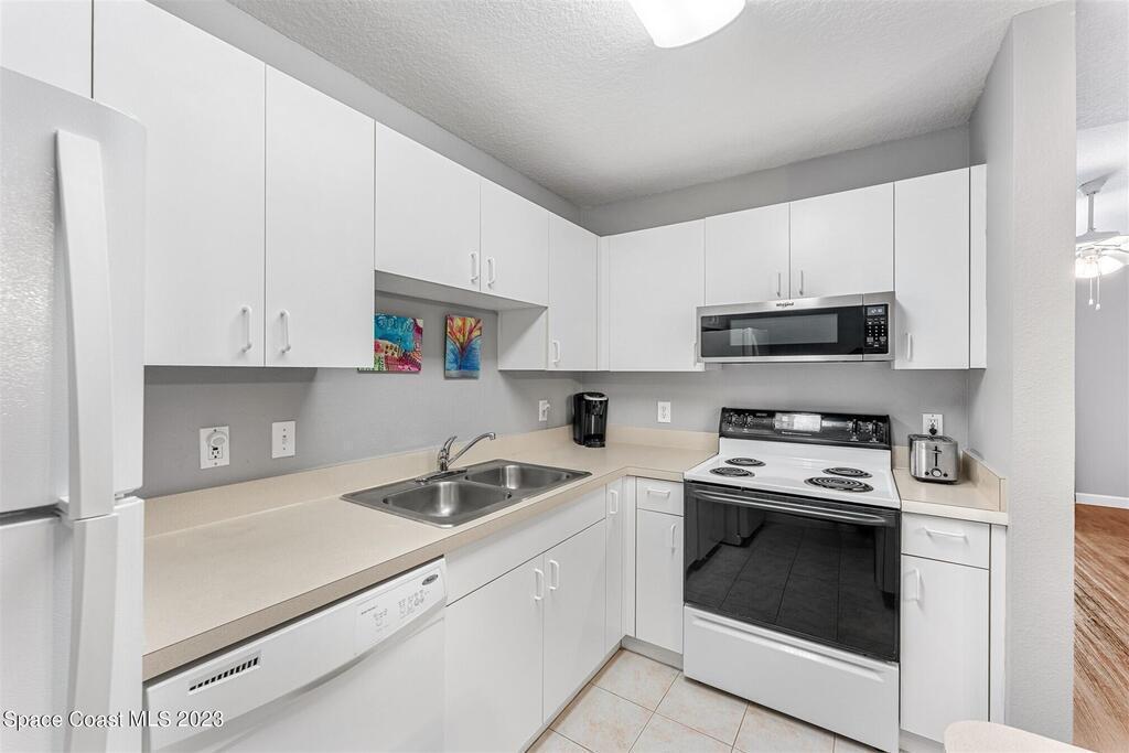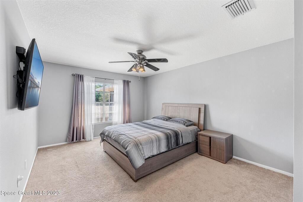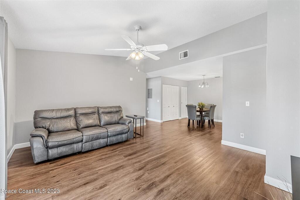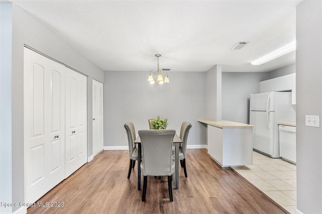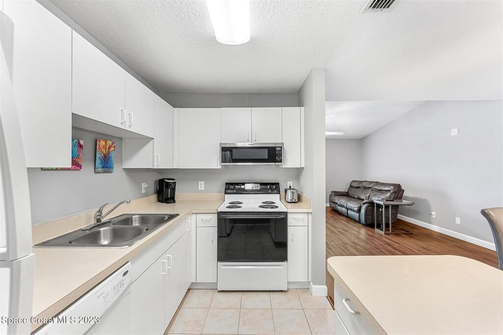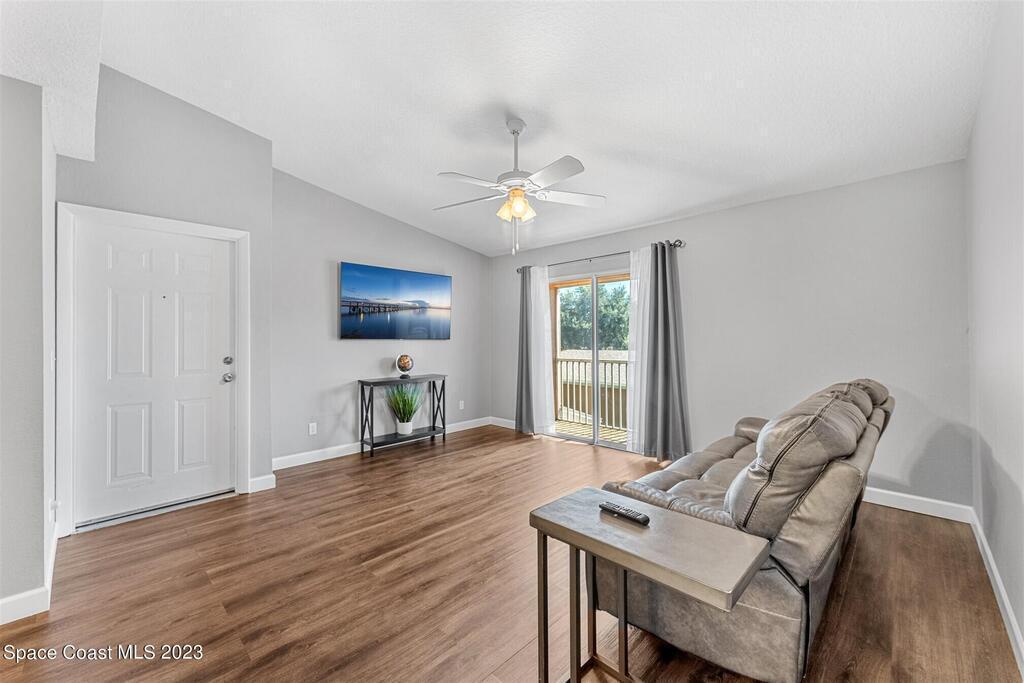 Welcome to this charming 2-bedroom, 2-bath condo in Viera East. Positioned on the second floor, this cozy unit offers an excellent opportunity for those looking to create their ideal living space. With 1,078 square feet to work with, the potential is boundless. The main living areas feature updated laminate flooring, adding a touch of contemporary flair to your home. Meanwhile, carpet in the bedrooms and tile in the kitchen and baths create a comfortable and practical living environment. One of the highlights of this condo is the screened-in balcony, accessible from the family room. This outdoor space is perfect for enjoying Florida's pleasant weather, providing a peaceful retreat for relaxation and entertainment. The primary bedroom features a generously-sized walk-in closet,