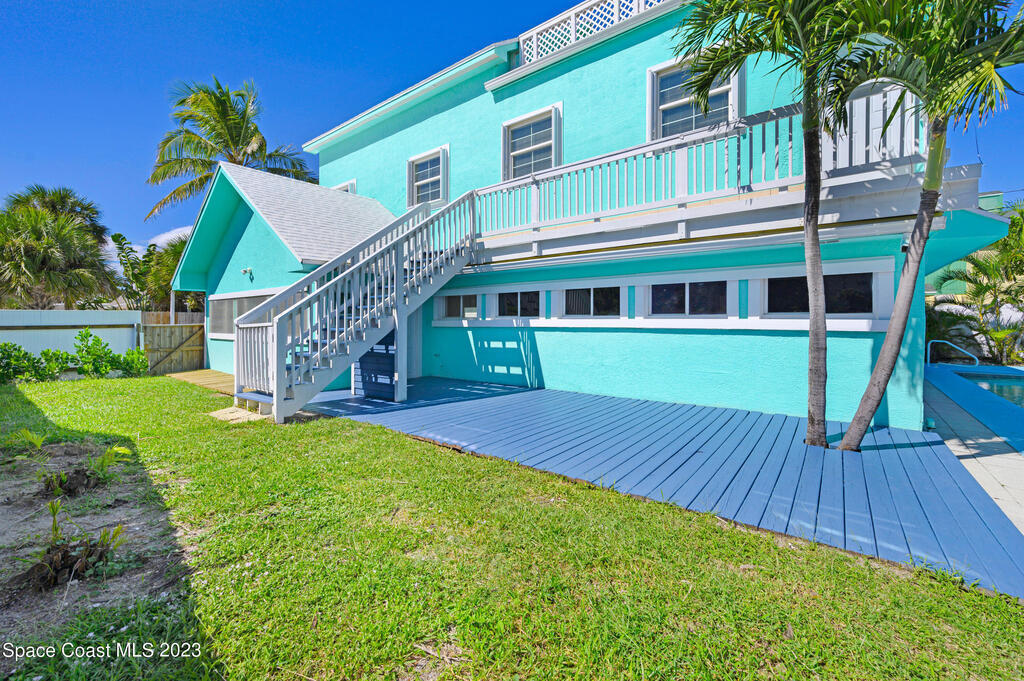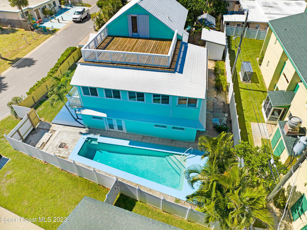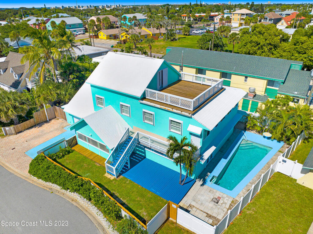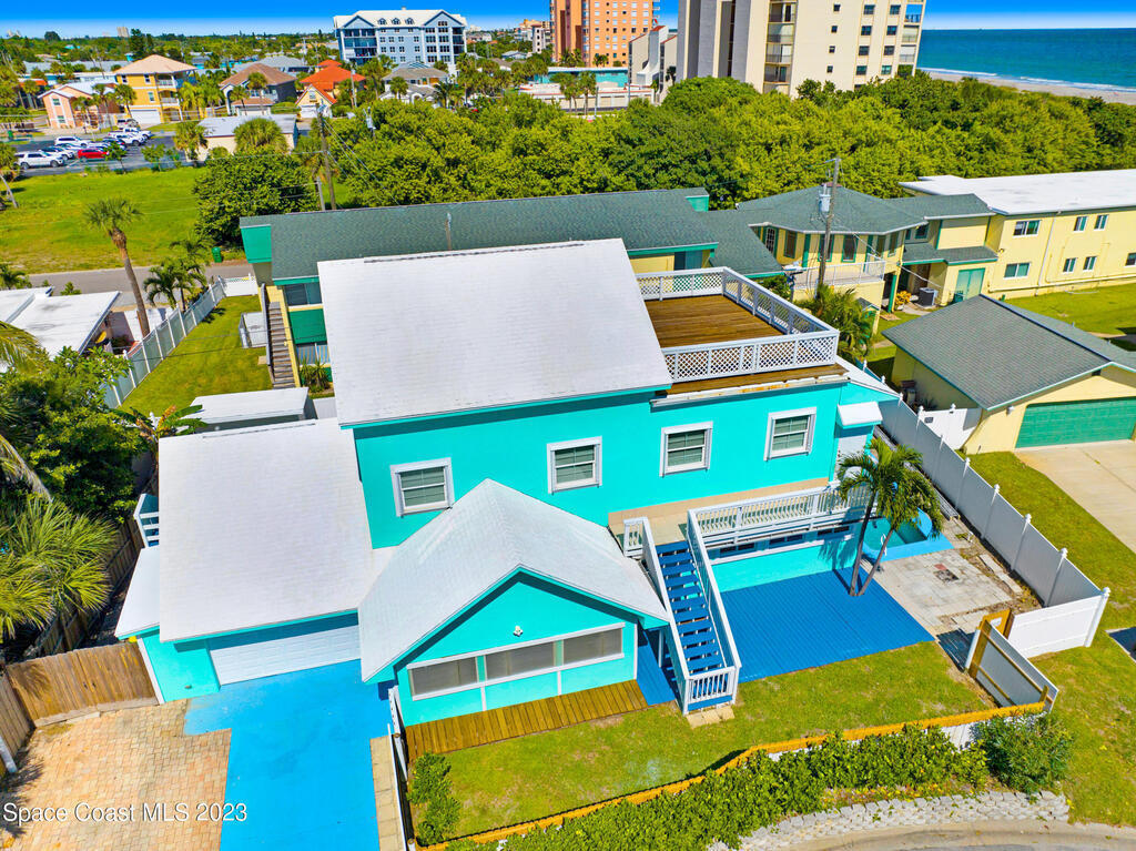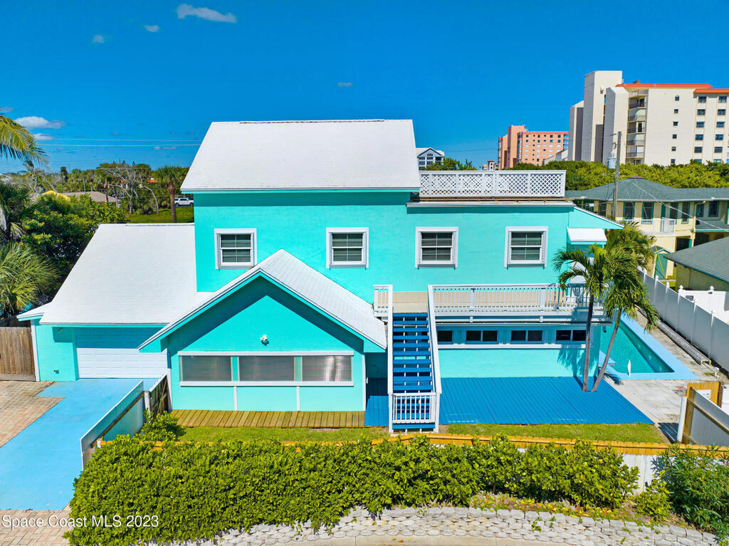 Ooh the opportunities and options with this expansive Ocean view retreat! This 3 story pool home, features 4 bedrooms, 3 baths, 3 bonus room, and 2 kitchens, offering ample space for you to create your beachside paradise.These are nice views, no peek a boo... just a few finishing touches to make this your dream property!Location, is fantastic... close, close, close to the beach with access on the street. Short stroll to Cocoa Beach Pier, Port Canaveral-1 mile, KSC-15 miles and Orlando 1 hour. Close to shopping, dining and entertainment.Previously private residence, however this property presents excellent vacation rental potential 2nd, 3rd floor constructed in 2008/09. The third story deck has a beautiful ocean view, & good views on the 2nd floor. Enjoy Rocket launches and sunrises