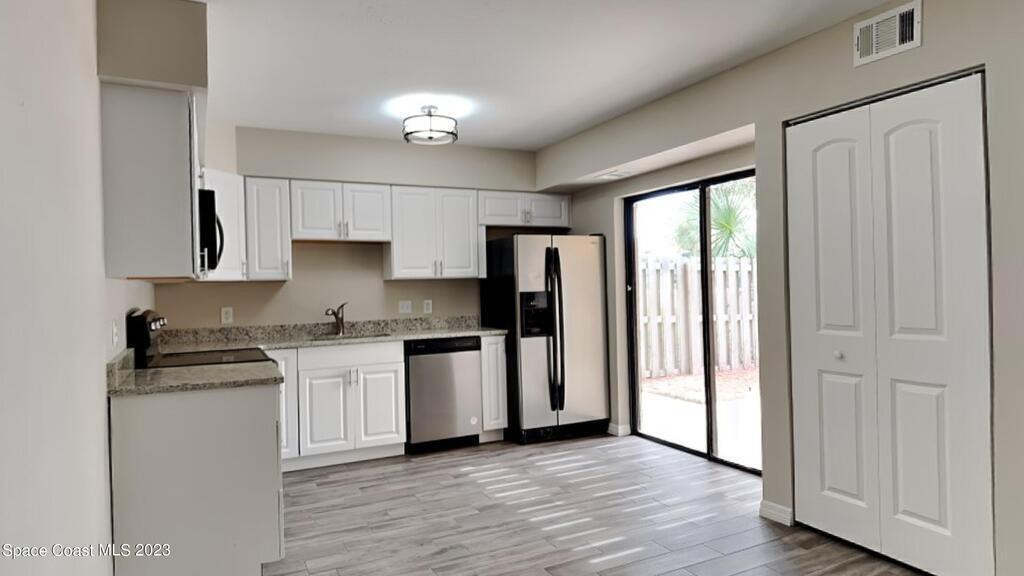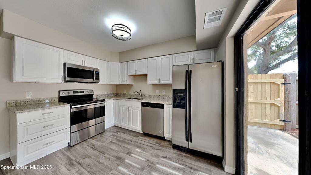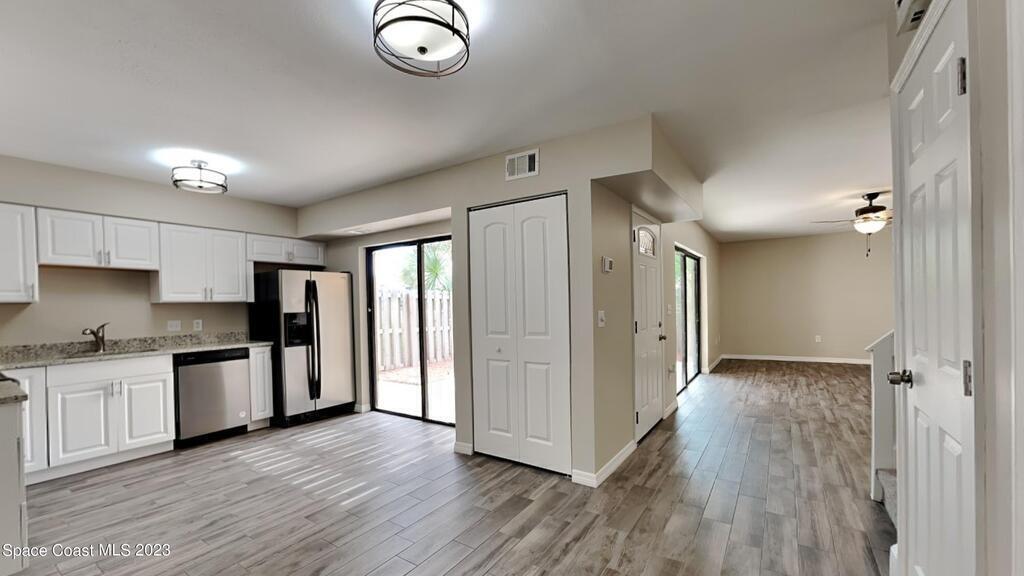 Welcome home to 1800 S Park Ave where all you have to do is move right in. This two-bedroom, two-and-a-half-bathroom townhome is perfectly situated in Titusville. It has been completely remodeled and features updated kitchen cabinets with granite and stainless steel appliances, fresh interior paint, tile in the living areas, luxury vinyl plank in the full bathrooms, and new carpet upstairs. Both upstairs full bathrooms have had a makeover with resurfaced tile and tub. The rebuilt deck upstairs has access from both bedrooms and is ready for your enjoyment; it also provides nice shade for your private courtyard below. The roof will also be replaced so there's another thing you don't have to worry about. Don't miss out on this great opportunity, schedule your private viewing today!