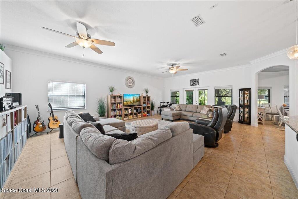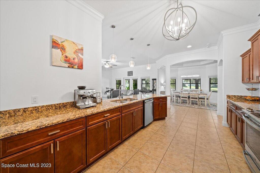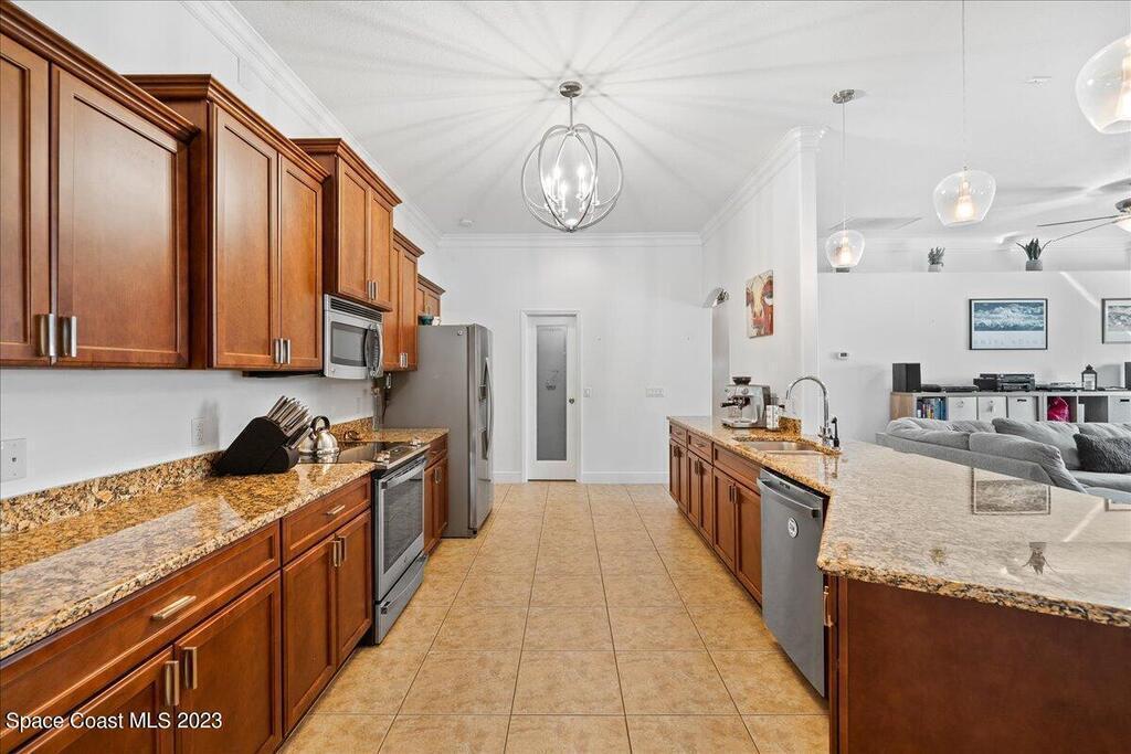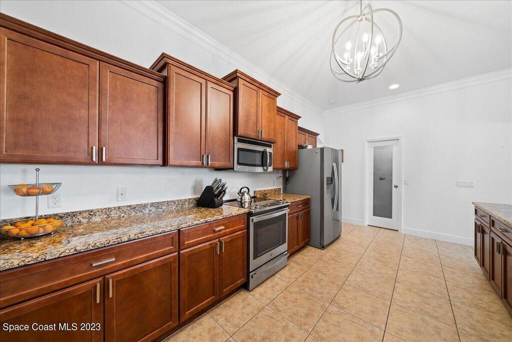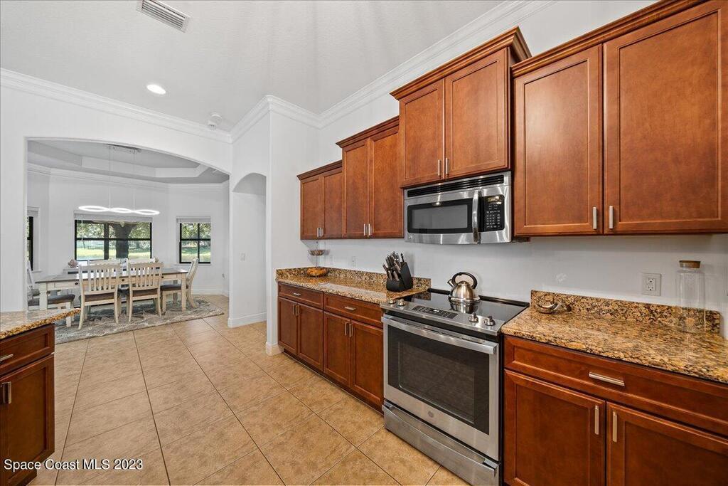 Experience the epitome of Viera living in this waterfront home boasting 4 bedrooms, 3 baths, a bonus room/5th bedroom & a 3 car garage. The gourmet kitchen offers stainless steel appliances, granite countertops and a generous pantry. The kitchen seamlessly connects to a large living room, creating a wonderful entertainment space. The second floor has a large bonus room with a private bath that serves as a versatile space that can readily function as a second owner's suite or a fifth bedroom. Spacious primary bedroom with large walk in closet and access to the patio which offers an outdoor dining area with water views and plenty of space for relaxation. The community's amenities are equally impressive, featuring a clubhouse, heated lap pool, picnic pavilion, soccer field,