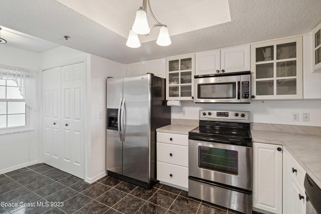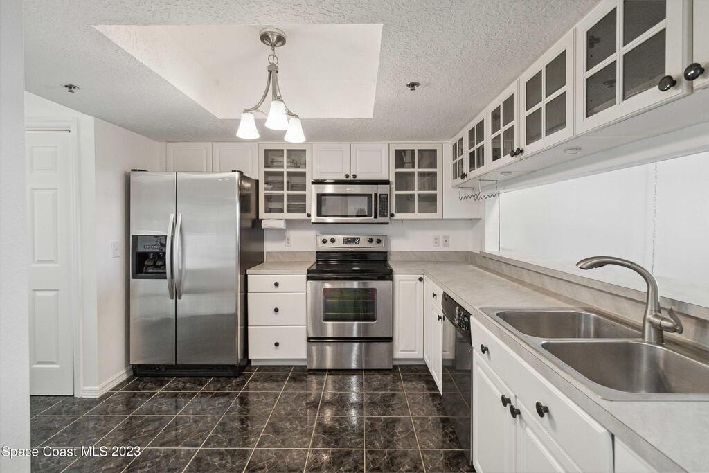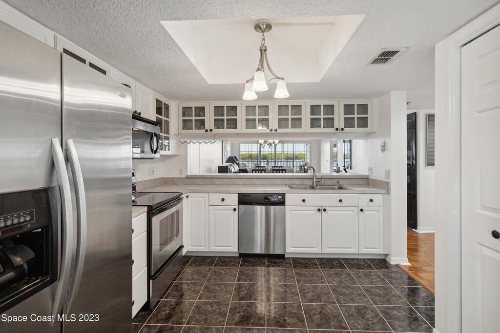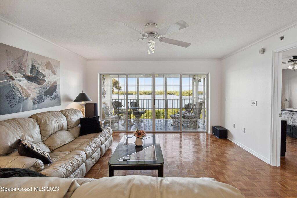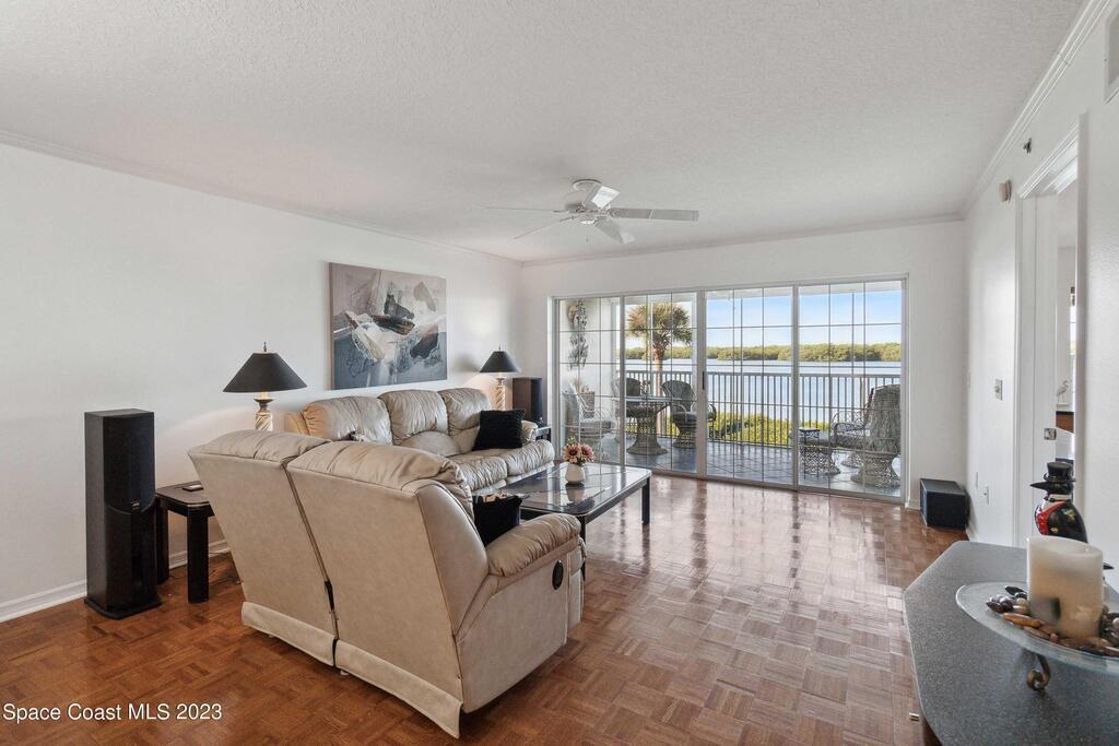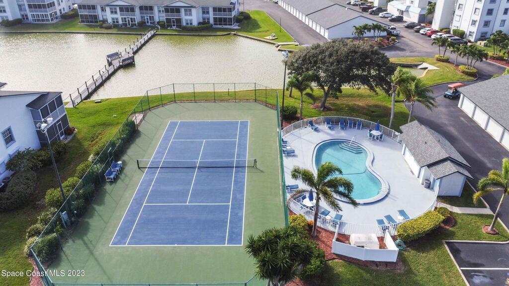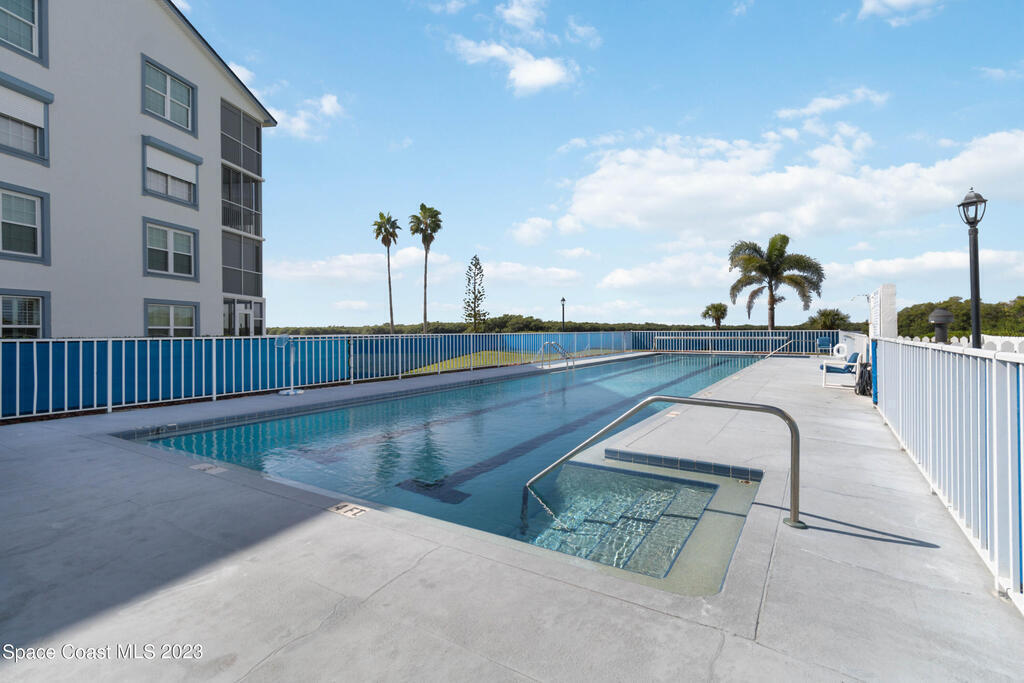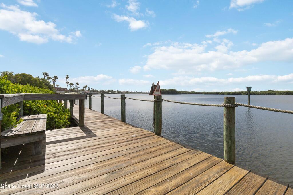 A serene waterfront lifestyle on the river's edge in the heart of Cocoa Beach! River views can be enjoyed from your private bedroom, living room & screened-in balcony. Inside features a roomy living/dining area & a wet bar, perfect for entertaining family & friends. A modern, well-appointed kitchen equipped with the latest stainless-steel appliances, & granite countertops for your culinary needs as well as an expansive breakfast bar. Enjoy watching sunsets, kayakers, dolphins, manatees, & numerous wildlife. 1 car garage located right across the building, perfect for storing your car, toys or bike to visit all the local shops, downtown & restaurants. This community has 3 pools, 2 tennis/pickle ball courts, private dock, clubhouse, sauna, shuffleboard, RV/boat space & a boat ramp next door!
