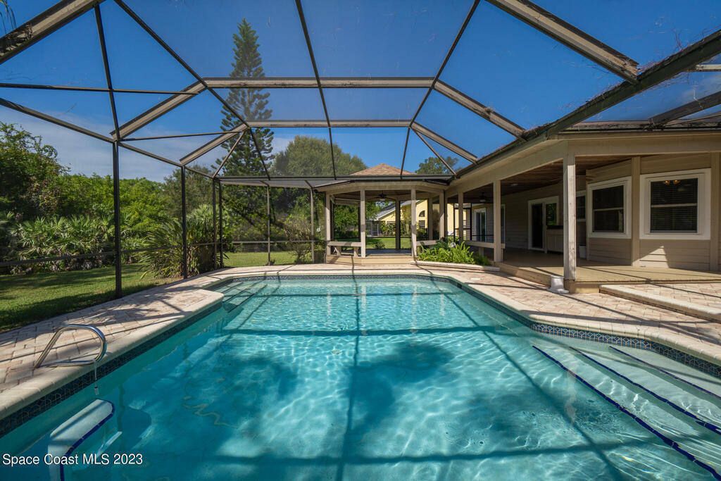 Former model home. This split floor plan pool home is ready for it's new owners! Gorgeous stone fireplace is a focal point in the family room. New roof in 2021, Impact windows throughout in 2017. New Septic system in 2023. Newer HWH. Huge sparkling pool with pavered patio. Oversize lot (.81 acres). Come see this fabulous home today!