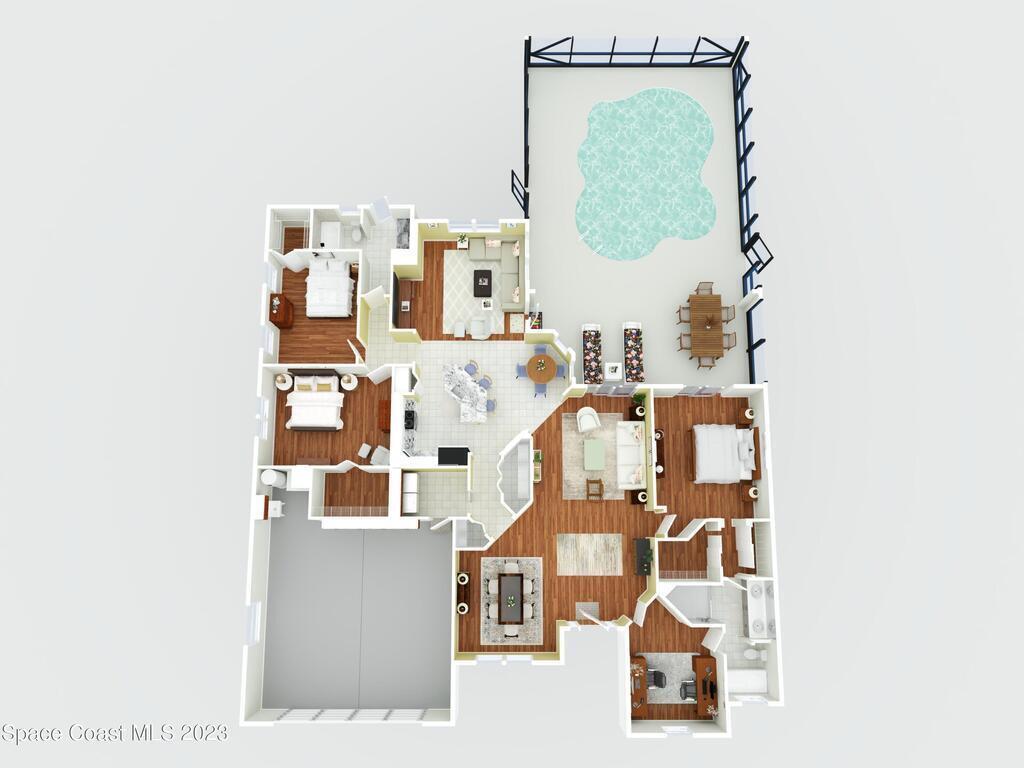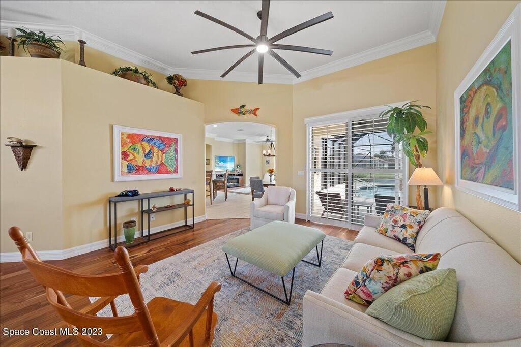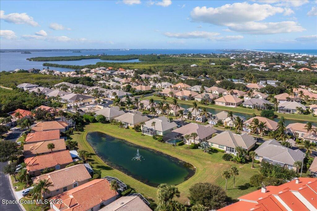 Nestled in the heart of Melbourne's South Beaches, this immaculately remodeled home is a waterfront paradise. It boasts breathtaking water feature views & sounds, perfect for those who adore tranquil poolside moments. The Indian Landing gated community offers a vibrant social scene with minimal HOA dues, inclusive amenities like river-to-ocean access, a sprawling resort-sized heated pool and pavilion, fishing pier, kayak/SUP dock, convenient in-community boat parking, ramp availability and tennis courts. This property features ample storage space with walk-in closets, a stand-up attic, an oversized garage and a new oversized patio-pool screen enclosure, making it ideal for those who appreciate both luxury and practicality in their coastal dream home.