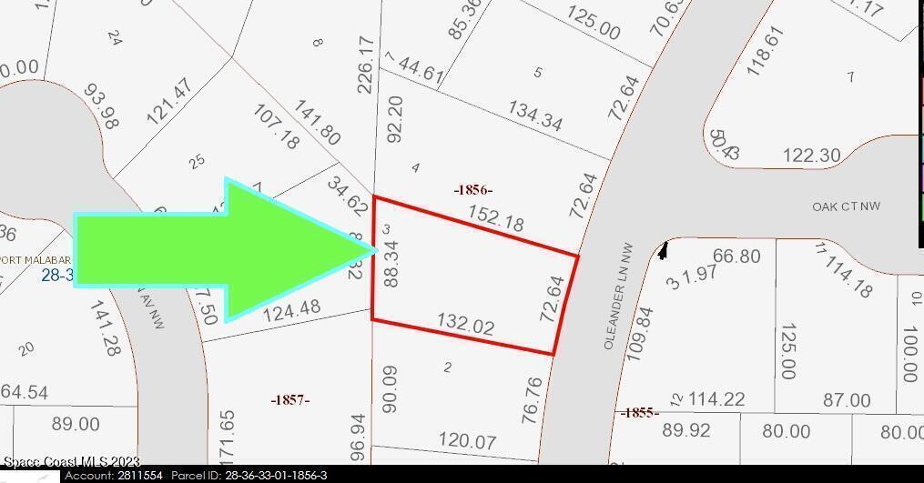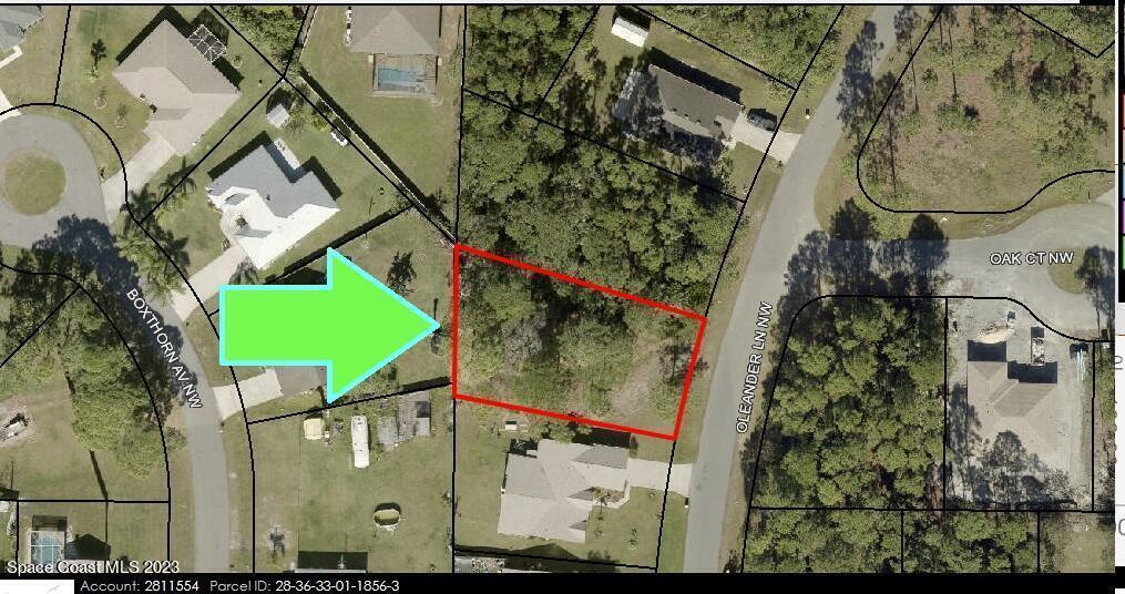 [Cleared Lot] Oversized 0.26 acre buildable single family residential lot available in Port Malabar Unit #41. Nicely located in the highly desirable NW Section near the Palm Bay Parkway, this lot is just 2.5 miles -7 minutes- to Heritage High School, 5.9 miles -13 minutes to the SuperWalmart and the I-95 ramp, 12.9 miles -24 minutes- to the Melbourne Square Mall, and just 16.4 miles -35 minutes- to the beaches in Indialantic. From Exit #176 of I-95 go west on Palm Bay Road NE. Turn left on Minton Road and proceed south for 2.5 miles. Turn right on Malabar Road and proceed west for 2.7 miles. Turn right on Krassner Drive and proceed north for 1.1 miles. Turn right on Holly Avenue NW, left on Red Bud Circle NW and right on Oleander Lane NW. The lot will be on the left hand side of the road