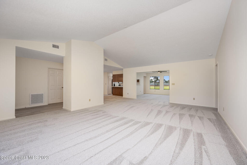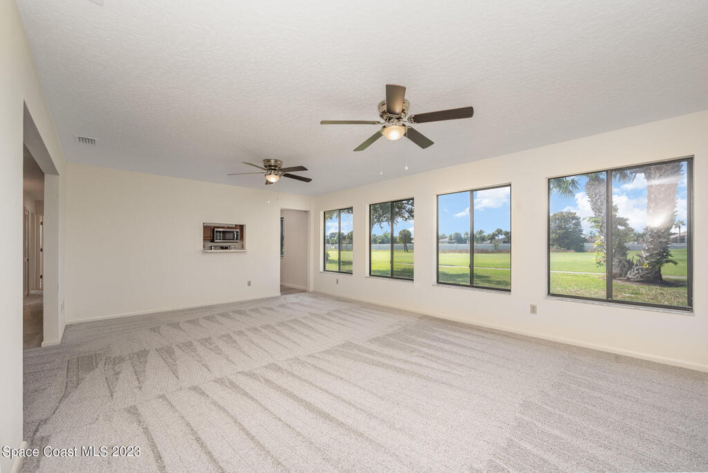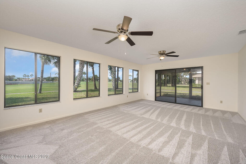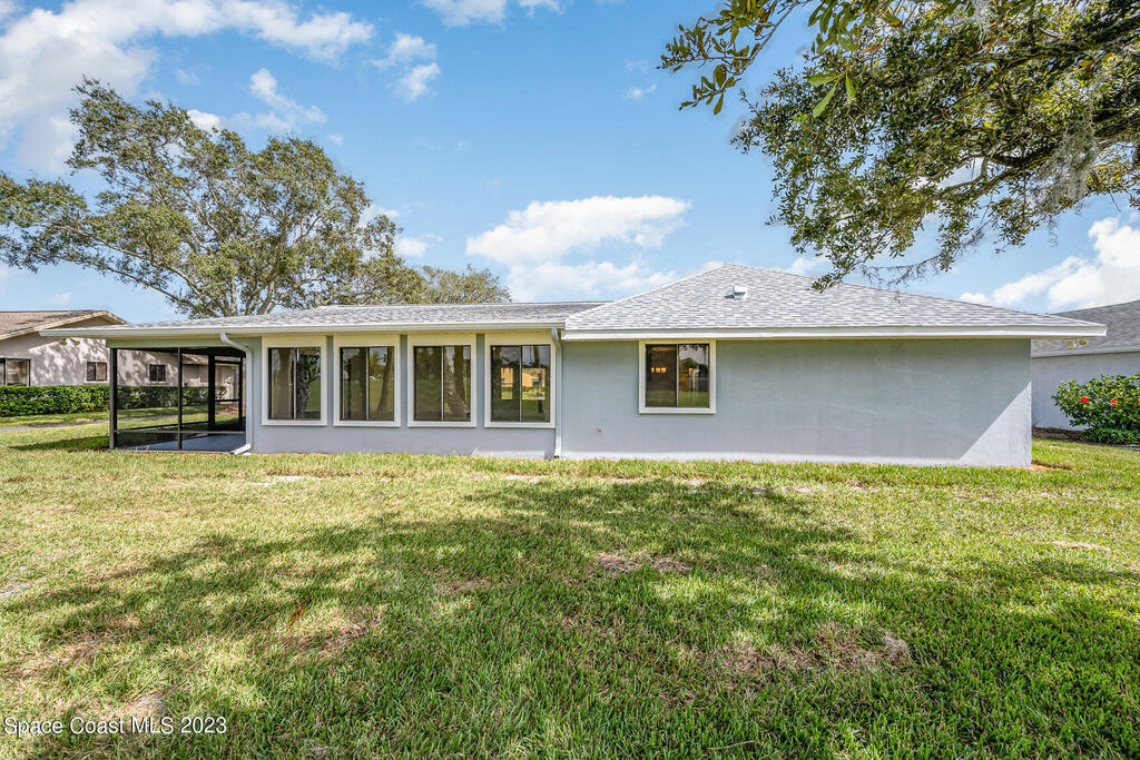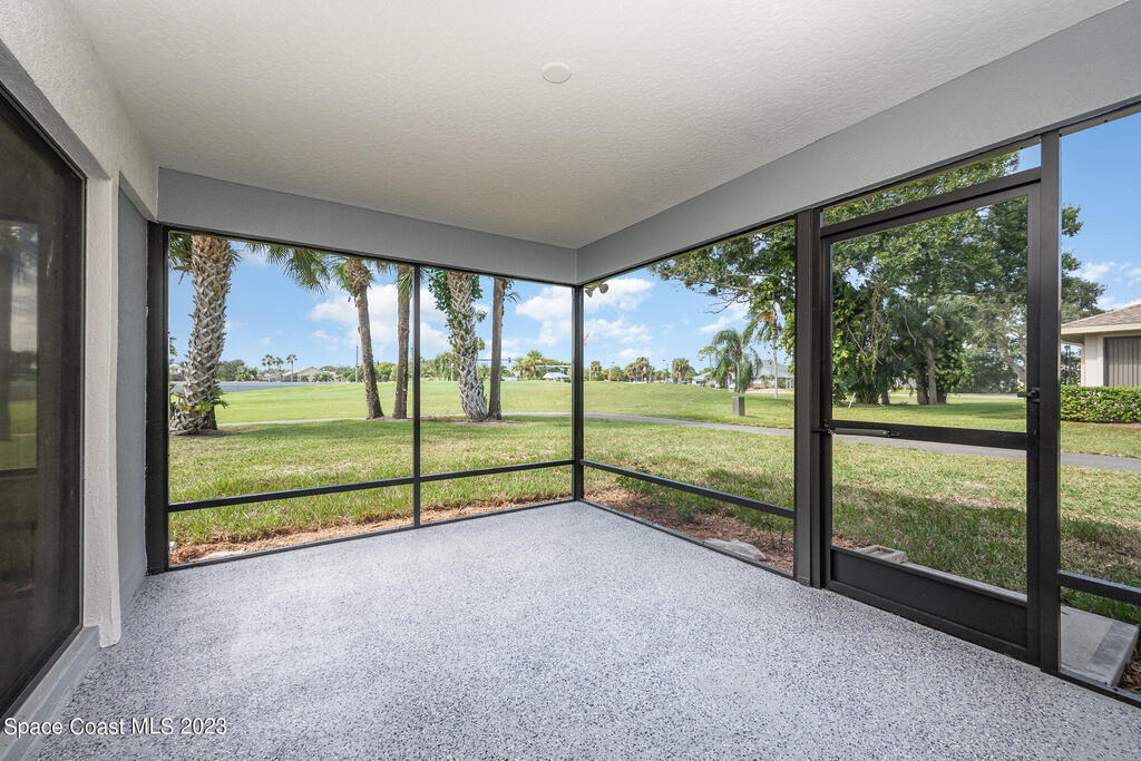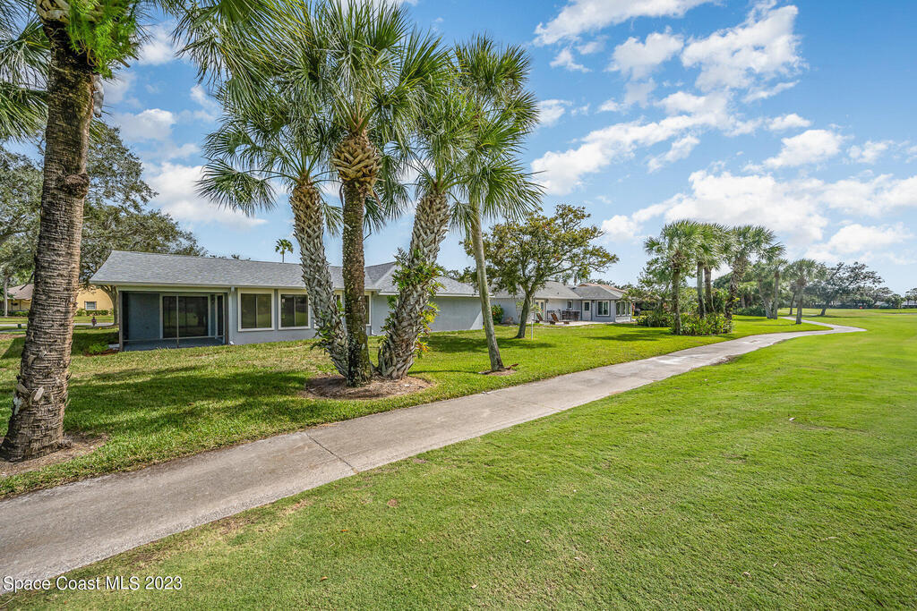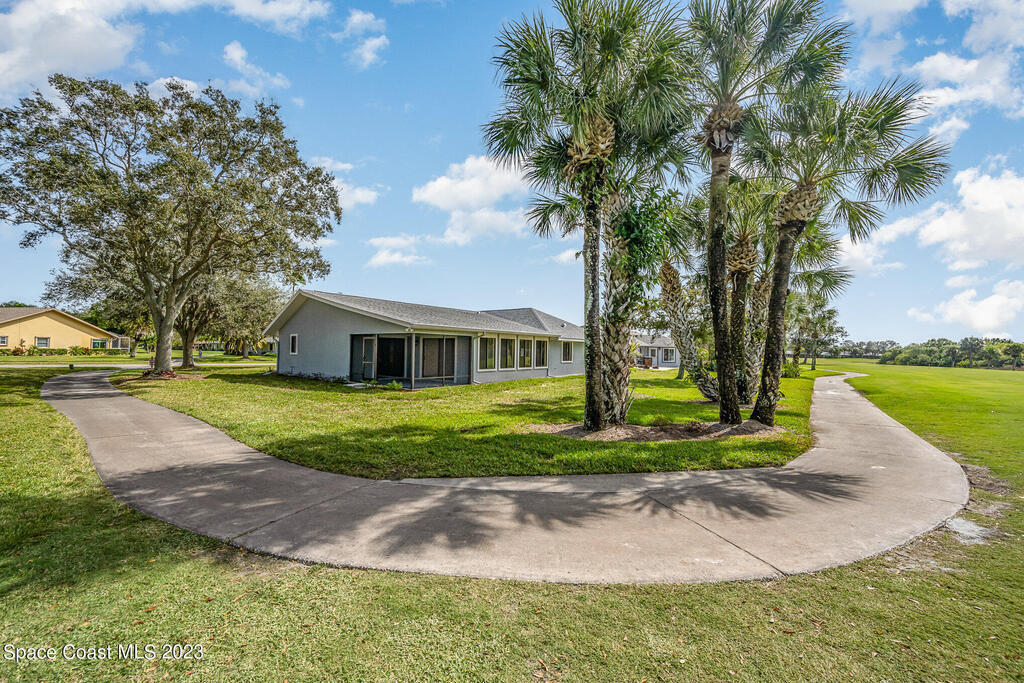 Located in a military, country club community, this fresh and charming Concord model is situated perfectly on the 17th fairway. Close to all the amenities and easy access to the front gate. This home features vaulted ceilings, BRAND NEW 2023 roof, fresh interior and exterior paint, all new luxury vinyl floors, carpet, updated and beautifully tiled bathrooms, all new SS appliances, new HVAC and water heater! Trussed and brand new screened back patio enclosure overlooking the golf course and the gorgeous Florida sunsets. Both the patio and garage have new epoxy flooring. MUST SEE! Home to over 600 Military Veterans, Indian River Colony Club is a Private 55+ Country Club community with an extensive maintenance program for each home, an 18-hole golf course, fine dining restaurant with an