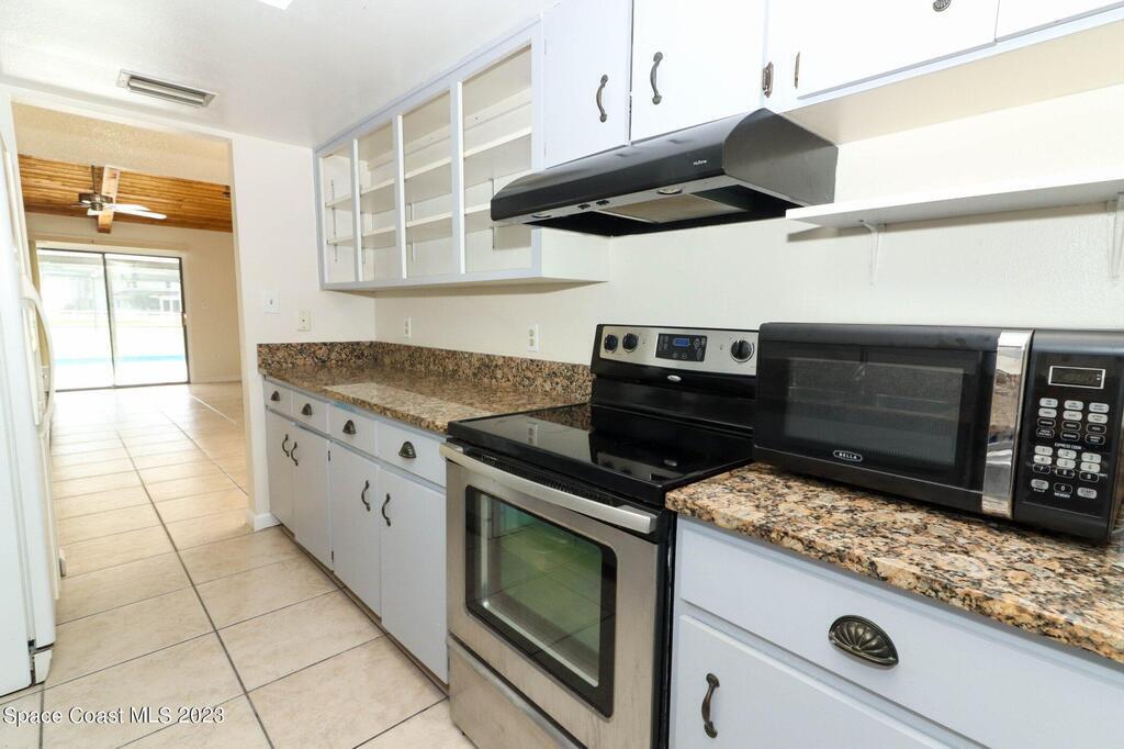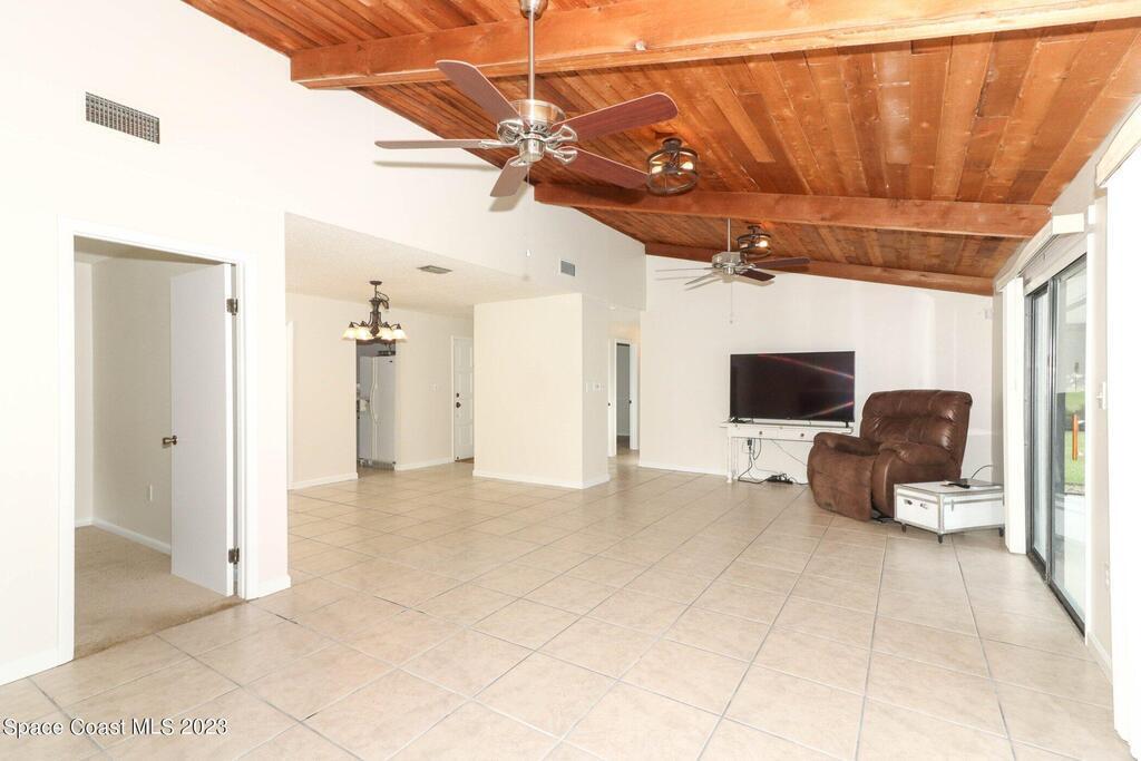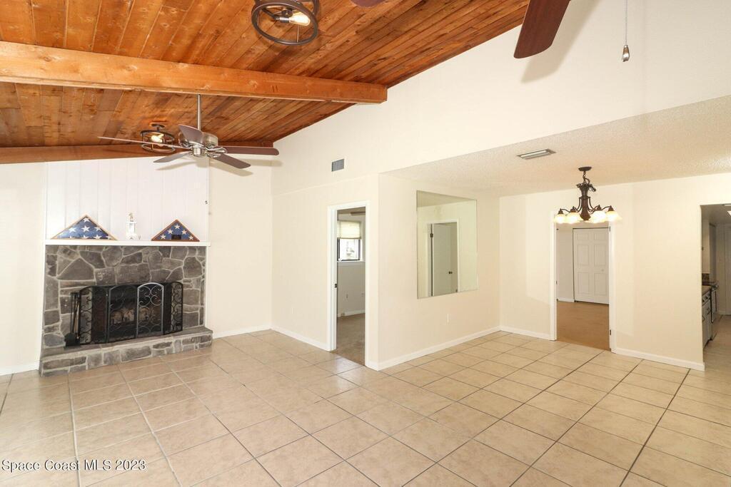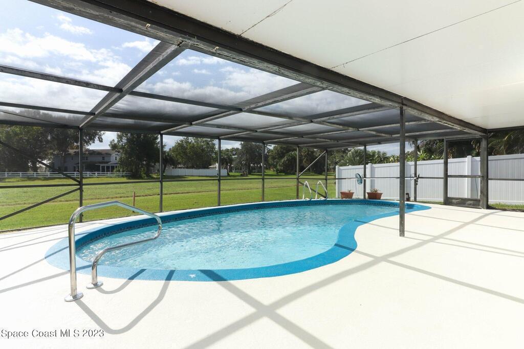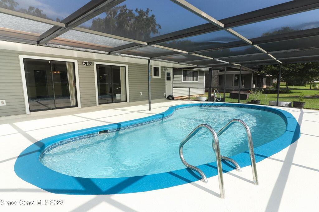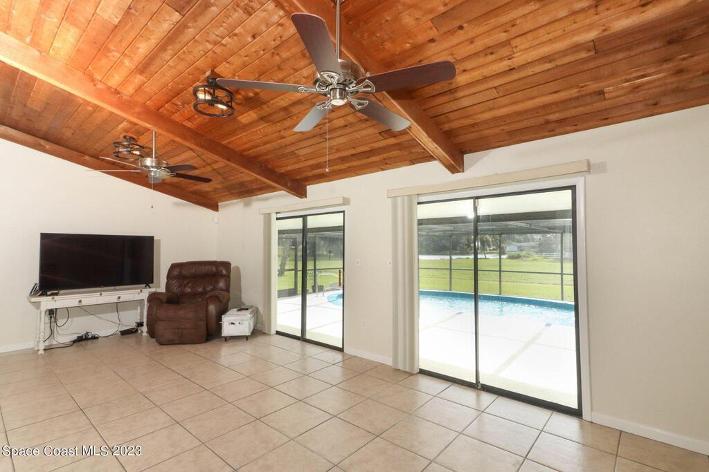 BACK ON MARKET. Buyers' contingency fell through.Welcome home to this spacious POOL home in the quiet neighborhood of Sherwood Villas in Titusville. This home features 3 bedrooms, an office (no closet), and a large bonus room, which can be used as flex space or a 4th bedroom. The kitchen has a stainless steel range and dishwasher. The home also offers an oversized great room with a wood-burning fire place, as well as a separate dining room. The great room boasts a beautiful cedar ceiling. The pool includes a screened enclosure as well as some covered space. So many recent improvements including new roof in 2021, AC - 2019, pool re-surfaced in 2023, new vinyl siding in 2022, hurricane impact garage door and new opener in 2023, gutters in 2022.