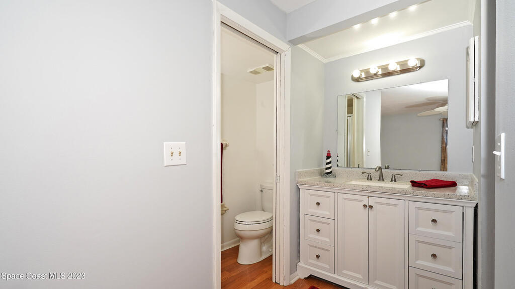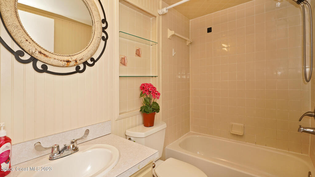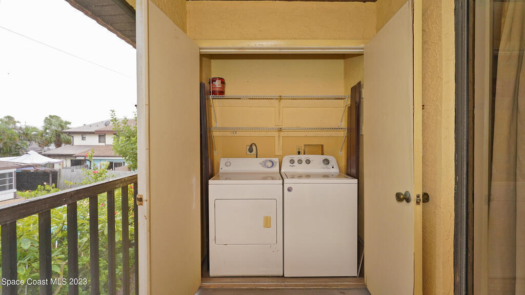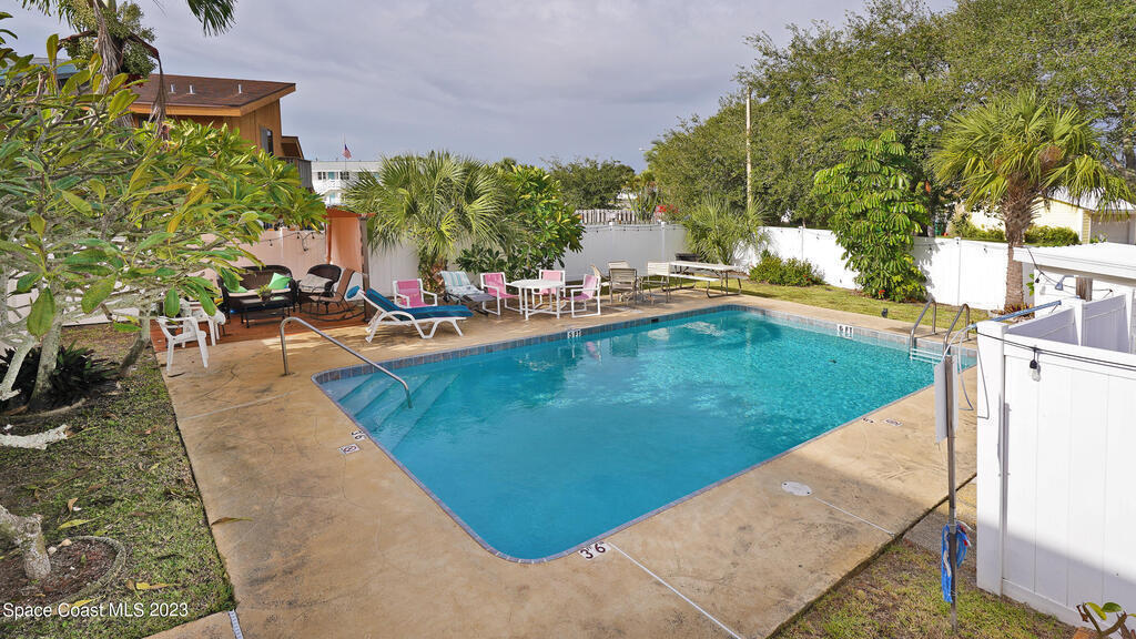 Beachside Bargain in Cape Canaveral with tenant in place! Great investment! ONLY 3 Blocks from the Beach/ Ocean. Small well-kept charming 10-unit complex with a large community pool! This end unit is freshly painted with 2 bedrooms, 2 baths, washer & dryer, Florida flooring throughout, granite countertops, lots of storage, open floor plan with lots of natural light. Large screened-in balcony overlooking lush landscape! Up to 65lbs dog allowed. MOVE In ready! Ideal for full-time residents, and snowbirds, or could be a good money maker. Location, Location! 1 hour to Orlando Airport, Disney/ Attractions, shopping, Space Center, and much more! 1 pet is allowed up to 65 pounds. So much for so little... won't last!
