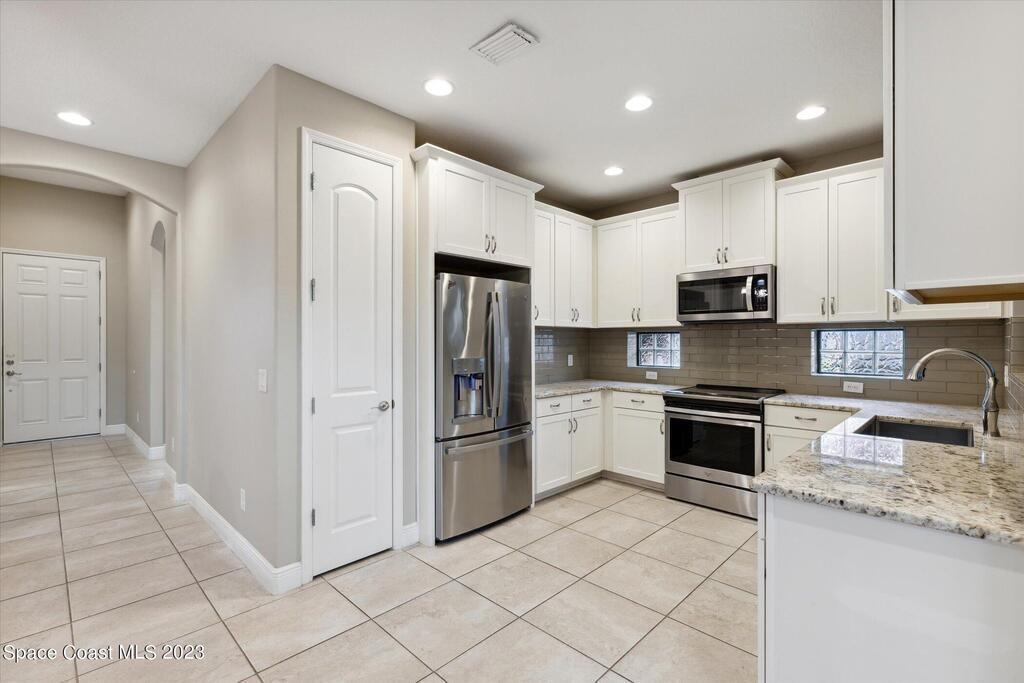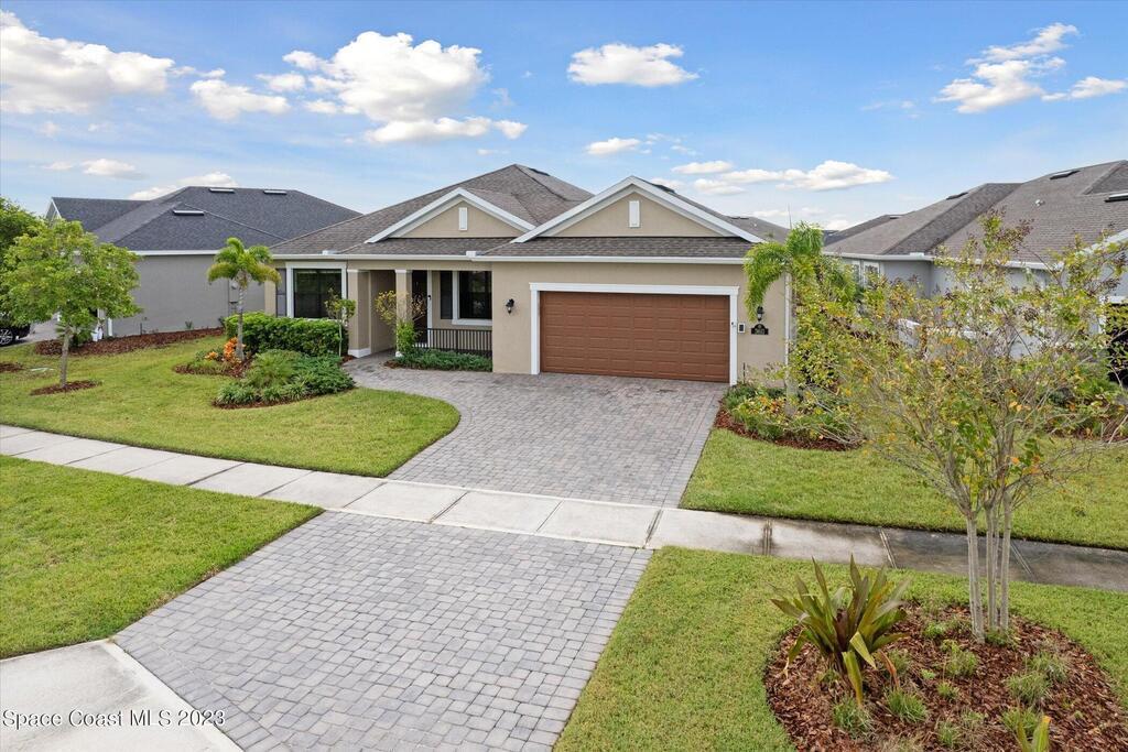 NOW PRICED BELOW APPRAISED VALUE! This well appointed and freshly painted home is in the sought after community of Trasona in Viera. A 3 bed 2 bath beauty featuring an open family/living great room adjacent to a stunning kitchen of designer white cabinets, granite counters and stainless steel appliances (including a refrigerator with built in Keurig)! Fenced back yard is perfect for entertaining and the four legged furry family members! The oversized two car garage actually fits two cars and leaves plenty of room left over for your toys! Enjoy access to the Addison Village amenity center which includes a clubhouse, resort and lap style pools, tennis courts, etc. Lawn service and landscaping is done for you so enjoying your time with the family is a lot easier!