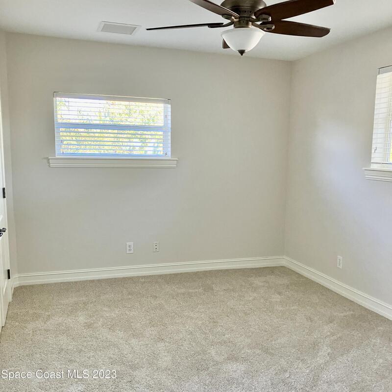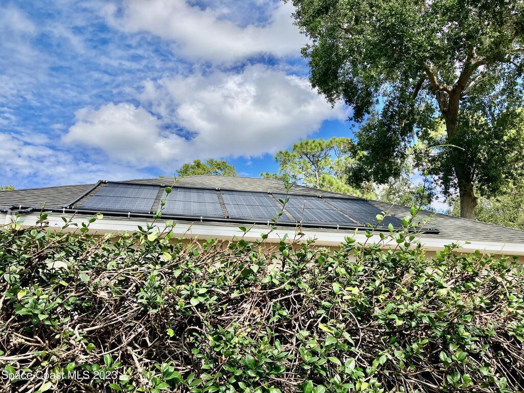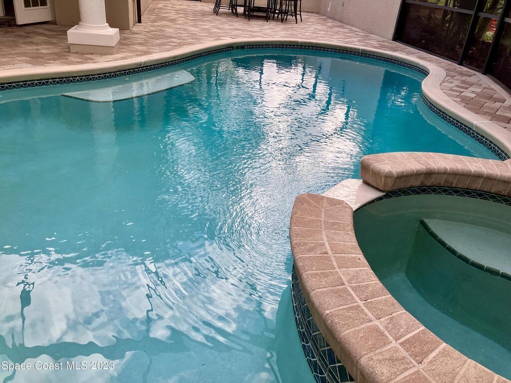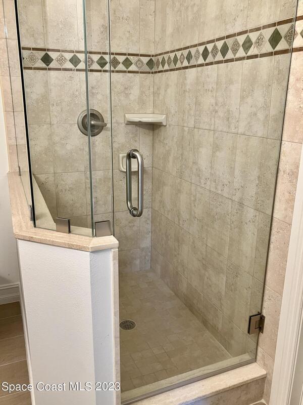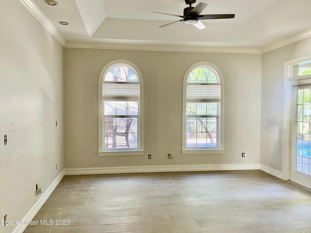 Work from home in the PRIVATE OFFICE of this tastefully updated home in the lovely location of Waterside Dr in South Merritt Island. Office is located at the rear of the home in the OWNERS RETREAT which also includes the bedroom, large walk in closet, full bath & French doors to POOL. Adjacent to the retreat is the room perfect for nursery, child's room, yoga room, etc.The home is designed for entertaining with bright & open living and dining rooms, kitchen with breakfast nook, family room with gas fireplace, and a full bath with access to the POOL. All overlook the spacious lanai, solar heated screened pool, and screened terrace. Large FENCED YARD has paver areas for play. Upstairs features 2 bedrooms which share an under roof screened porch overlooking the pool