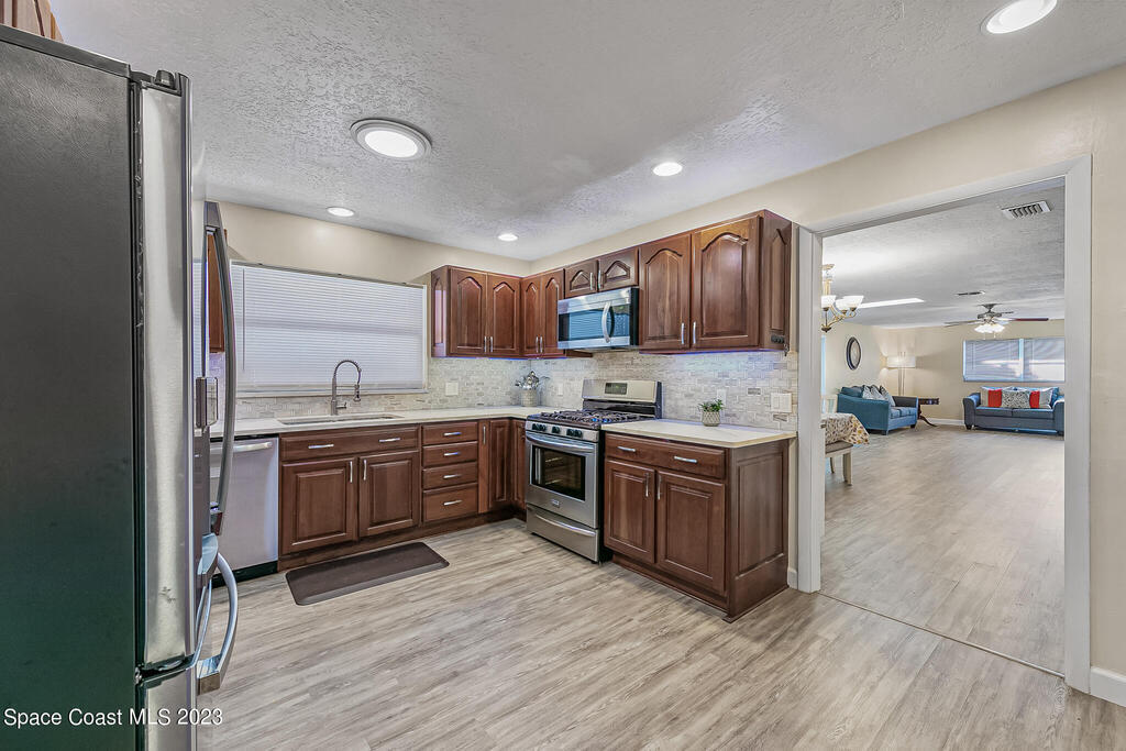 This 4 bedroom 2 bath completely remodeled home showcases a very modern open concept. The dining, family and living room are all together in one space with a 4th bedroom on the other side of the house behind the garage. All new plumbing drains, brand new roof, laminate flooring, doors & trim, updated baths and countertops make this home feel like it was just built. You'll enjoy the large trussed screen porch, oversized bedrooms and wide fenced in lot with mature landscaping giving this home lending its own individual design.