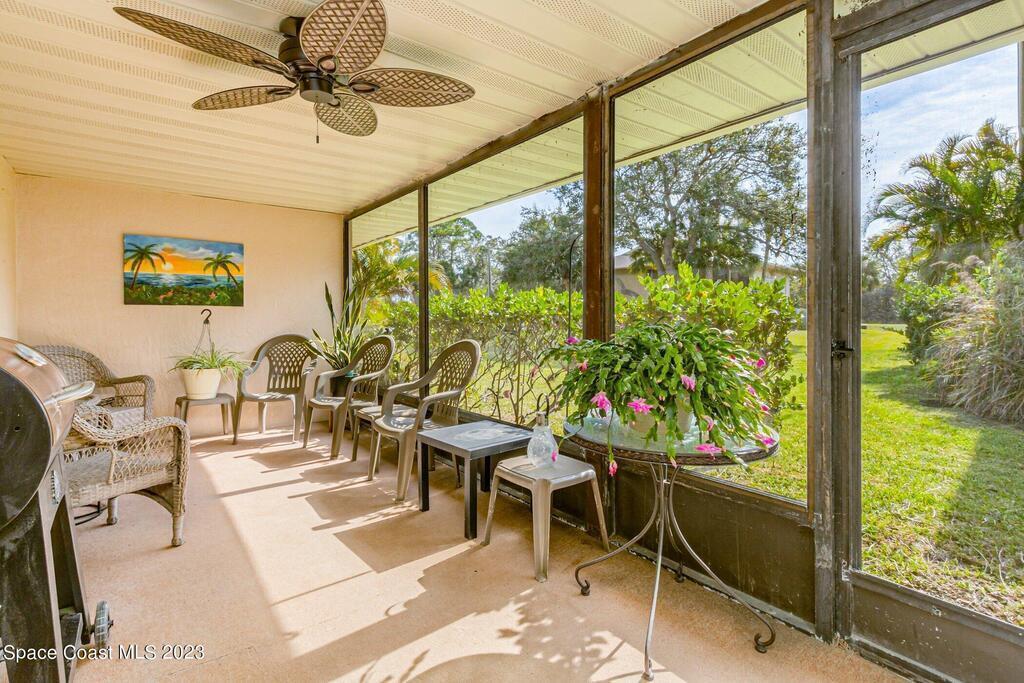 Cozy & beautifully maintained 2 bedroom, 1.5 bathroom condo ready for you to move in! Newly renovated bathroom and fresh paint recently done. Tile throughout the condo, NO CARPET. Plenty of space in the living/dining combo for entertaining your guest. Large private screened patio with a relaxing view. Additional storage room off of the patio. Washer/dryer in unit. This unit is walking distance to the community clubhouse, pool & sauna. Everything you need is just a short drive away. Plenty of restaurants, local shops, movie theaters and entertainment at the Avenue Viera for you!