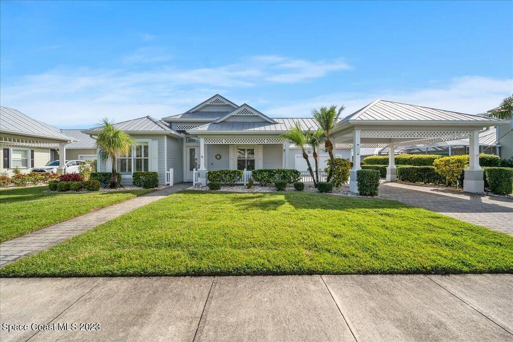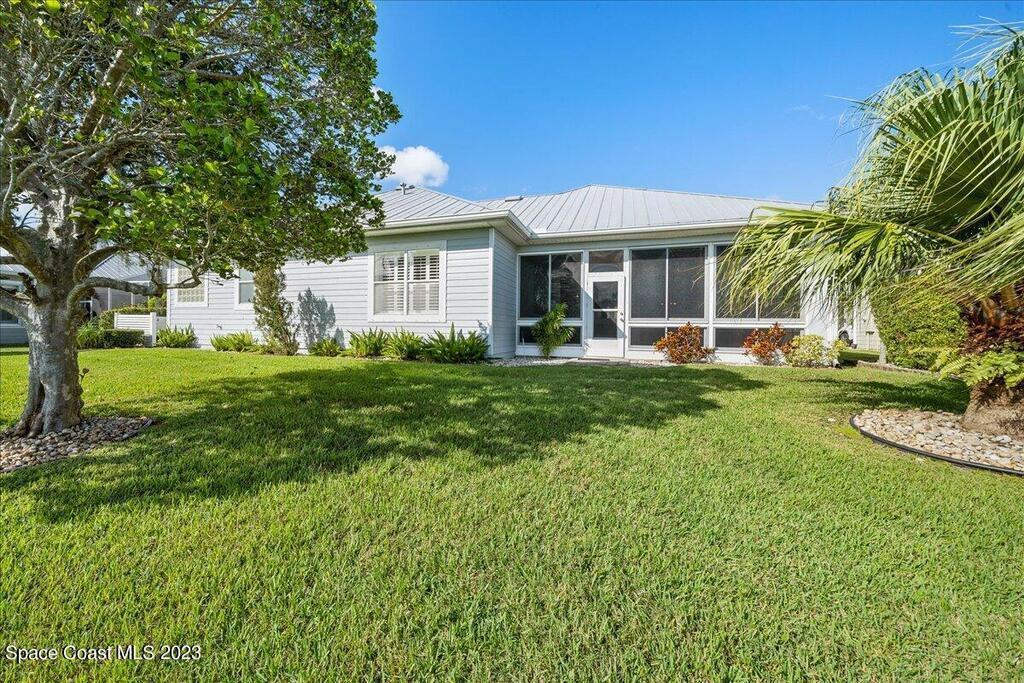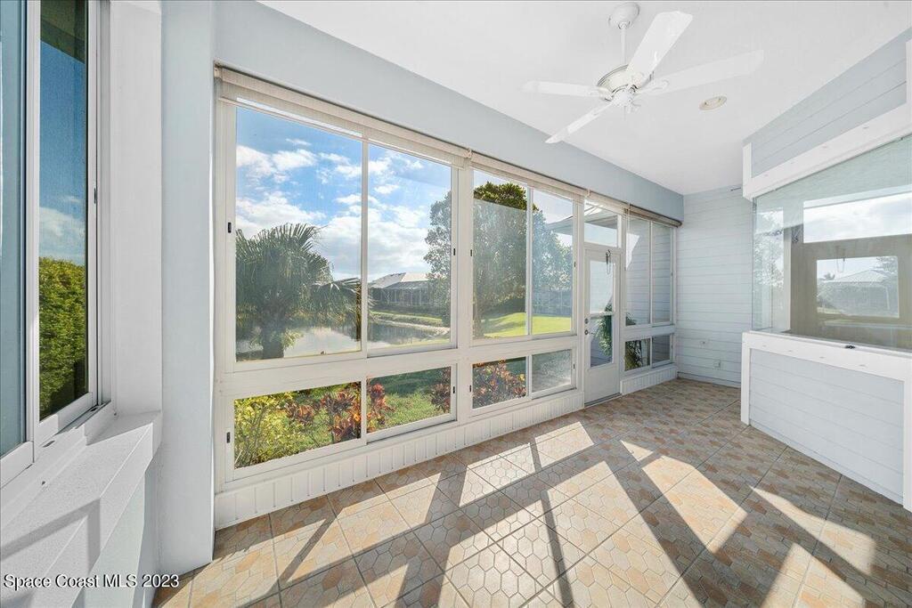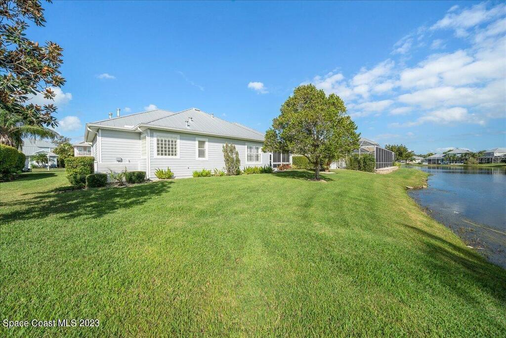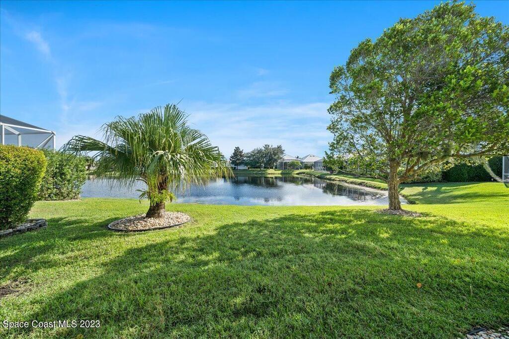 This stunning well maintained home located in the gated community of Sawgrass at Suntree. This home features 2362SF with 3BD 2BA and a dedicated office. Open floor plan with beautiful views of the water. Tile and laminate flooring throughout. Carpet in secondary bedrooms only. Kitchen features solid surface counters, built-in appliances, walk in pantry open to family room and informal cafe. Interior laundry room with additional space for second fridge. Plantation shutters throughout. Maintenance free living as the HOA takes care of lawn, exterior paint and roof. HVAC 2019, newer hot water heater. Come enjoy Florida living at its finest. Close to major roads, restaurants and shopping in the heart of Suntree.