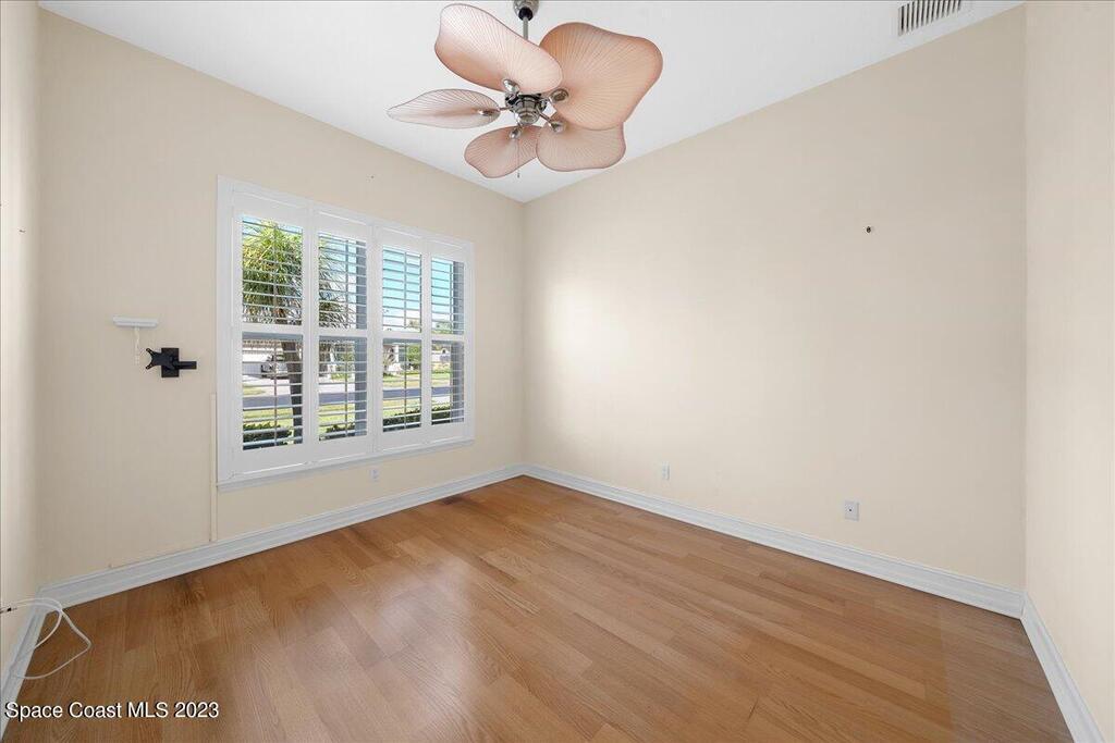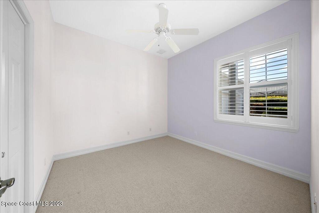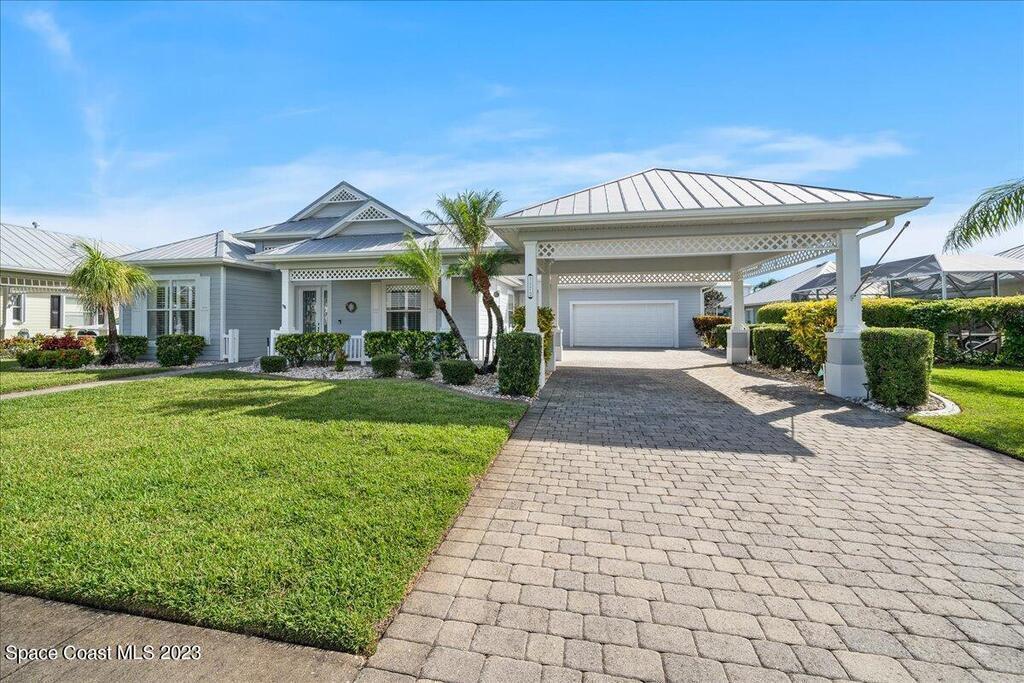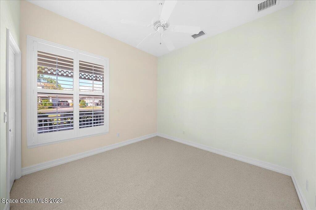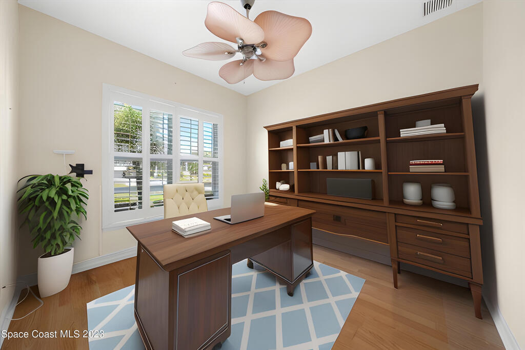This stunning well maintained home located in the gated community of Sawgrass at Suntree. This home features 2362SF with 3BD 2BA and a dedicated office. Open floor plan with beautiful views of the water. Tile and laminate flooring throughout. Carpet in secondary bedrooms only. Kitchen features solid surface counters, built-in appliances, walk in pantry open to family room and informal cafe. Interior laundry room with additional space for second fridge. Plantation shutters throughout. Maintenance free living as the HOA takes care of lawn, exterior paint and roof. HVAC 2019, newer hot water heater. Come enjoy Florida living at its finest. Close to major roads, restaurants and shopping in the heart of Suntree.
