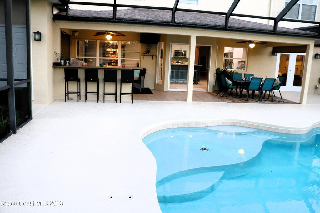 Welcome to this luxurious 2-story lakefront dream home that has postcard-perfect views and shows like a new home! It is a remakable find! Completely Updated with tons of amentities! Roof(2019) HVAC(2021). The first thing that will take your breath away is the spectacular screened-in large saltwater pool, with a beautiful double waterfall. Every day feels like a vacation as you lounge by the pool, savoring the ambiance, and taking in the mesmerizing lake view. The pool is not just a feature; it's an experience. This pool has been equipped with a new high-efficiency electric heat pump, for year long swimming! Inside, you'll find a thoughtfully designed space, offering upstairs living and laundry. The Owner's bedroom is a true retreat with an oversized walk-in closet, a remodeled spa