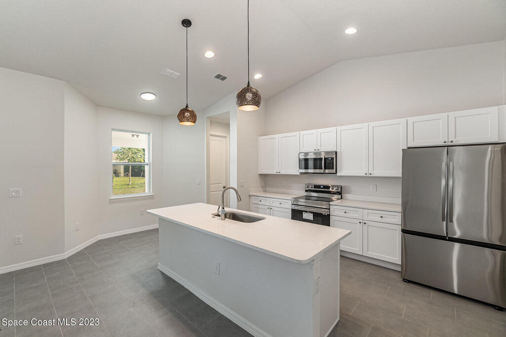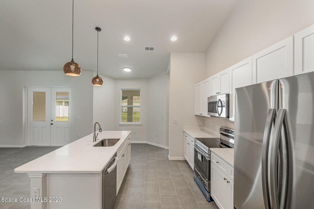 Gorgeous Custom home in established neighborhood close to all daily needs, Home features Impact widows, 9'4'' ceilings, 8' craftsman doors, 5 1/4'' baseboards, & modern tile throughout! Eat-in kitchen is open to the large great room. Kitchen features include breakfast nook, solid wood shaker cabinets, 8'x4' kitchen island w/room for seating, Level 2 quartz countertops and stainless steel appliances, including refrigerator! Your master suite boasts high ceilings, his and hers walk in closets with French doors that leads to a huge 700 ft. lanai! Master suite includes double vanities and a glass enclosed shower. Additional features, include glass front door, architectural shingles plus google door bell and thermostat! Hurry, this will not last long! Closing cost available FHA/VA welcomed!
