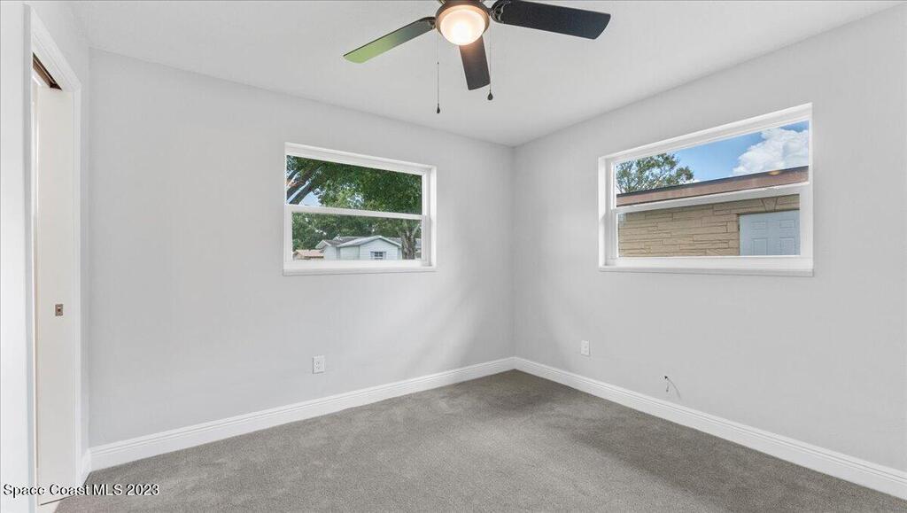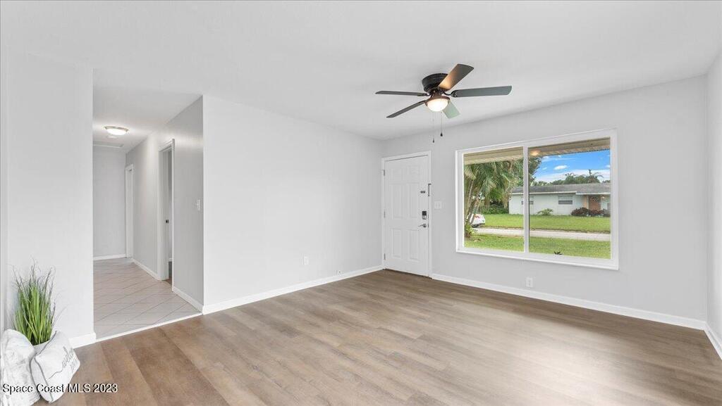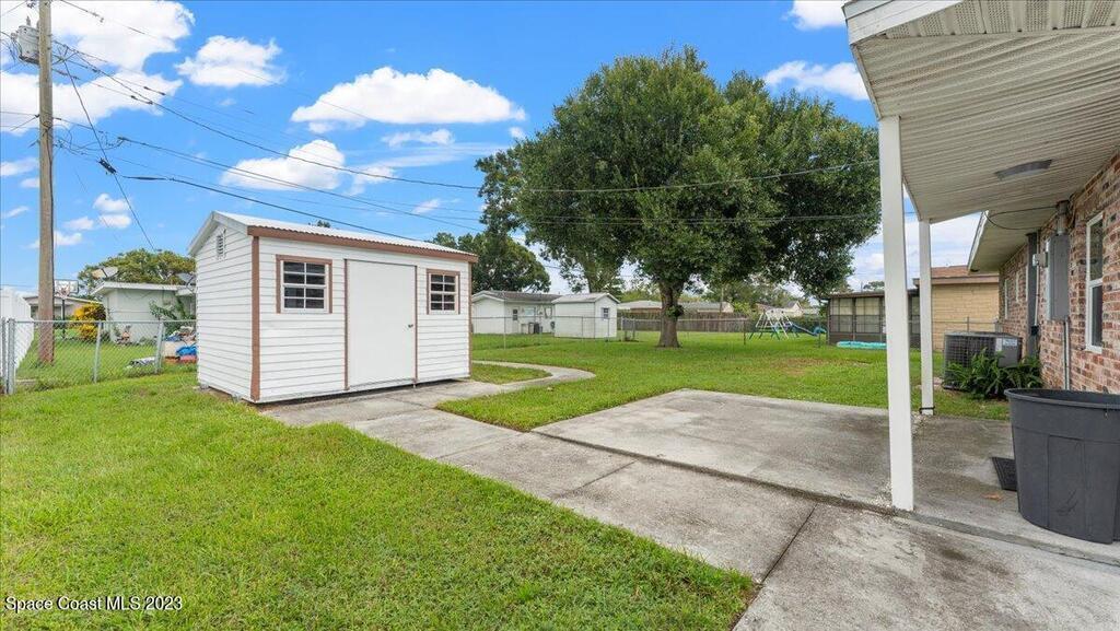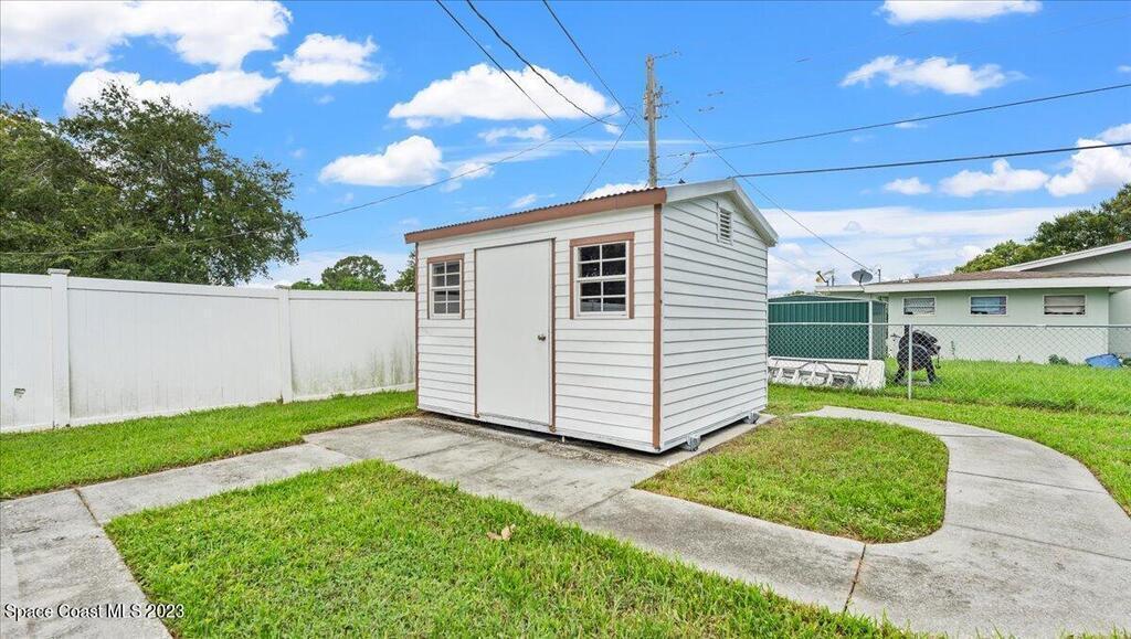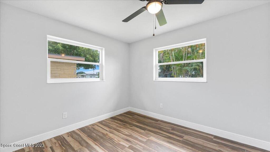 This wonderful 3 Bedroom 2 Bath immaculate home is move in ready. NEW ROOF (Oct 2023) with 10 year transferrable warranty. Home features all NEW Hurricane impacted rated windows, floors, and modernized bathrooms with new toilets, vanities, lights, mirrors, and shower fixtures. Enjoy this fully renovated home with every room freshly painted, all new LEDfans, switches, receptacles, and outside recently landscaped. Upgraded electrical panel. The backyard is fenced in and includes a storage shed. Hurricane plywood is included.Conveniently located in central Melbourne near all your shopping and dining needs. A short drive to beaches, Downtown Melbourne area, and businesses such as L3 Harris, Grumman, Embraer, and more. This property is ready for a new family to call it home!