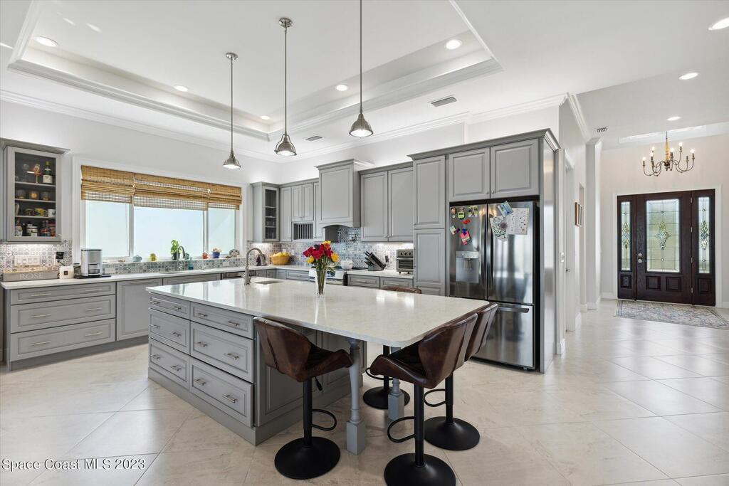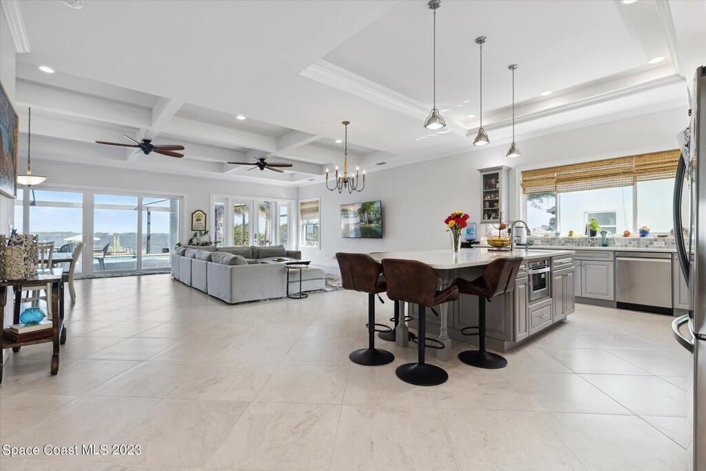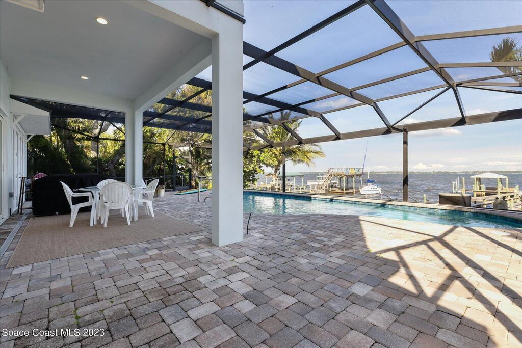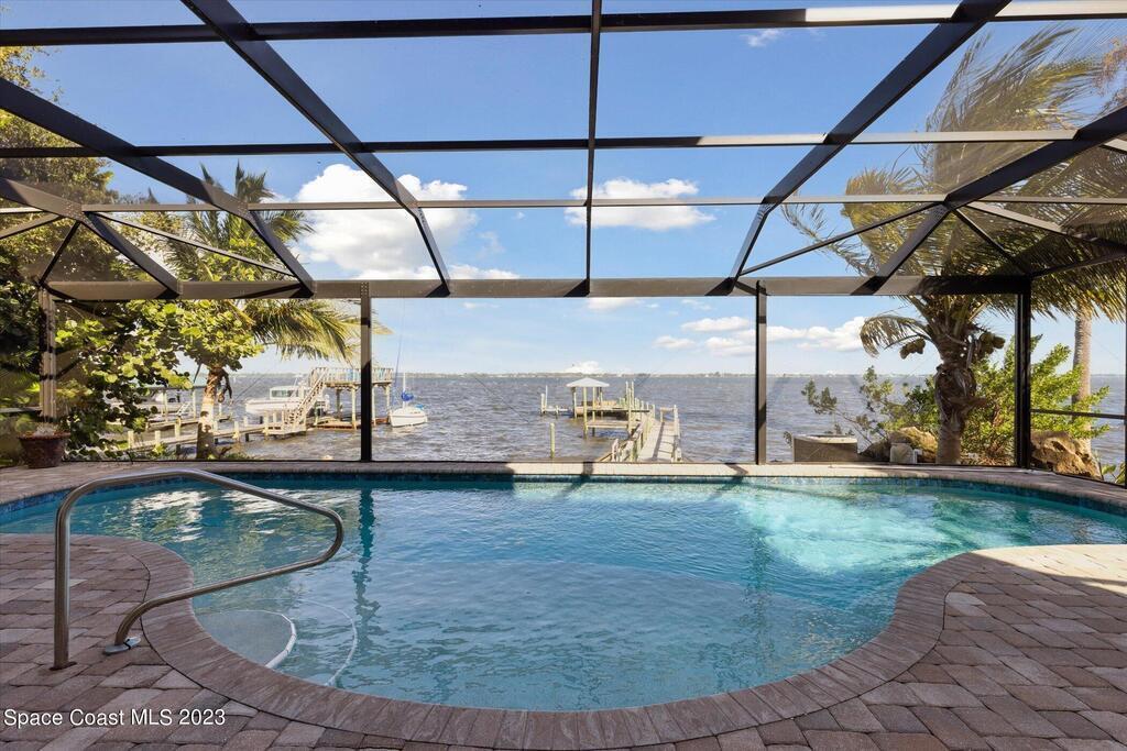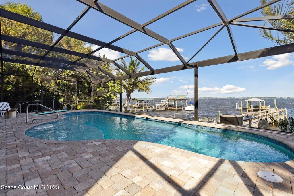 Welcome to your dream waterfront oasis! This stunning single-family home boasts 5 spacious bedrooms, a huge flex room, office or could be a 6th bedroom and 4 luxurious bathrooms, providing ample space for your family to thrive. The 2-car garage ensures convenience and is climate controlled. There is an RO system throughout the home. The views of the sparkling pool and expansive river are breathtaking, The kitchen is a chef's delight, The pictures don't do this kitchen justice! Your private dock has an amazing gathering spot and versatile boat lift for easy access to the water. The window treatments provide privacy and style. This home truly has it all, combining comfort, functionality, and luxury. Don't miss the opportunity to make this your forever home! Many Spectacular upgrades!!
