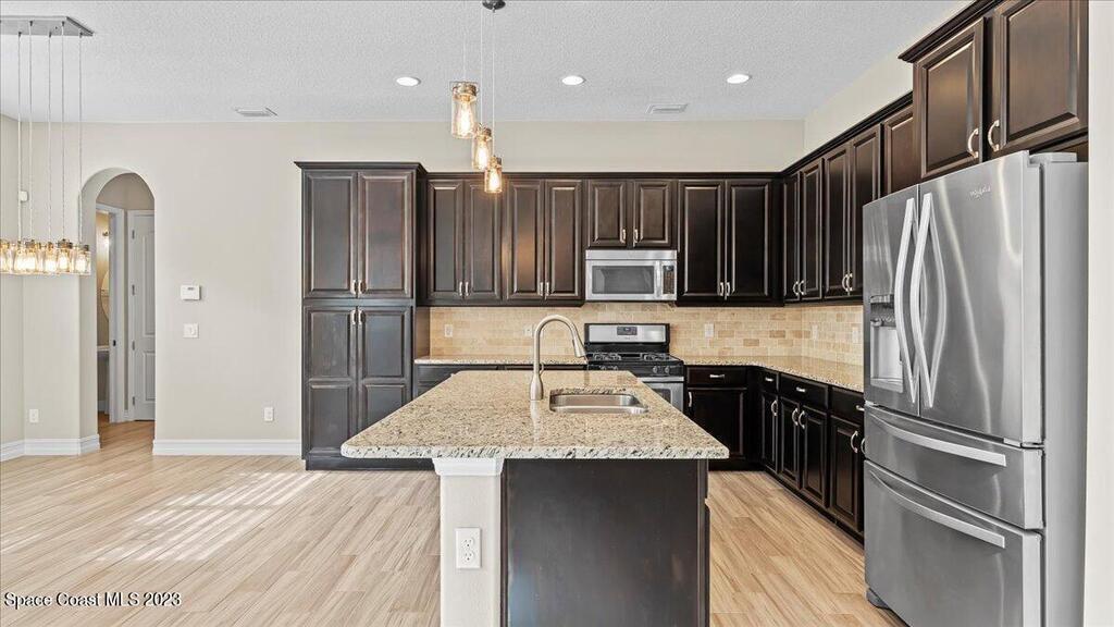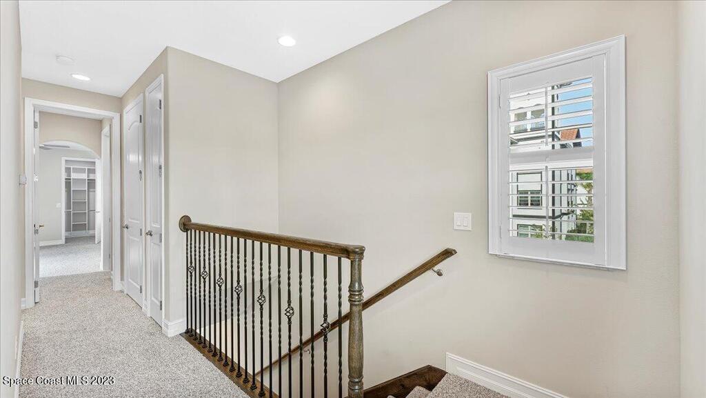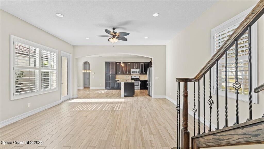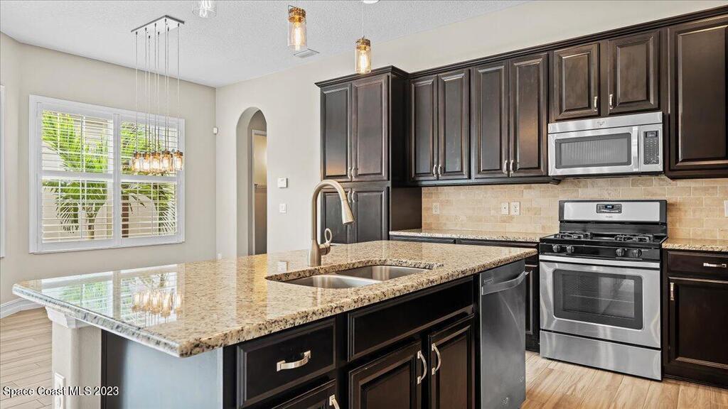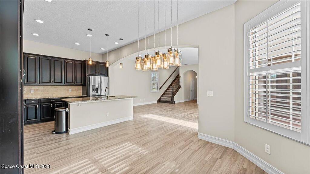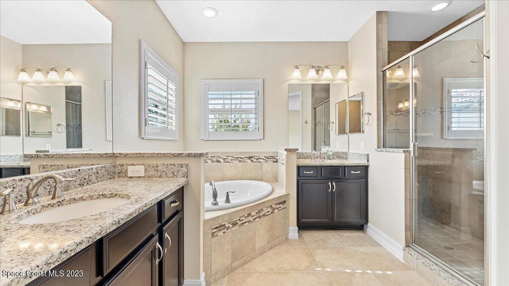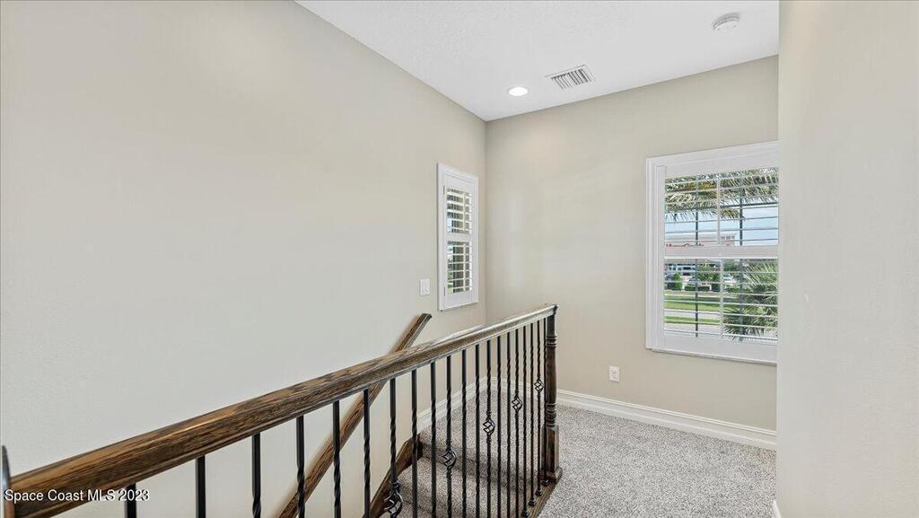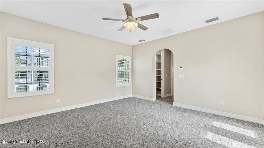Rocket launch views are awaiting you at this beautiful Merida floor plan located in the highly sought after community of Arrivas Village. The maintained community offers its own pool & dog park while being located in the heart of the top 10 master-planned community of Viera! Restaurants, shopping and golf are within walking distance or a short golf cart ride! This 4 bed, 3.5 bath open concept floor plan offers a spacious kitchen with huge island for entertaining & large great room with lots of windows and french doors which allow light to pour into the home. One bedroom downstairs is perfect for guests, in-laws or an office. The hall bath provides a walk-in shower for those unable to walk upstairs. On the second floor two bedrooms are separated from the master with a jack & jill bath and