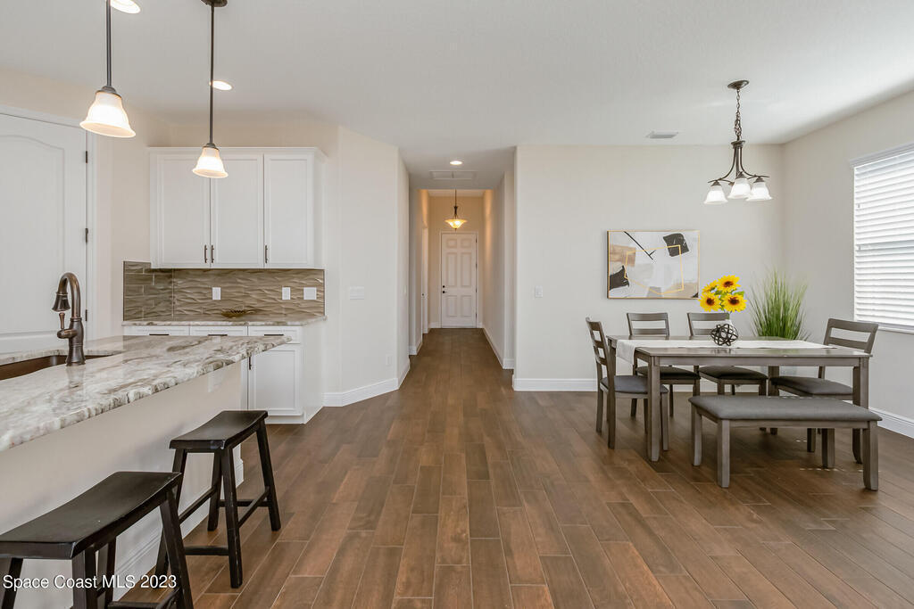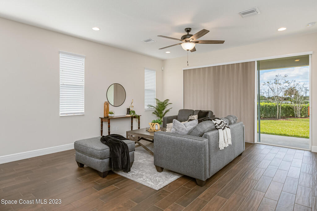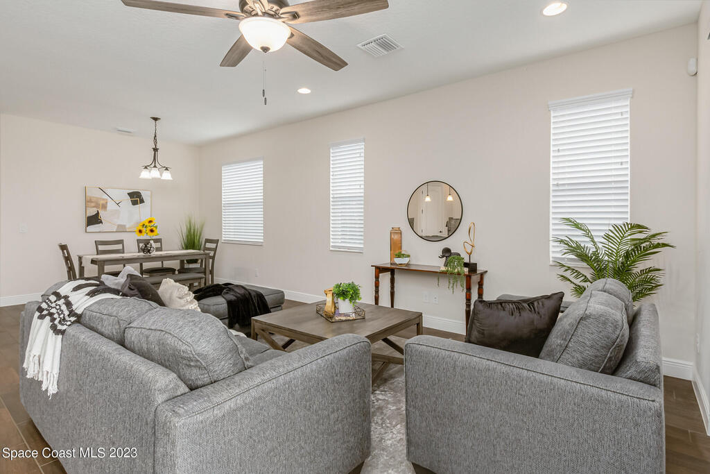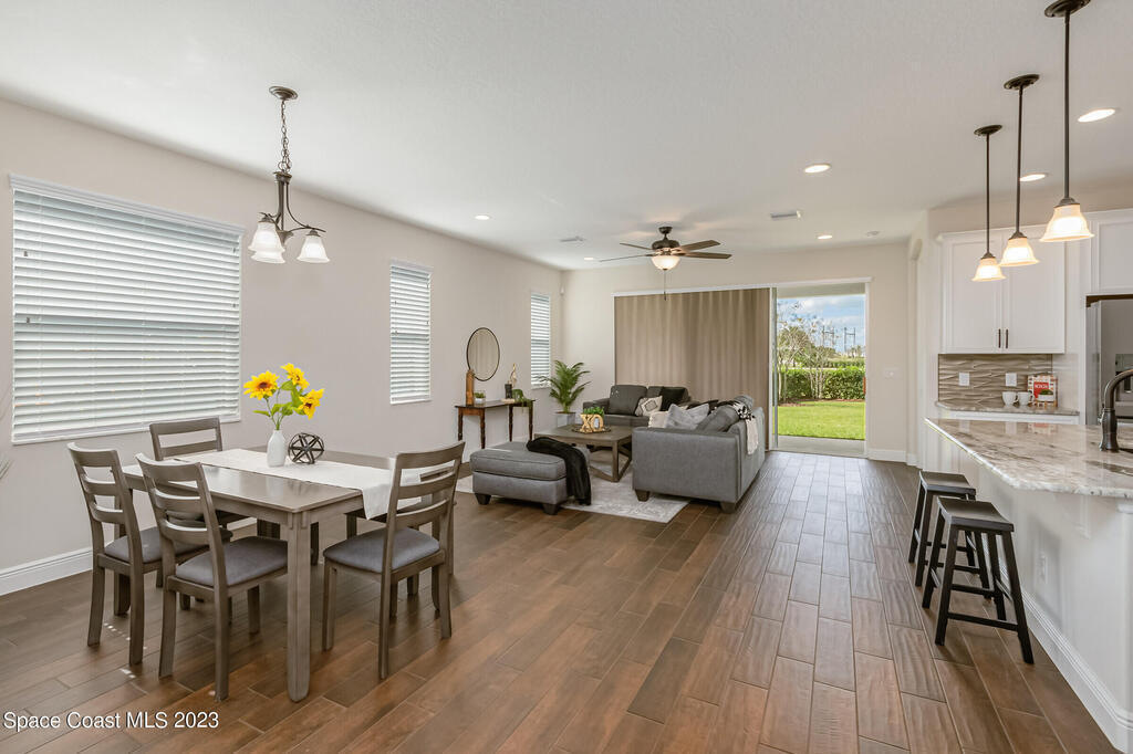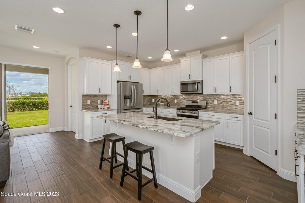New Home is ready !!! The Destin Model a modern four bedroom oasis with three full baths, plus office offering the perfect blend of elegance and functionality. This immaculate home built in 2020 is a true gem in Viera. The heart of this home is the Kitchen featuring luxurious quartz countertops, soft close cabinets, pull out shelves and a natural gas stove. Open plan provides ease of entertaining family and friends. This property also boasts a pristine paved driveway enhancing its curb appeal and offering convenient extra parking. Being constructed in 2020 this home offers newest in design and construction, so it has very energy efficient tankless water heater and dual A/C 's. Considered by all as wonderful school district, family friendly, great amenities, and super dining and shopping.