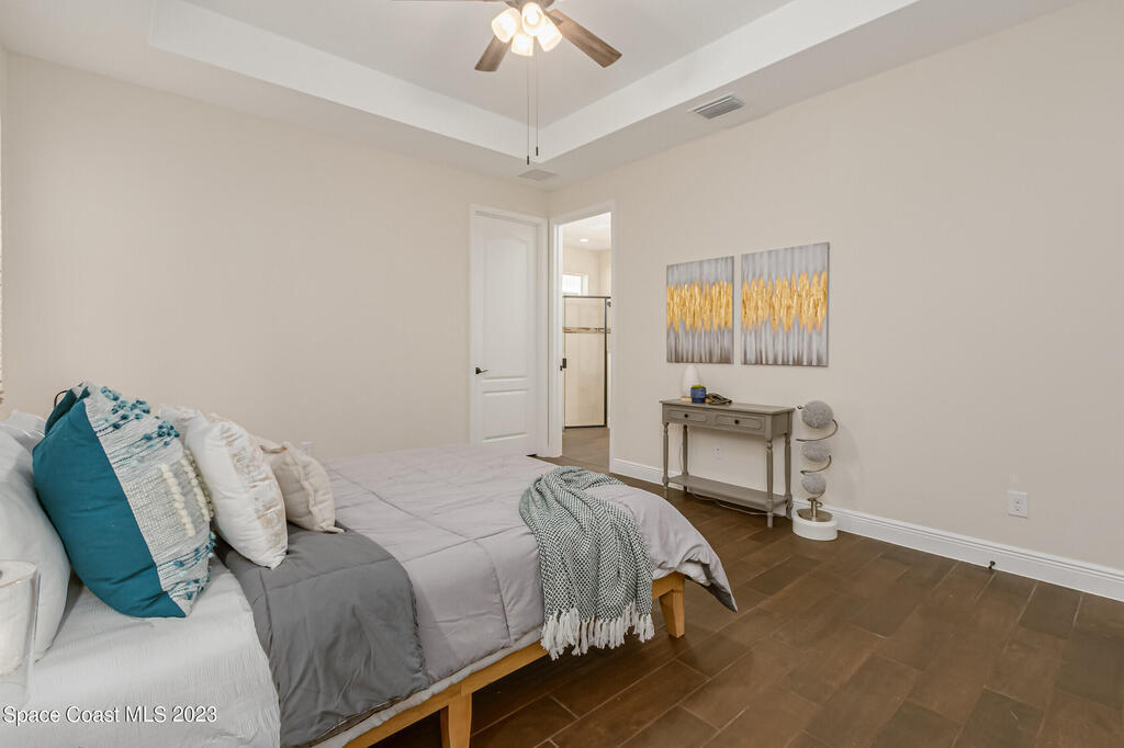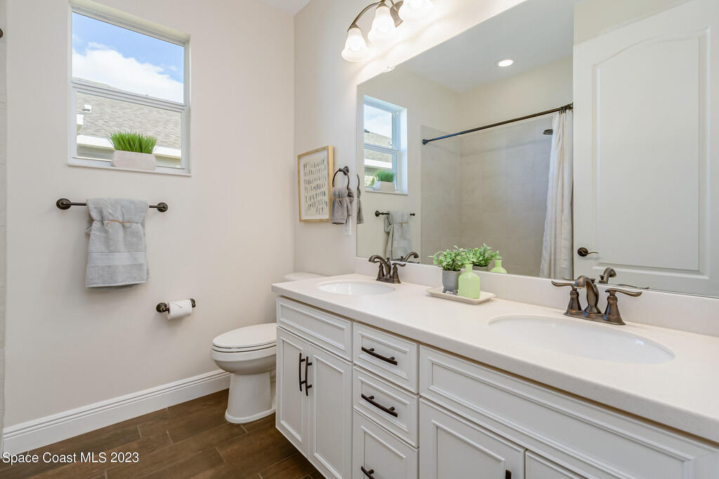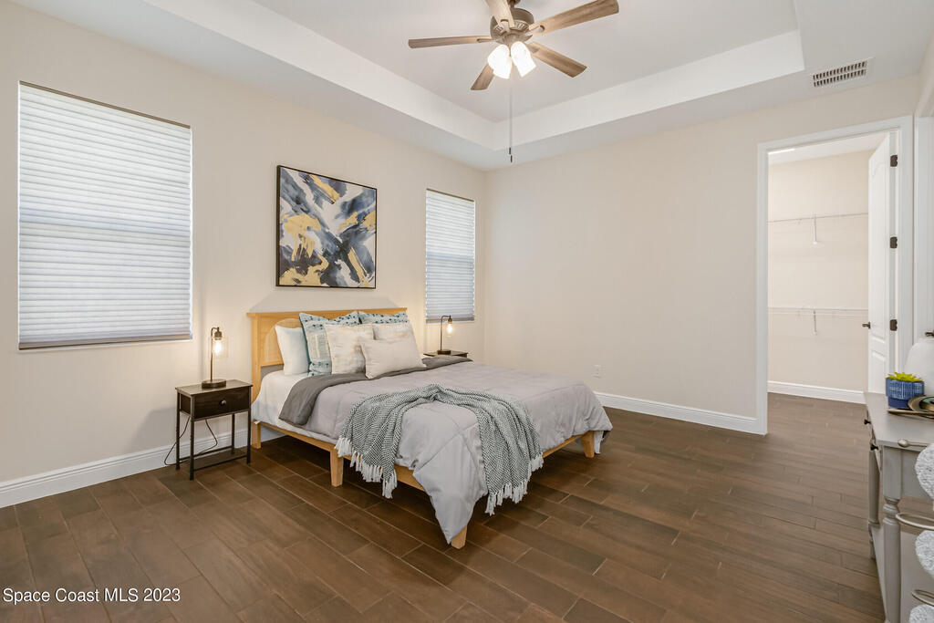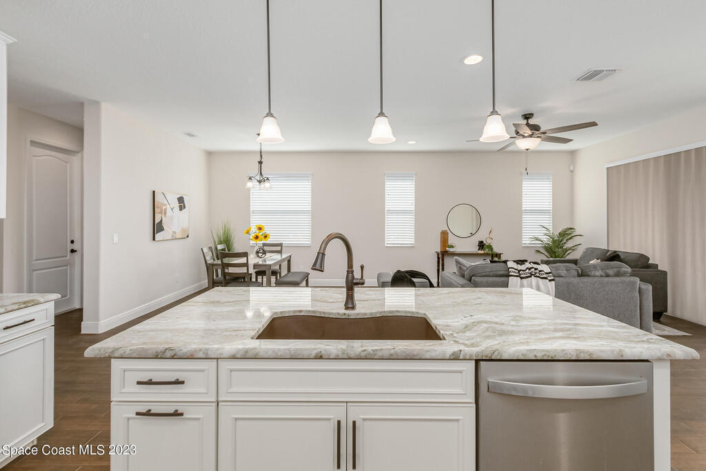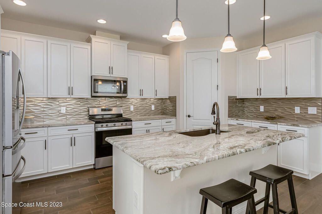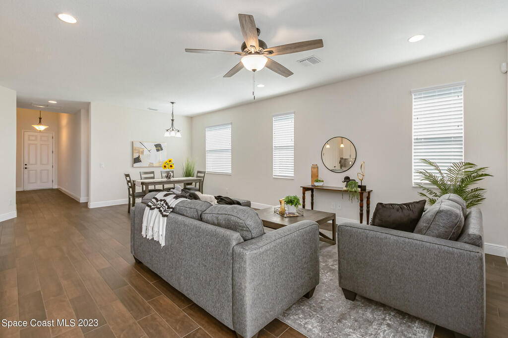 New Home is ready !!! The Destin Model a modern four bedroom oasis with three full baths, plus office offering the perfect blend of elegance and functionality. This immaculate home built in 2020 is a true gem in Viera. The heart of this home is the Kitchen featuring luxurious quartz countertops, soft close cabinets, pull out shelves and a natural gas stove. Open plan provides ease of entertaining family and friends. This property also boasts a pristine paved driveway enhancing its curb appeal and offering convenient extra parking. Being constructed in 2020 this home offers newest in design and construction, so it has very energy efficient tankless water heater and dual A/C 's. Considered by all as wonderful school district, family friendly, great amenities, and super dining and shopping.