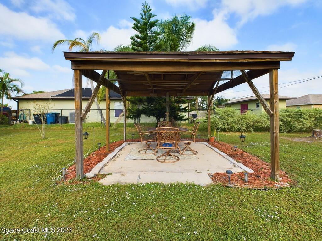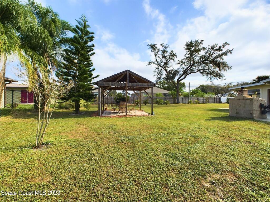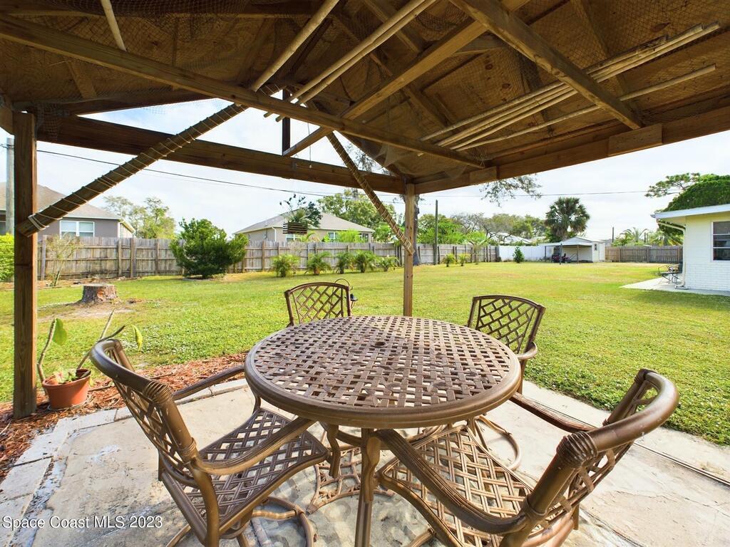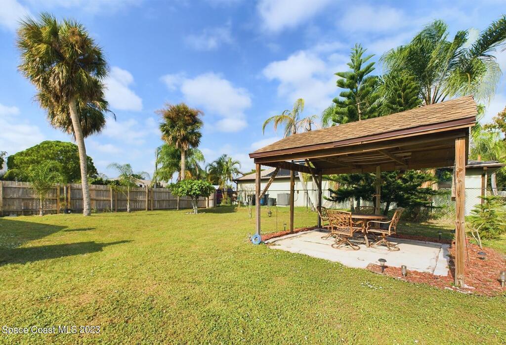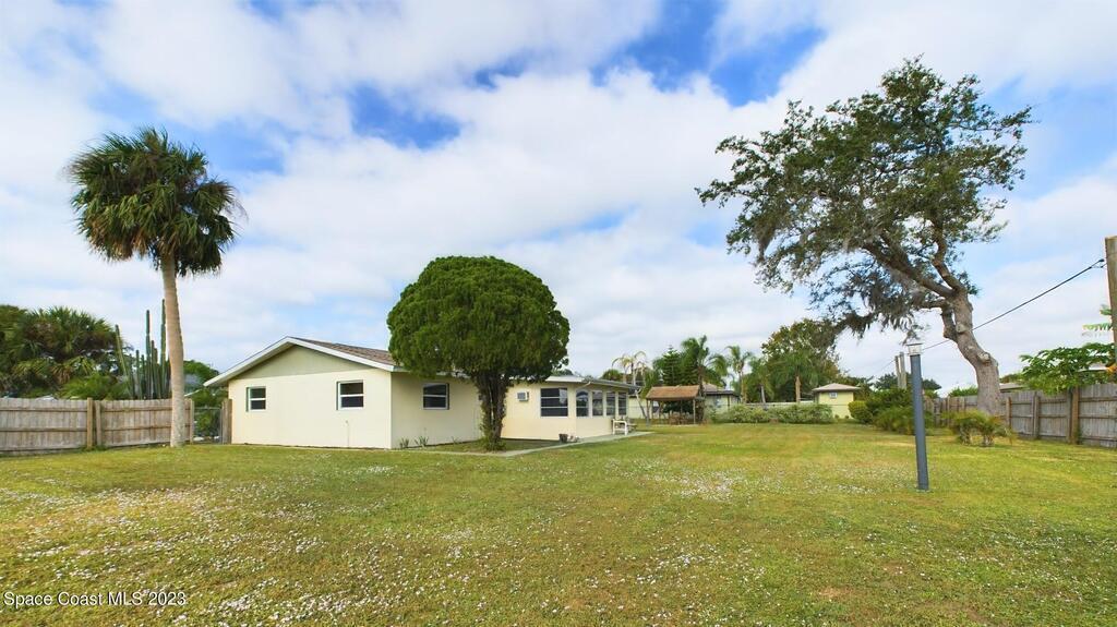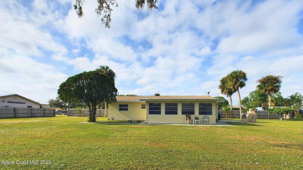 Listed Under Appraised Value is this beautiful, well kept home on a DOUBLE lot. New windows throughout. Re-roofed 3 years ago (transferrable warranty). A/C 1 yr old. Electrical panel and hot water heater replaced 2020. Septic system serviced Feb 2023. Inside you'll find two good sized bedrooms, a large laundry/utility room and a gorgeous enclosed Florida room UNDER AIR with 6 windows to let in the Florida sunshine. Outside, enjoy the HUGE fenced in backyard (almost half an acre) complete with a metal shed and your very own Tiki Bar! House is on well, but has access to city water hook ups.