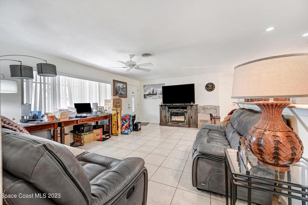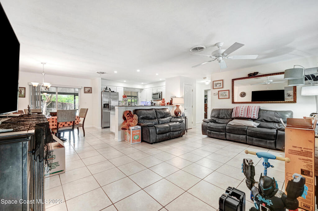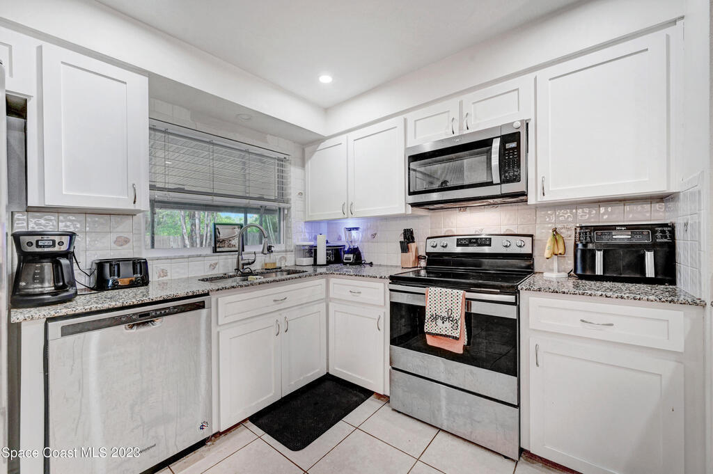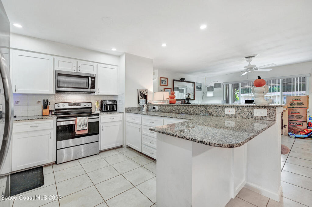 Great 3 Bedroom, 2 Bath, 2 car Garage with an Open Floor Plan and Tile throughout. Features include Granite Counters, Breakfast Bar, Stainless Steel Appliances, New Roof 2019, 18'x7' Screened Porch, and Huge 38'x14' Screened Patio. Conveniently located behind the Merritt Square Mall, Publix, Restaurants, Shops, and quick ride over the causeway to the beach.