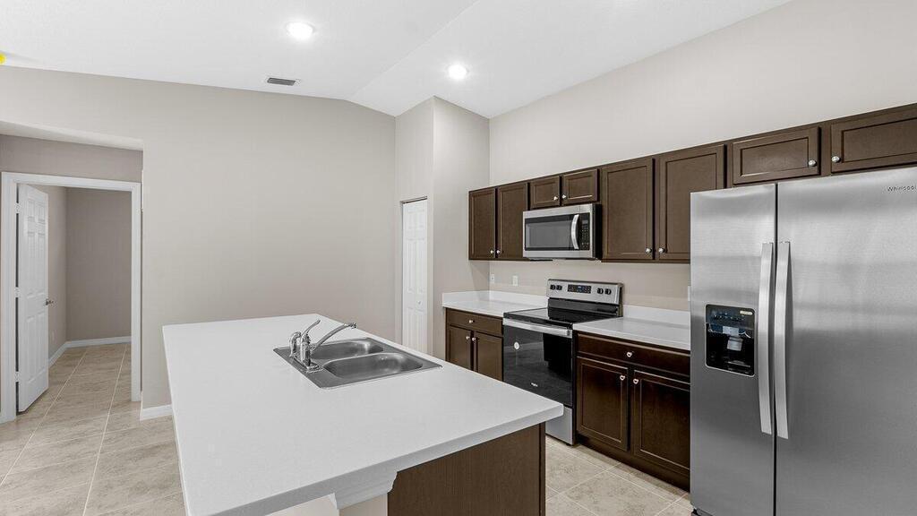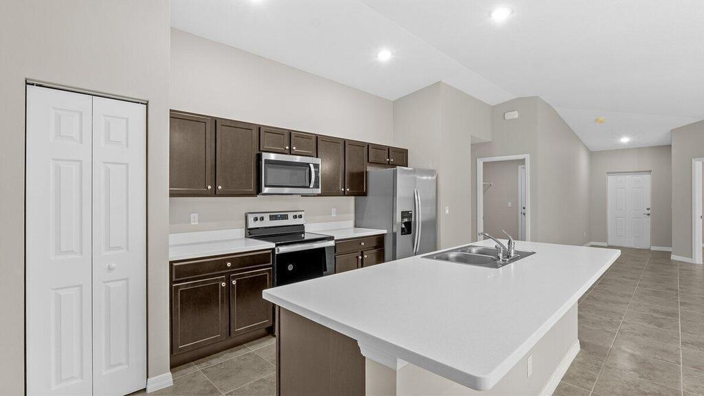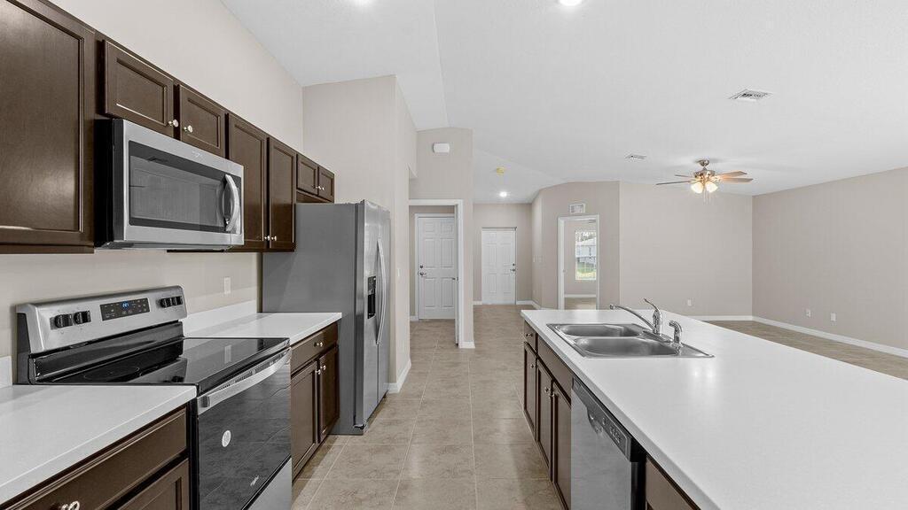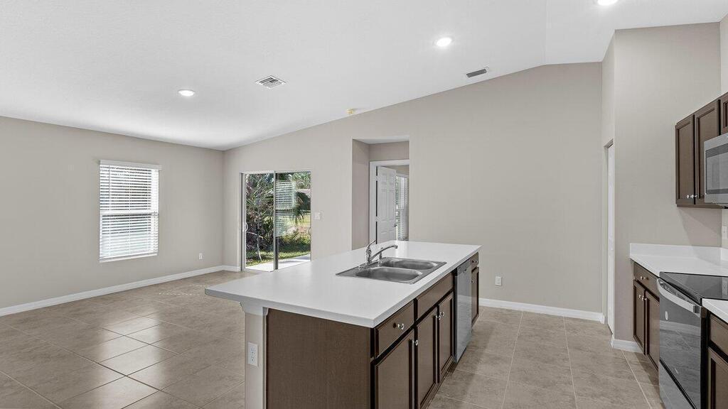 READY NOW! Value Priced, Beautiful, Brand-New Home with Builder Warranty! This home features 4 Bedrooms (4th Bedroom could be used as Flex Space or Home Office), 2 Baths, 2 Car Garage, Indoor Laundry Room, and a Trussed Back Porch. Featuring soaring ceilings in the living area, this spacious floorplan includes 18'' tile flooring throughout. The kitchen offers 30'' all wood upper cabinets in Espresso, White Corian countertops, Whirlpool stainless steel appliances including refrigerator, stainless steel sink with a chrome Moen faucet, and a spacious pantry.