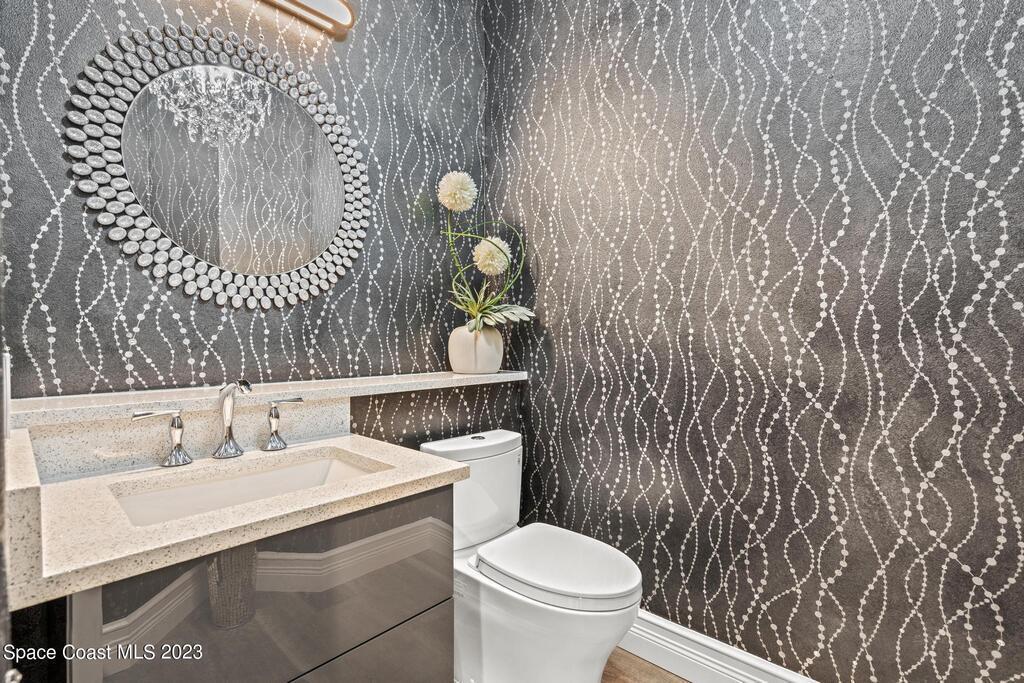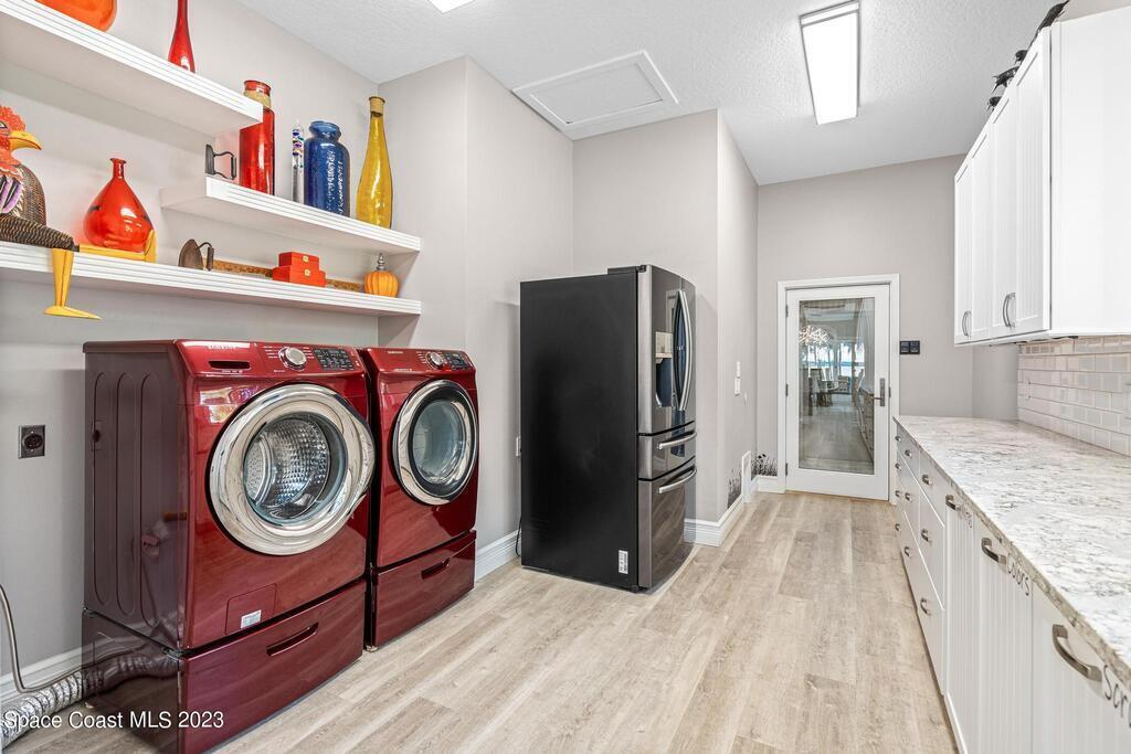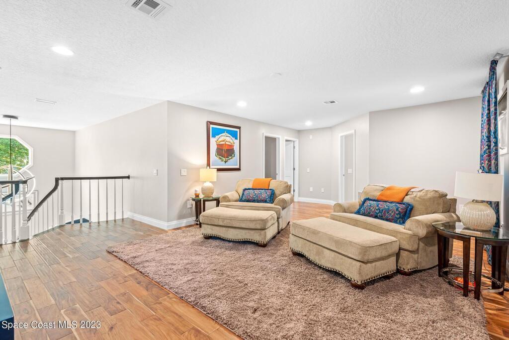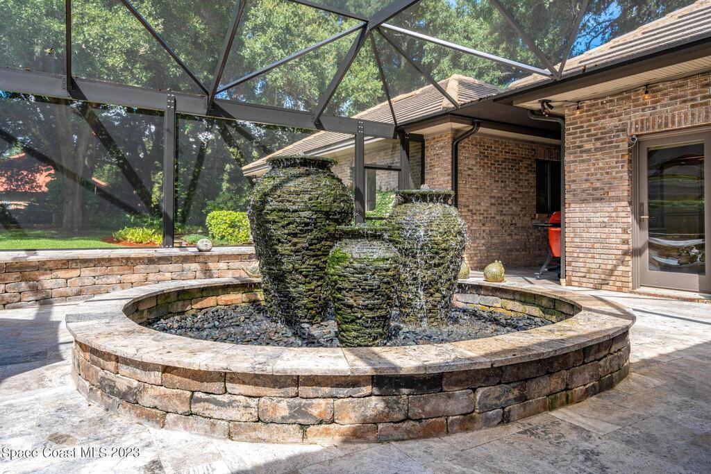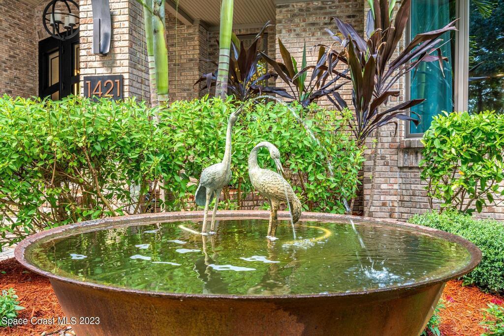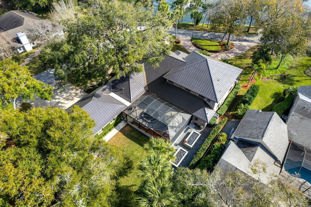 130ft of Indian Riverside frontage, a private boat dock & an elegant estate full of classic beauty! Softly lit ceilings tower over big windows streaming natural light throughout. Solid teak hardwood & LVP floors span open, sophisticated living & dining spaces. Bay windows, a marble fireplace & luxury finishes add custom flair. Showcasing a quartz waterfall-edge island, the kitchen exhibits white glass-accented cabinetry, a butler's pantry, Bosch SS appliances, double wall ovens, a gas stove & wine cooler. The 1st-floor owner's retreat features a sitting area w/riverfront views, floating vanities, a jetted tub & bench shower. A curved staircase leads up to a loft, 2bdrms & full bath. A 2024 metal roof. 2 breezy screened lanais offer tranquil water features, backyard & river views!
