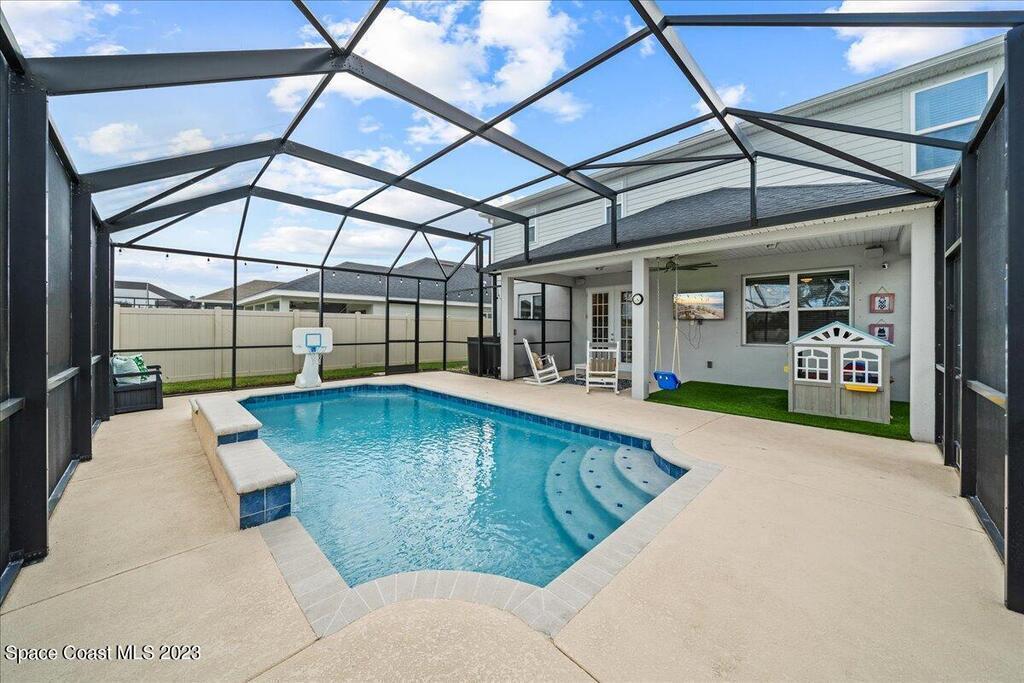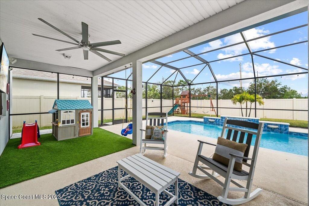 Embodying the essence of 'Potenza' - Italian for power, influence, and strength - 1426 Potenza Dr, a 2019-built 4-bedroom, 3-bath pool home in the coveted Cypress Landings neighborhood, stands as a testament to these attributes. Its striking facade, adorned with stacked stone accents and a covered entryway, sets the stage for a remarkable living experience.This well-designed residence seamlessly integrates modern functionality with an open floor plan that unites the kitchen, dining, and family room, enhancing the living space's efficiency and charm. The gourmet kitchen, boasting quartz counters, pristine white cabinetry, and a double oven, exudes elegance and functionality.Step through the French doors off the kitchen to discover a captivating pool area that beckons relaxation. Enjoy the oversized covered patio, screened lanai, and a children's play area featuring astroturf, all surrounding the custom salt-water heated pool with a mesmerizing waterfall. Ideal for hosting guests,
