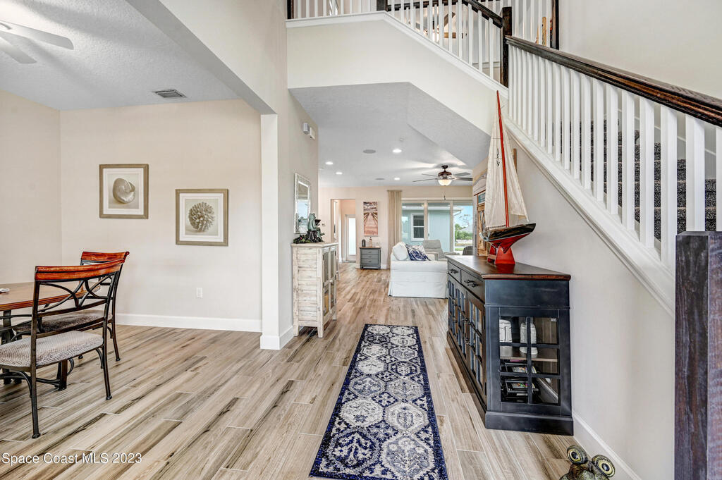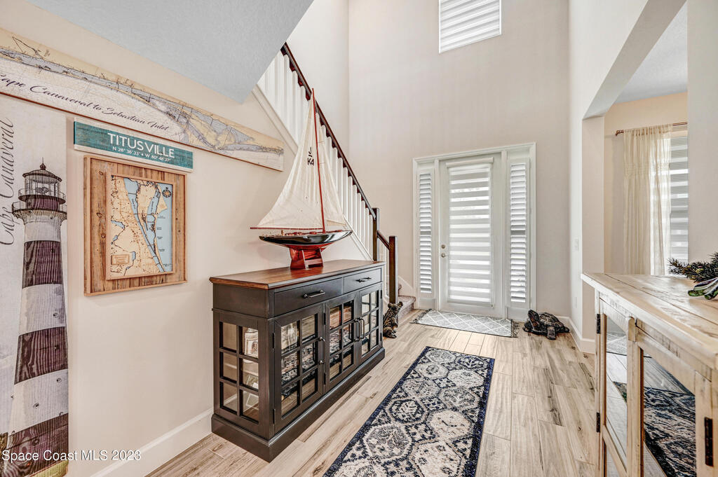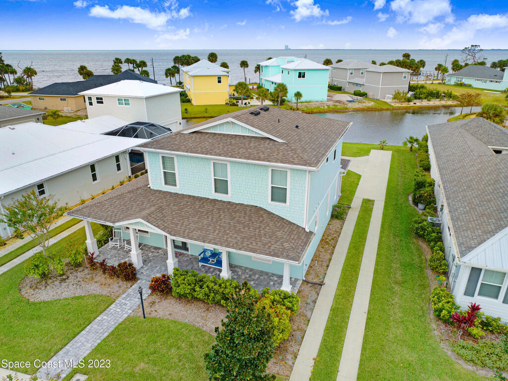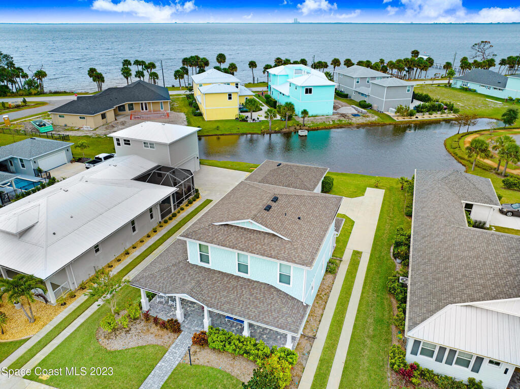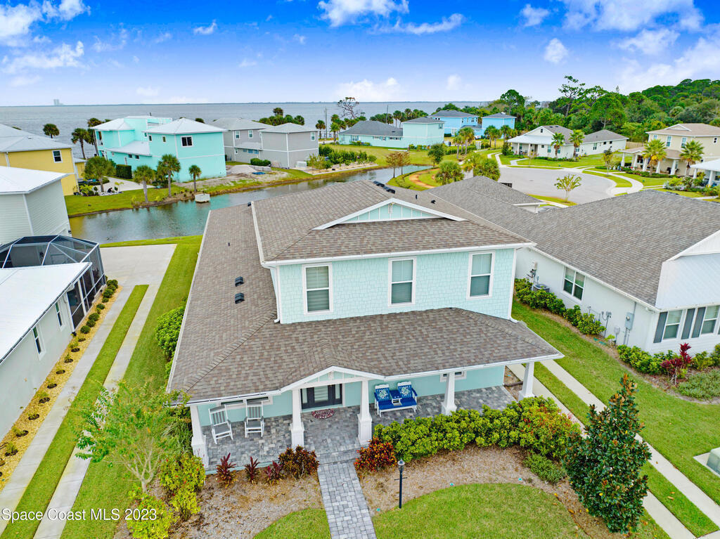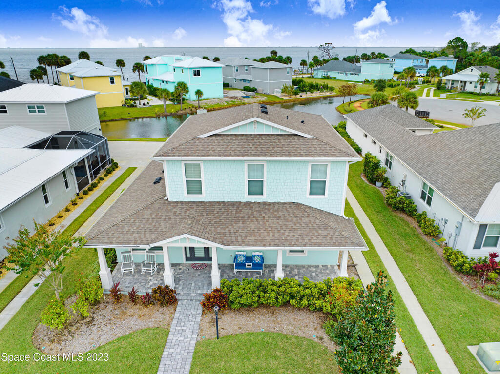Welcome to your dream home! This newer riverside haven offers unparalleled views and direct access to the water. With a whole house generator and water filtration system, comfort meets practicality. The master bedroom on the first floor provides convenience, while the loft area upstairs offers extra living space. Enjoy the charm of plantation shutters throughout the house, creating a timeless atmosphere. In a riverfront community boasting a community dock, you can gaze at the Kennedy Space Center just across the water. A mere 35 minutes from Orlando airport, this beautiful courtyard residence has plenty of room for a pool and epitomizes Old Florida living at its finest.