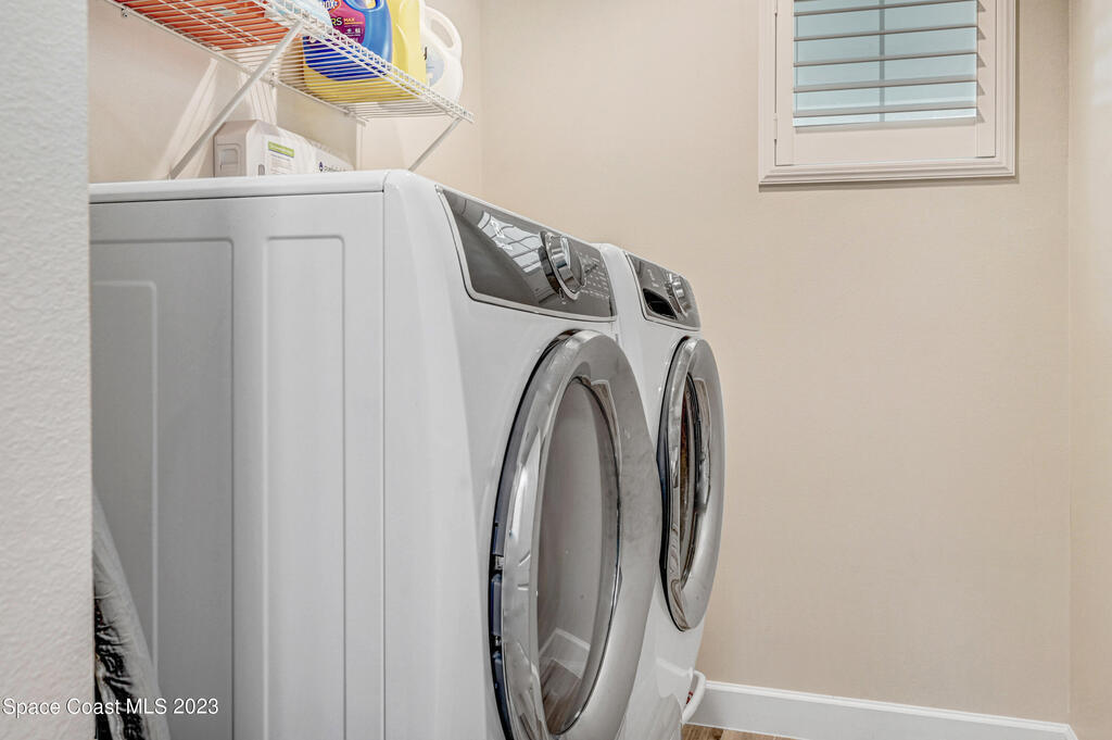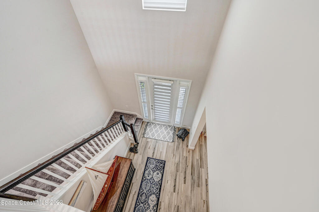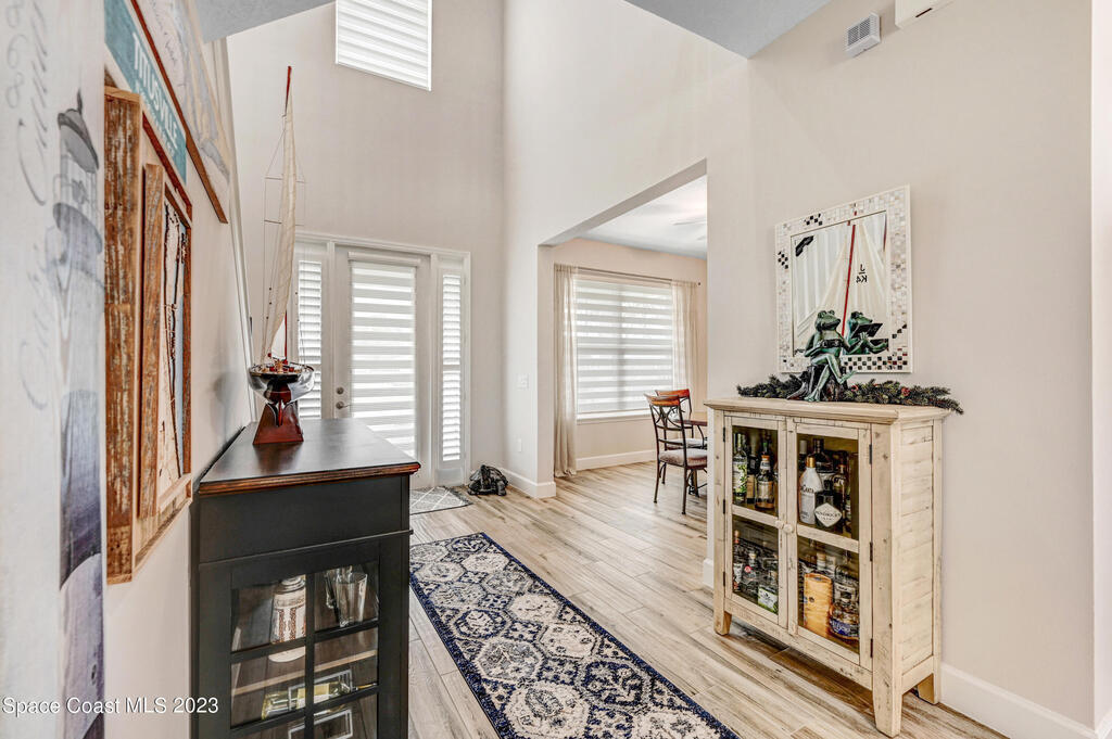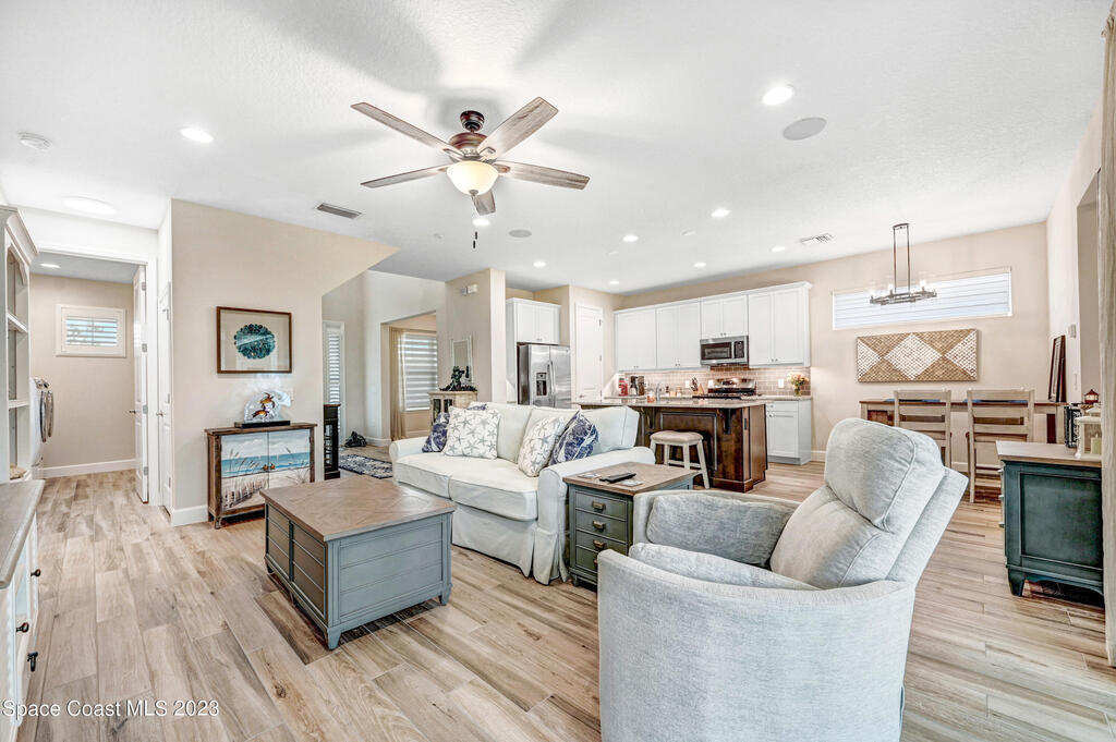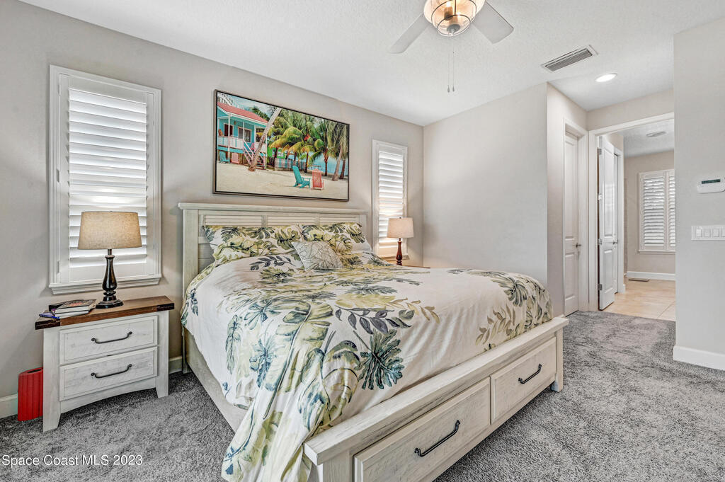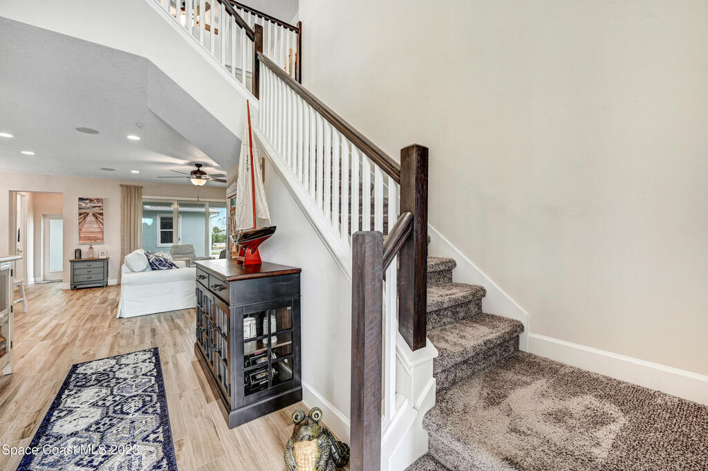 Welcome to your dream home! This newer riverside haven offers unparalleled views and direct access to the water. With a whole house generator and water filtration system, comfort meets practicality. The master bedroom on the first floor provides convenience, while the loft area upstairs offers extra living space. Enjoy the charm of plantation shutters throughout the house, creating a timeless atmosphere. In a riverfront community boasting a community dock, you can gaze at the Kennedy Space Center just across the water. A mere 35 minutes from Orlando airport, this beautiful courtyard residence has plenty of room for a pool and epitomizes Old Florida living at its finest.