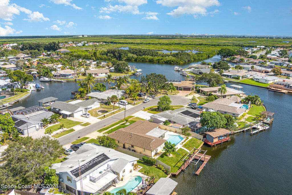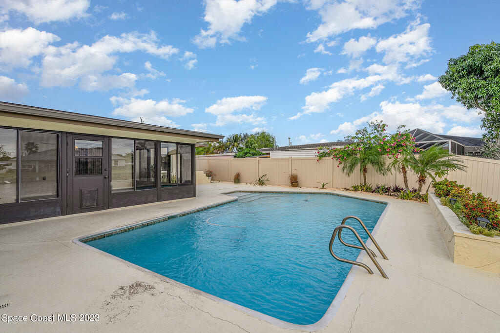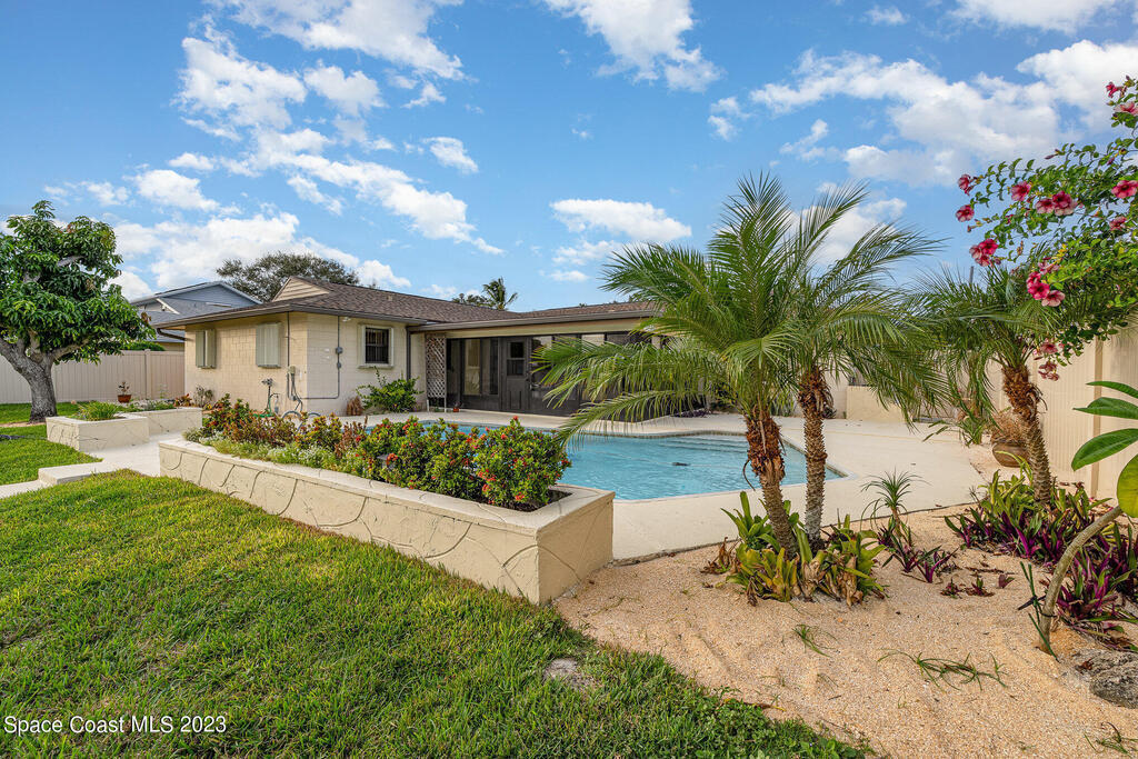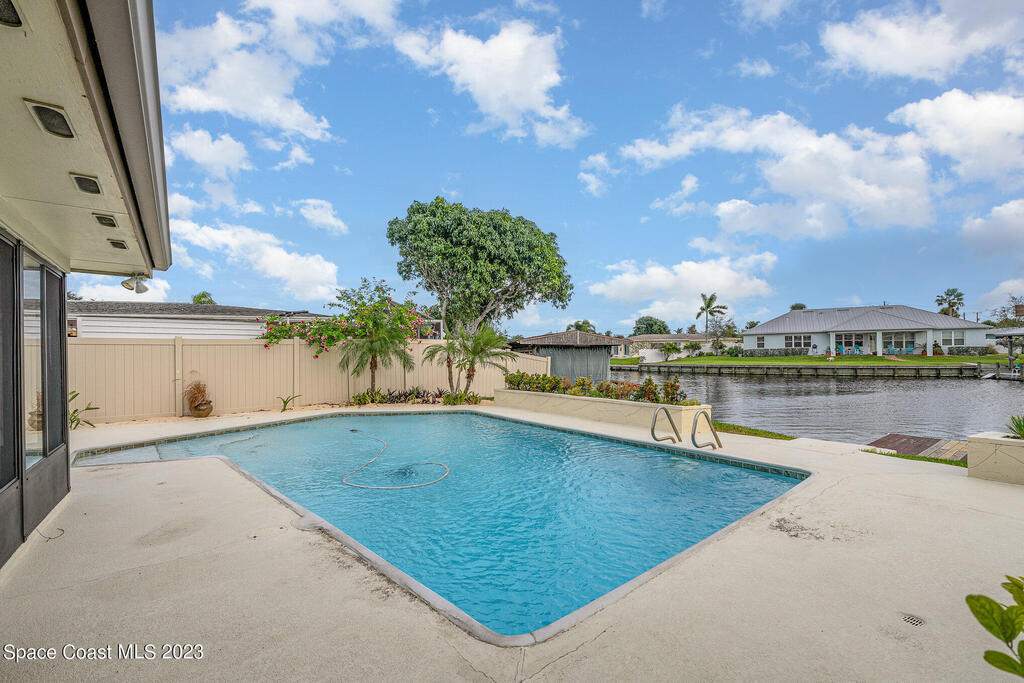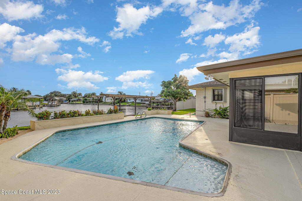 Welcome to your waterfront oasis! This beautiful 4-bedroom, 2-bath, 2-car garage concrete block home boasts a serene canal-front location with 80' of water frontage, offering direct access to Sykes Creek and the Banana River. If you're a boating enthusiast, you'll appreciate the convenience of captaining your boat right from your own personal dock/boat house, providing easy access to the Atlantic Ocean. The home features a spacious Florida room, perfect for enjoying the stunning waterfront views. Inside, you'll find a comfortable living room, family room, and dining area. The pool bath adds to the convenience of outdoor living, whether you're entertaining or simply savoring the Florida sunshine at your own inground pool. Roof replaced & pool resurfaced in 2017. A/C in 2023, Panel in 2010