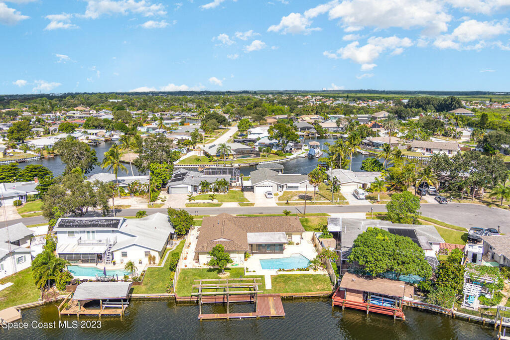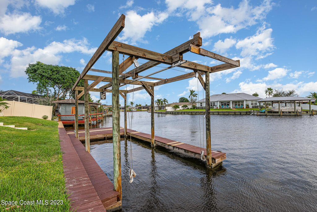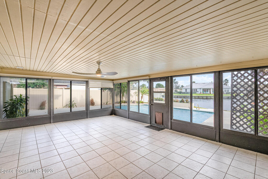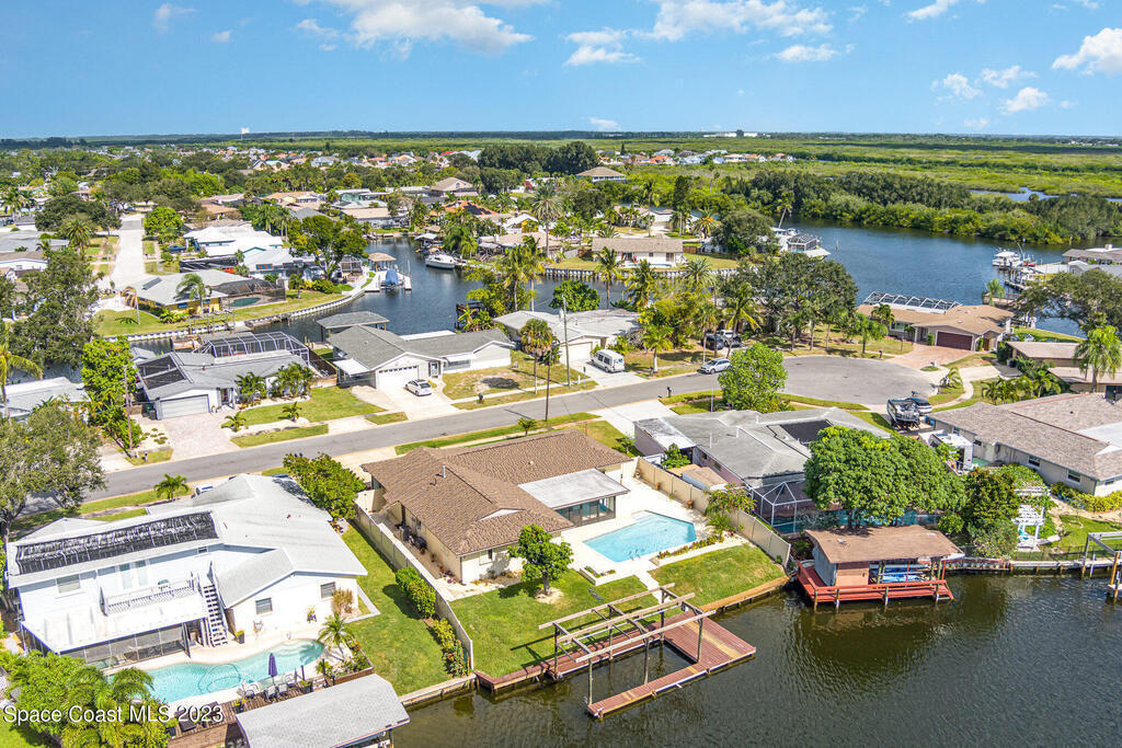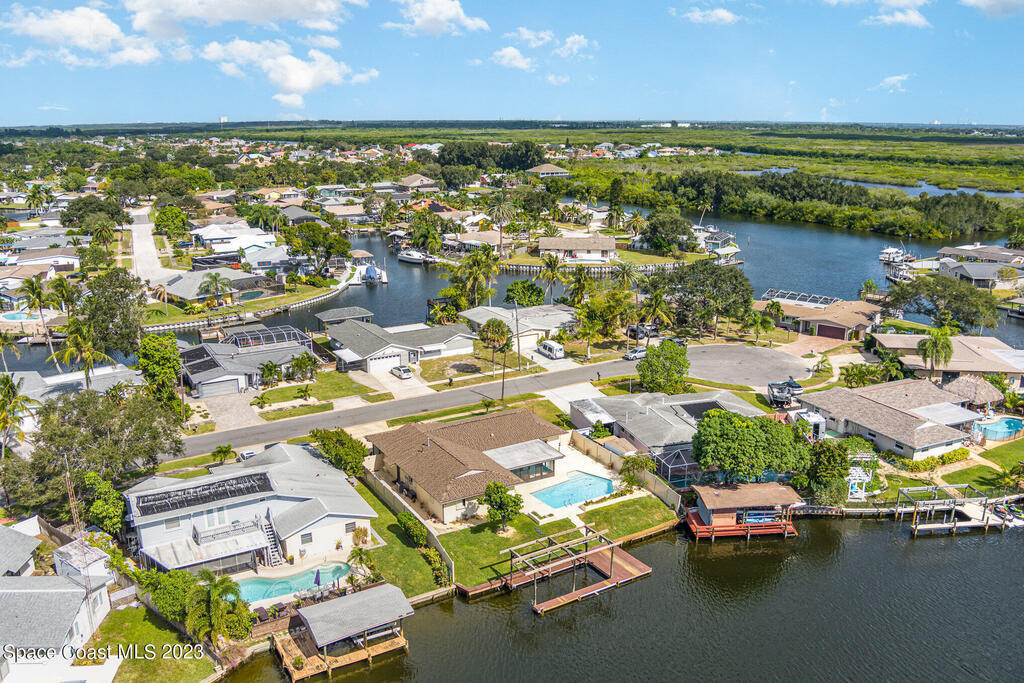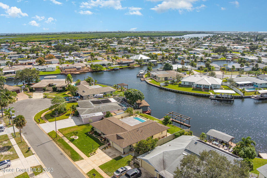 Welcome to your waterfront oasis! This beautiful 4-bedroom, 2-bath, 2-car garage concrete block home boasts a serene canal-front location with 80' of water frontage, offering direct access to Sykes Creek and the Banana River. If you're a boating enthusiast, you'll appreciate the convenience of captaining your boat right from your own personal dock/boat house, providing easy access to the Atlantic Ocean. The home features a spacious Florida room, perfect for enjoying the stunning waterfront views. Inside, you'll find a comfortable living room, family room, and dining area. The pool bath adds to the convenience of outdoor living, whether you're entertaining or simply savoring the Florida sunshine at your own inground pool. Roof replaced & pool resurfaced in 2017. A/C in 2023, Panel in 2010