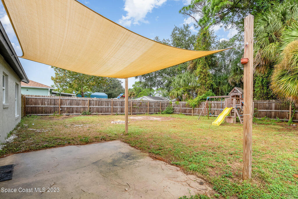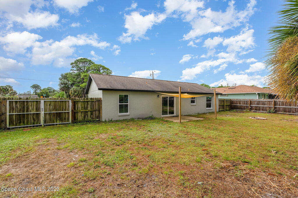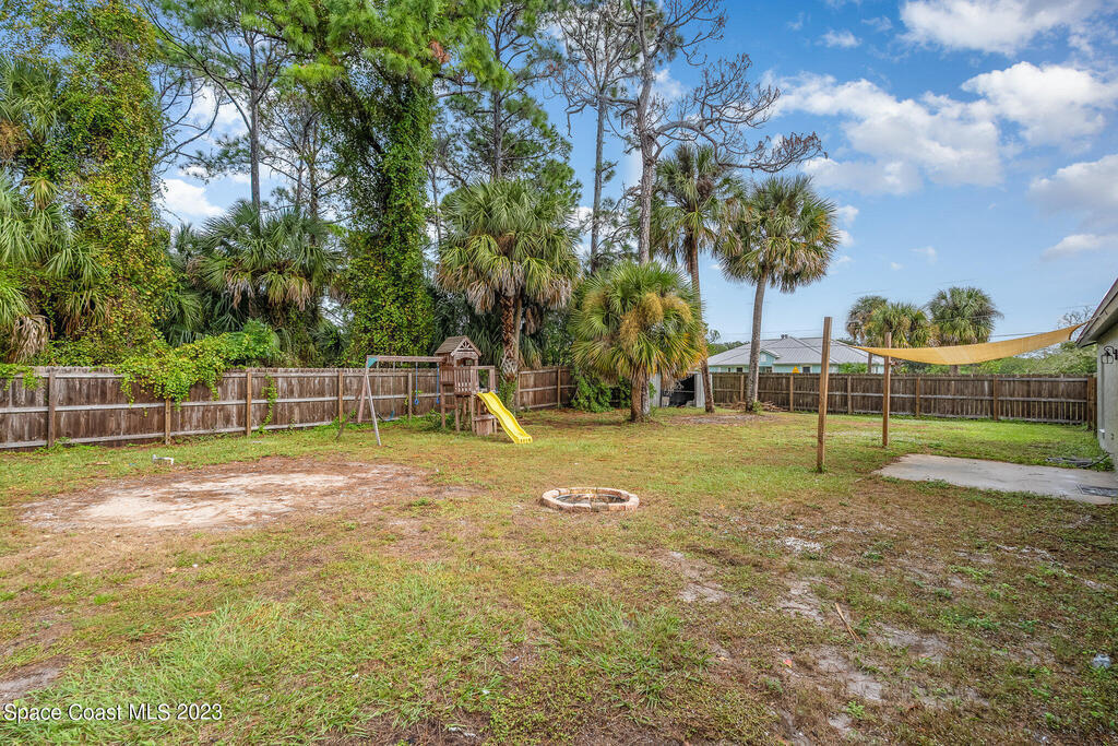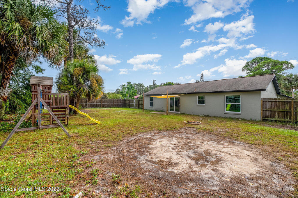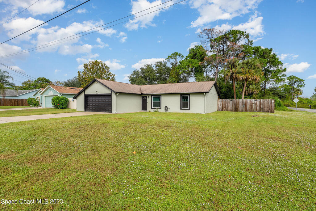 **BACK ON THE MARKET** Buyers cold feet is your gain! Rare concrete block home in PSJ in this price range. This home is looking for it's new owner and offers a rural feel but close to fantastic restaurants, shopping, medical plazas, parks, awesome views of rocket launches and sunsets over the Indian River. The home sits on a corner oversized lot complete with a new fence in 2018 and a children's jungle gym in the back yard. In 2019 hurricane rated windows and slider were installed and in 2019 UV filter/light was added to the A/C system adding to air quality. Exterior of home was painted and septic pump out and inspection was done in 2023. Remodeled around 2006, the kitchen features light Oak cabinets and stainless appliances. Tile floor throughout, primary bath shower and raised marble top vanities. PSJ has easy access to I-95, Kennedy Space Center. and all that Brevard County has to offer!