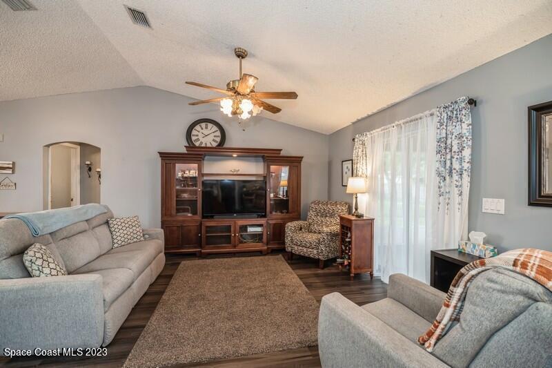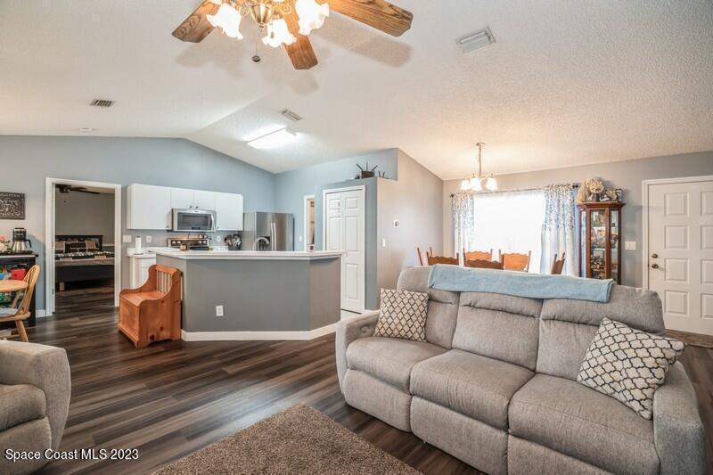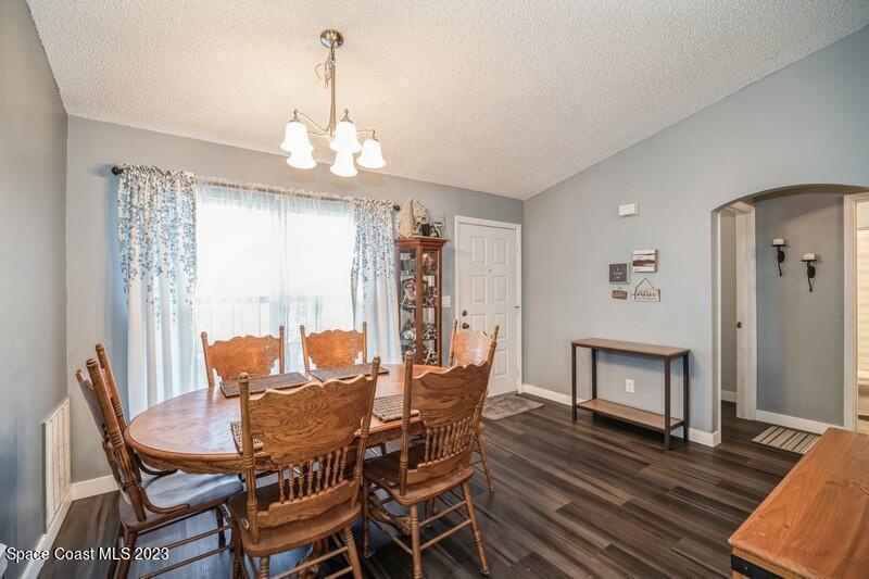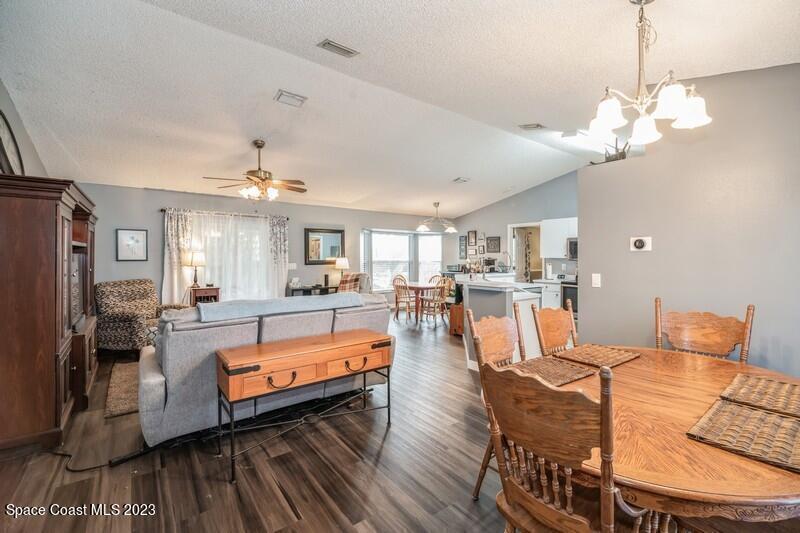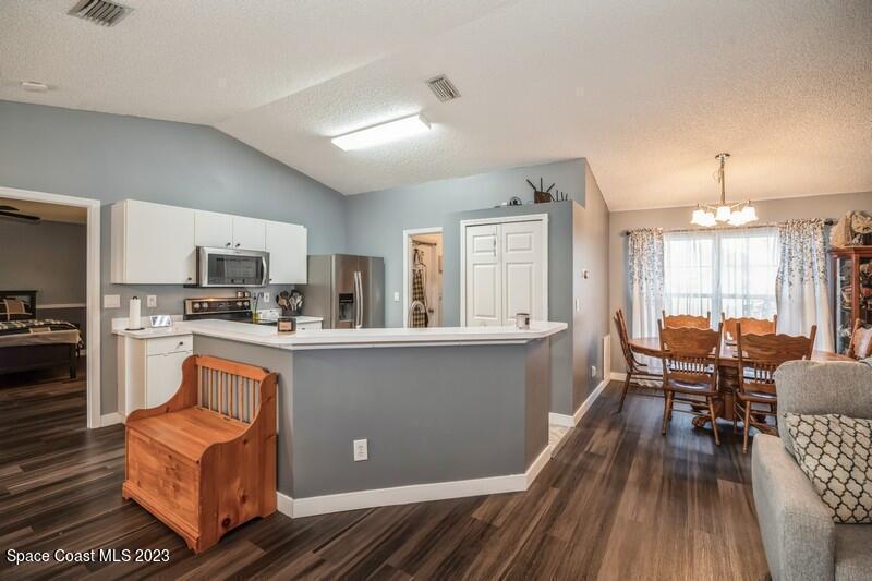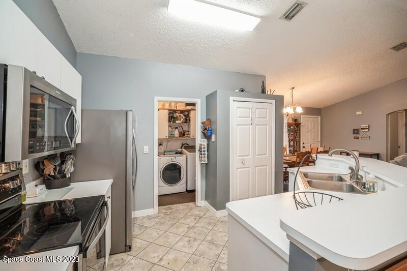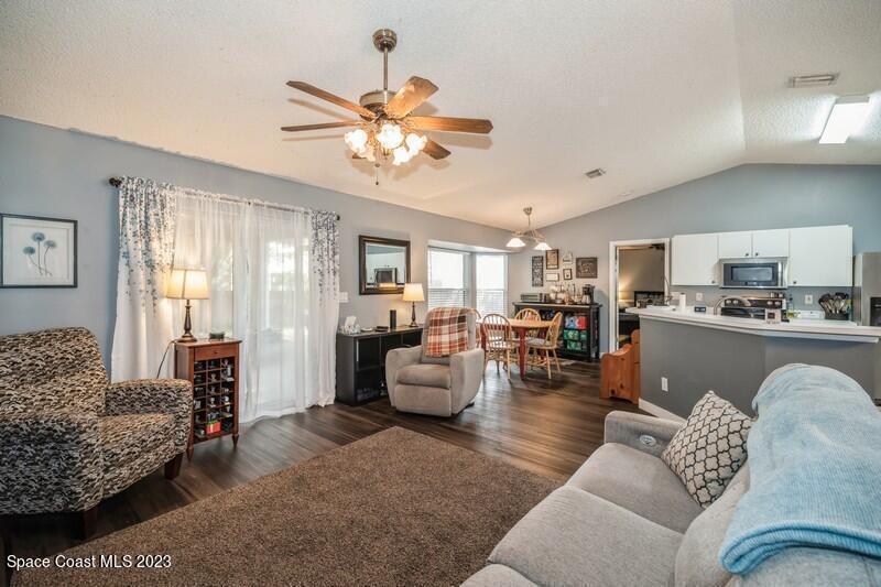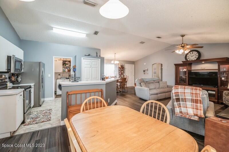 Move in ready home within walking distance to Enterprise Elementary and Space Coast Jr/Sr High schools. This home has a new metal roof, new A/C, new water heater, and stainless appliances. Home features inside laundry with washer and dryer included. The vaulted ceilings and open floor plan give a larger feel. Relax on the screen porch under truss after a long day. The breakfast nook has a bay window overlooking the back yard and there is a raised breakfast bar on the kitchen island. Luxury vinyl floors are waterproof, easy maintenance, and durable. Many extra touches throughout the home like the tall baseboard, chair rails, and recent paint inside and out give this home a modern look. CBS construction with stucco exterior. A home ready for entertaining guests. Welcome to your new home!