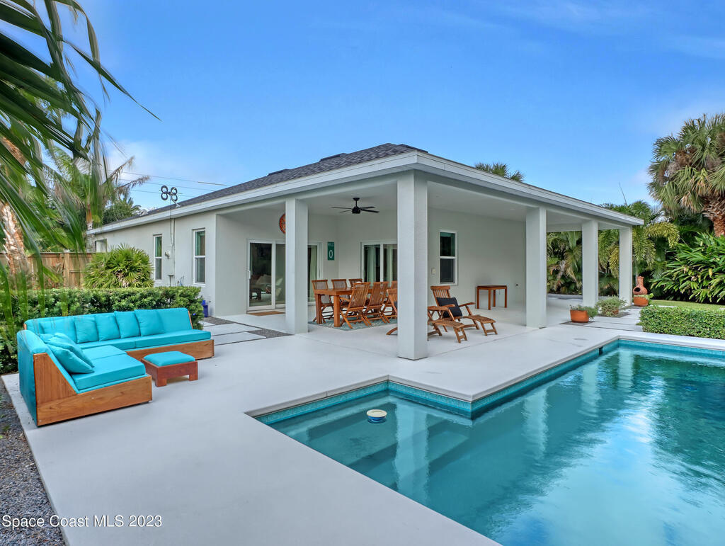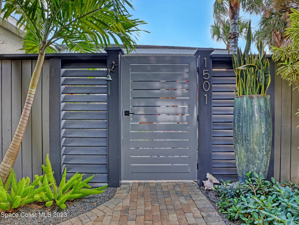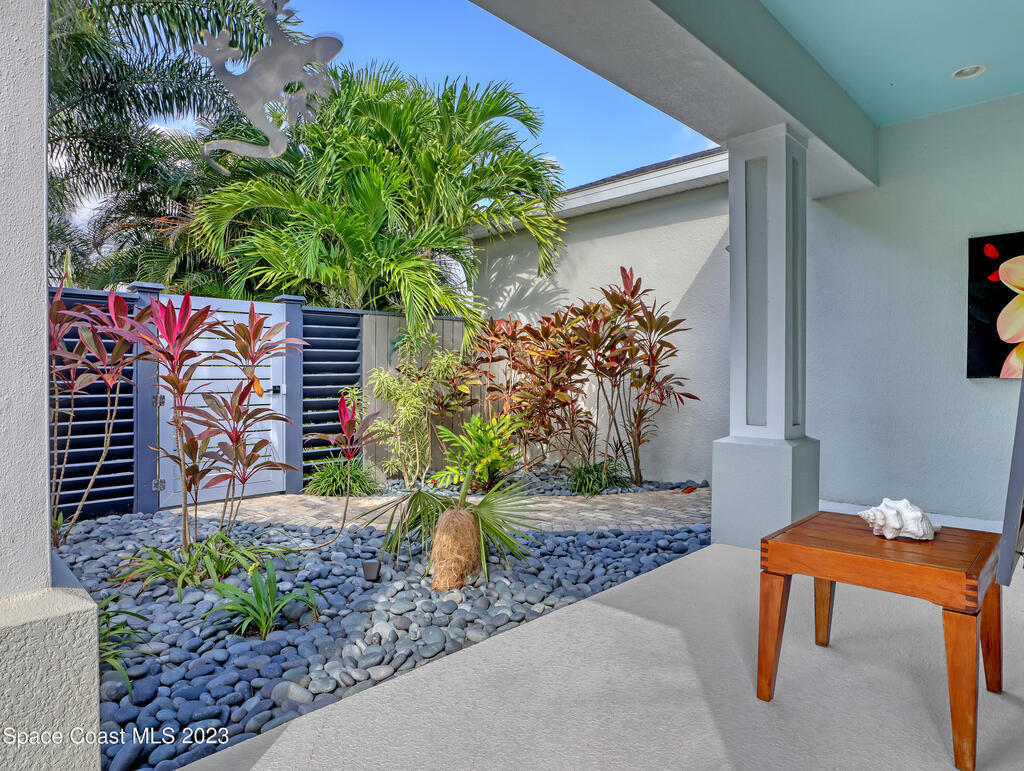 WOW! Welcome to this PRIVATE meticulous maintained move in ready Melbourne beach Beauty! This 3 bedroom, 2 bathroom split floor plan home located just steps away from Sunrises on the beautiful Atlantic Ocean and Sunsets on the Intracoastal. The owners had the home built and completed in 2017 by Lifestyles Homes known for their Super Energy Efficient and Architectural Design, a home of this caliber rarely hits the market. Private gated front Courtyard is tastefully designed and upon entry you will immediately feel the openness with Vast High Ceilings and tons of Natural light pouring through the Hurricane Impact windows and Sliding doors. The seamless flow between the Spacious Kitchen, Dining area, Living space