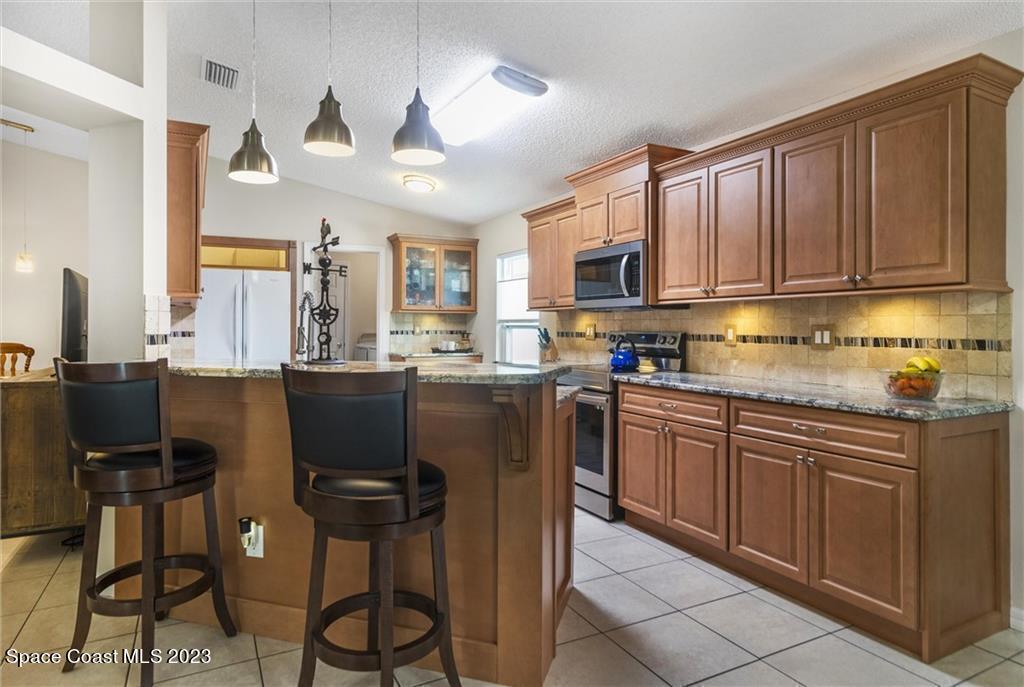 UPDATED HOME 4 Bedroom/2 Full Bathrooms/2 Car Garage: MOVE IN READY- FAST CLOSE-WHY WAIT TO BUILD? INTERIOR FRESHLY PAINTED (Neutral colors, new photos coming soon) 2019 ROOF, 2021 IMPACT WINDOWS/DOORS, Kitchen UPDATED, BATHROOMS UPDATED. ALL Ceramic Tile Floors (NO Carpet), Beautiful Tropical Backyard with FENCE. COVERED/Screened Back Patio. LOW HOA fees. CENTRALLY Located, within 6 miles of MELBOURNE Airport. Within 5 miles to Palm Bay & Melbourne Hospital. Put this home on your list to see, MANY UPGRADES, NOT the standard ''builder'' package. YOU WON'T BE DISAPPOINTED.