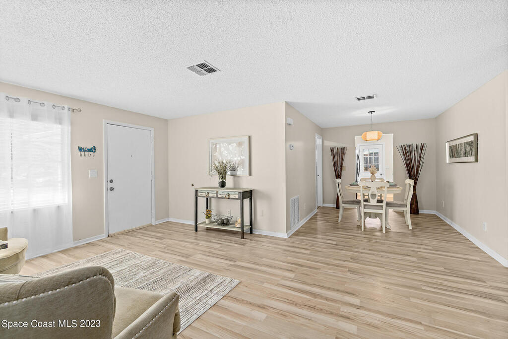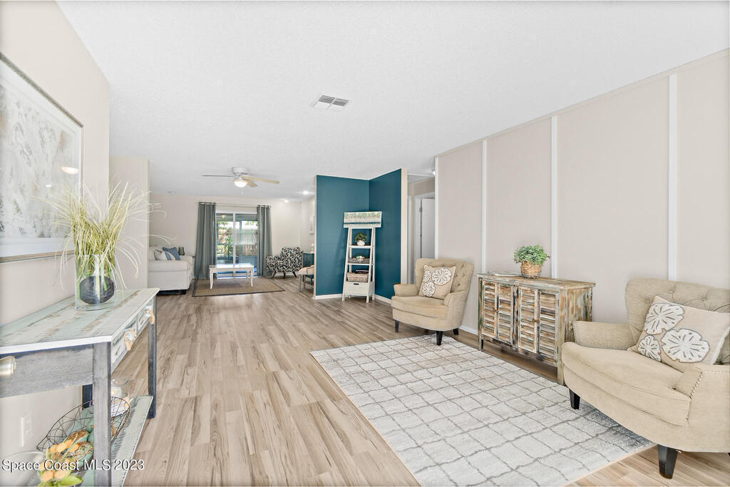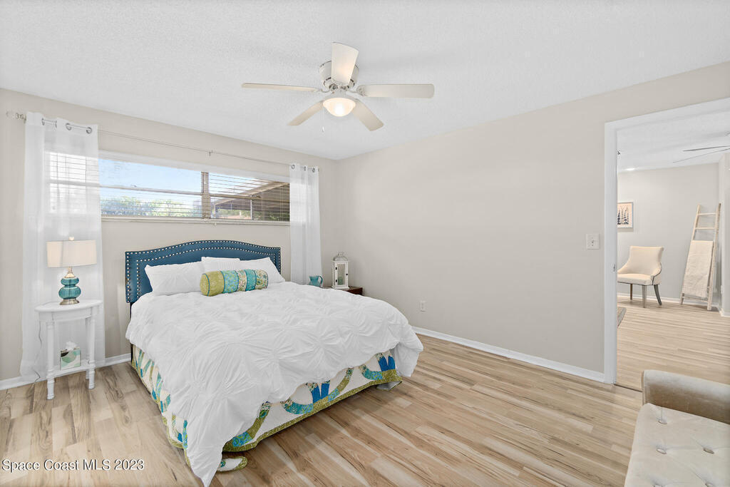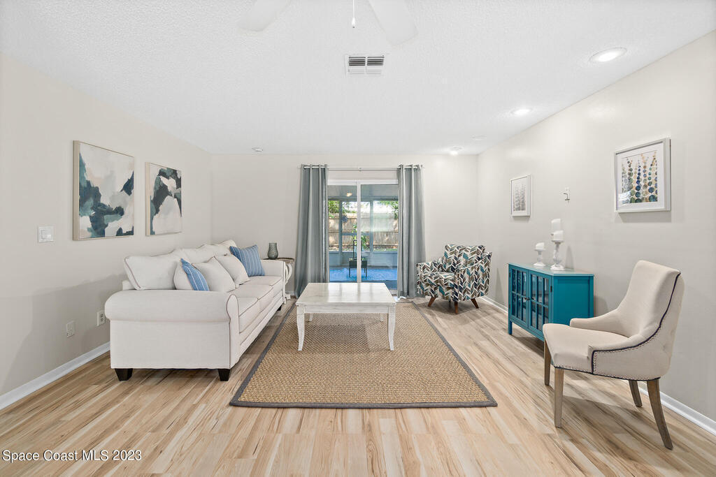 Welcome to your new home-sweet-home in the charming neighborhood of Buckingham at Levitt Park with community park with a playground, jogging trails, picnic areas. Adorable SPLIT PLAN home with a nice Open Floor Plan. Newer Features Include New Laminate Wood Plank Flooring, Kitchen Cabinets & Countertop replaced in the last few years, New Dishwasher,New Vanity in the Master Bathroom and Newer Vanity and Wallpaper in the Guest Bath, Updated Fans, Fixtures, Lighting, Freshly Painted Interior and Exterior, Roof 2022, A/C 2016, Hot Water Heater 2023, Updated Electrical Panel. Spacious 240 Sq Ft Screened Patio overlooking Paver Patio & Mature Trees. Great Location to Restaurants, Shopping, I-95, US HWY 1, 45 Min to Orlando International Airport and 20 Min to Beaches. Can close quickly!